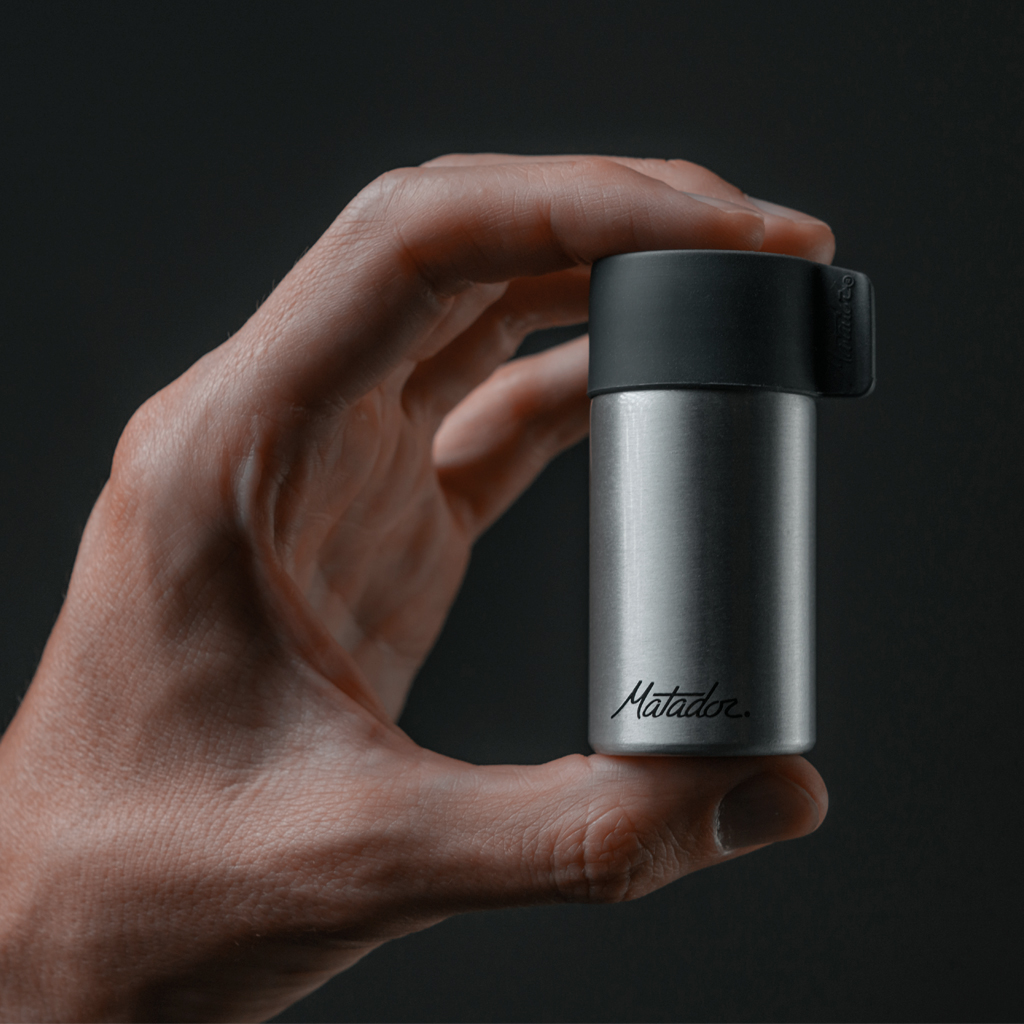 40ml サイズの防水トラベルキャニスターはマッチやタブレットサプリメント等、濡らしたくない小物の収納・整理に最適です。 耐久性のあるアルミニウム製で中身を安全かつドライな状態に保ちます。 シリコン製の蓋のタブを上に引っ張るだけで簡単に開けることができます。 手の中に収まるコンパクトなサイズ感 開閉も簡単 濡らしたくないマッチや... サプリメントの収納にも最適です
