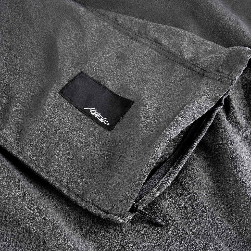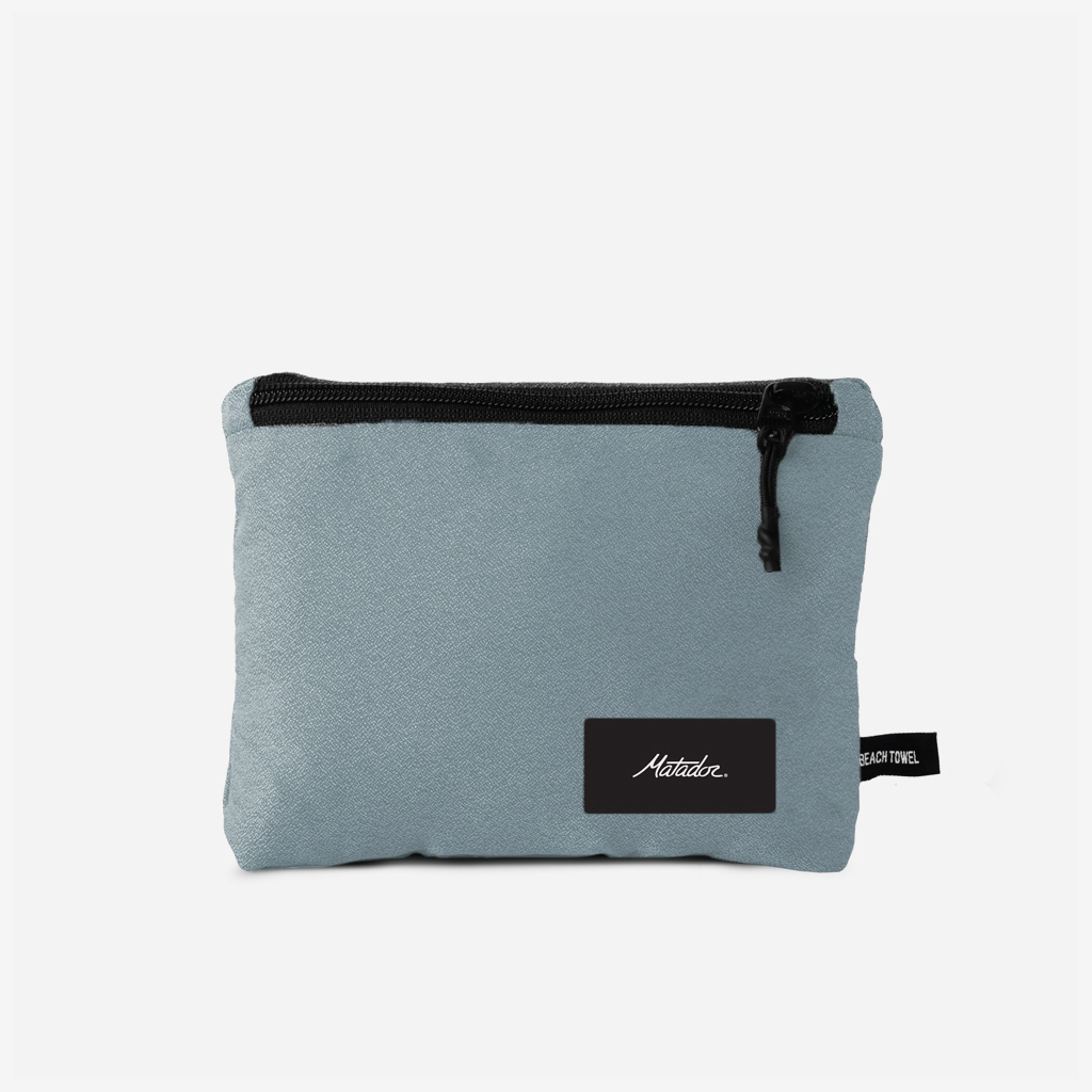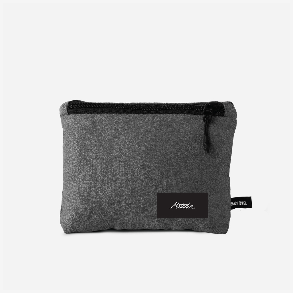 Matador『パッカブルビーチタオル』は、広げるとシャワータオルよりも大きいビーチタオルサイズになる、コンパクト性と軽量性を追求したタオル。 ナノファイバー素材を使用しているので、折りたたんだ状態ではコンパクトですが、重量の2-3倍の水を吸収し、速乾性に優れています。 鍵やスマホなどを収納できる隠しジッパーポケットがあり、そのポケットへパッカブルに収納もできます。 カラー:チャコール カラー:ブルー