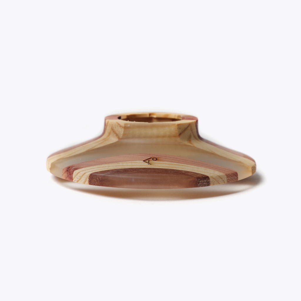 長野県松本市を拠点に、杣人が守ってきた命を伐り、デザイナーが構想したプロダクトを、数寄屋棟梁の技術、知識によって新しい命を創造し託す、インテリアプロダクトブランド【KI-no】 地産材をメイン素材として使い、通常のインテリア、プロダクトに使われる木材だけでなく、KI-noではデザイナー、職人が山を守る杣人と共に山に入り、普段は見向きもされない木、動物に食べられた木など、プロダクトには不向きと言われる木材も素材として選定。 新たな日本の美を持ったプロダクトに昇華させ、新たな木の価値の創造を目指しています。 こちらは、Goal Zero『LIGHTHOUSE micro』シリーズ用のシェード。 様々な木材とレジンをストライプ状に組み合わせ、柔らかな灯りが拡がります。 単品での使用はもちろんのこと、KI-noのカバーと組み合わせることで、さらなるプロダクトに昇華します。 ※手作業での削り出しのため個体差があります