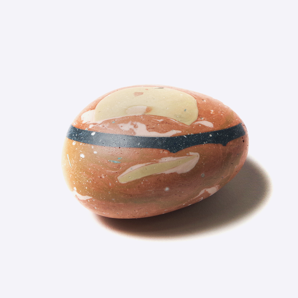 空間デザインをベースに店舗設計や展示会などイベントの会場構成、ディスプレイデザインを手がける外山翔さんによるアートプロジェクト【Atelier matic(アトリエ マティック)】 「品がありユーモアもある」「大胆さと繊細さ」をテーマに、現在は天然石やアクリルなどの樹脂を用いた一点ものを製作しています。 アクリルに亀裂を入れたり、花やアンティークアイテムを閉じ込めることで、まるで時間が止まったように一瞬を切り取ったような作品や、天然石のアートピースでは、石を選別する中で、石の自然な模様や無骨な荒々しい部分など、そのものの持つ美しさや力強さを表現しています。 こちらは、環境にも優しい水溶性樹脂を調色し、一点一点制作されるプロダクト。 ひとつひとつ模様や質感が異なり、裏と表でも違った表情をお楽しみいただけます。 すべてハンドメイドの1点ものとなります。