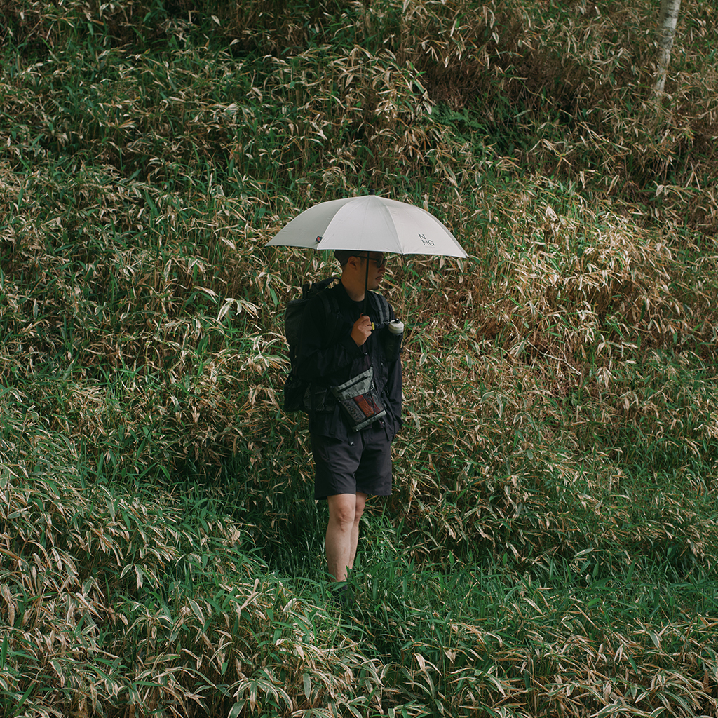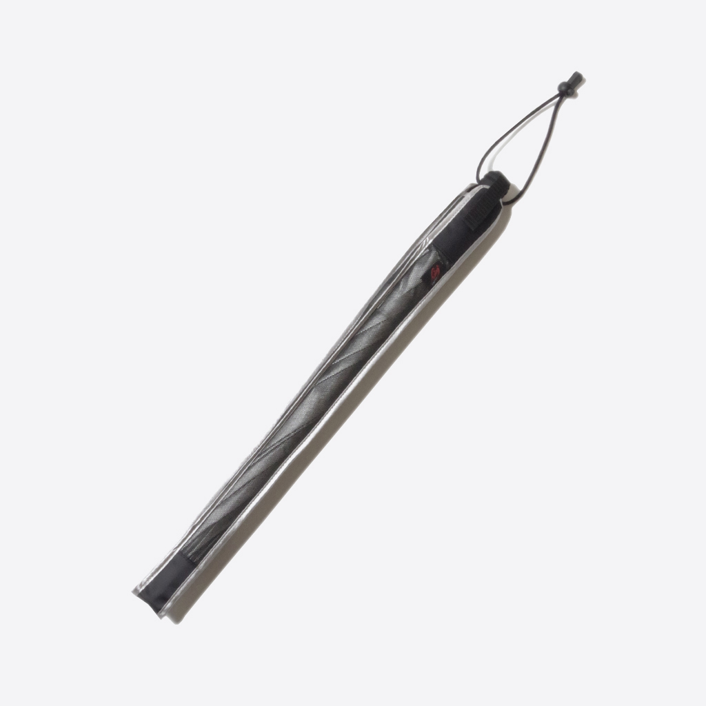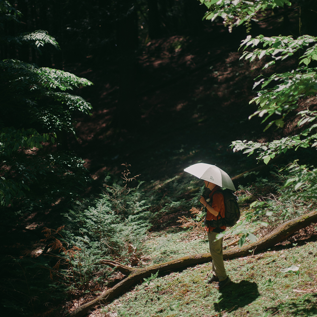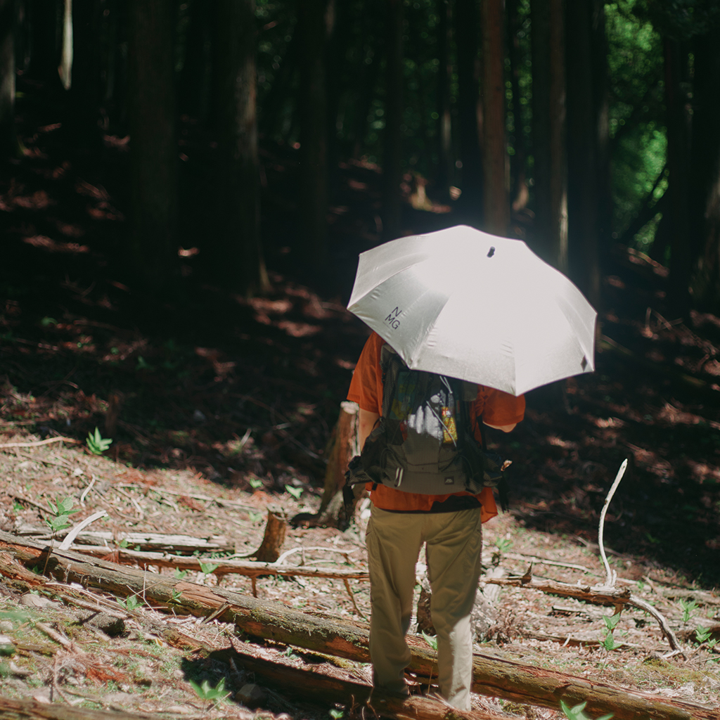 groovisions/グルーヴィジョンズにデザインしていただいた『Nicetime Mountain Gallery』オリジナルロゴを刻印したアイテム。 高品質かつ高機能アンブレラ作り一筋100年余年のEuroSCHIRM(ユーロシルム) ドイツの ウルム(Ulm)を拠点に素材を厳選して製品づくりを行っています。 『スイング ライトフレックス アンブレラ シルバーメタリック』は、その驚くような軽量性にもかかわらず、非常に耐久性があり、ちょっとの強風ではへこたれません。 親骨の中心部から放射状に取り付けられたアームが強風を受けた際に渦巻き状にフレックスにしなることで、風圧を上手く受け流す構造になっています。また、絶縁性があり落雷の危険性も軽減してくれます。 キャノピーには、DuPontテフロン加工を施した耐水性に優れた超軽量100%ポリエステル素材を使用し、泥が付着しにくく引き裂き強度にも優れています。 溝の入った高密度EVAハードフォーム製のハンドルは、軽量で握りやすく、雨で濡れても滑りにくくドライ感を維持します。突然の強風でも傘が飛ばされないよう、エンド部にセーフティランナーが付いています。 しかも、紫外線保護指数50+。日傘として日焼け防止、暑さ対策としても有効です。 軽量なのでバックパックのサイドポケットに入れていても重量は気になりません。 傘は置き忘れたり、壊れて廃棄されたりすることがとても多いアイテムですが、耐久性が高くお気に入りの製品を選ぶことで、廃棄までの時間も長くゴミになりにくく、なおかつ電車に置き忘れてしまうことも減らすことができます。 軽量で握りやすく、雨で濡れても滑りにくくドライ感を維持するハンドル部。 エンド部のセーフティランナーに手首を通せば、突然の強風でも傘が飛ばされません。 通気性に優れたメッシュパネルを使ったナイロンケースが付属。ショルダーストラップ付きで肩に掛けることもできます。 モデル:182cm サイズ比較