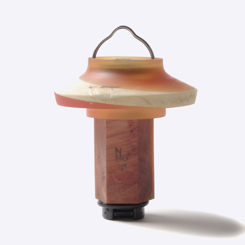 ※こちらは、シェードとカバーのセット商品となります。通常モデルより直径25mmほどコンパクトに設計してもらいました。左:『Kn One Off Shade Mini + Amber Set Luminous(蓄光) NMG』
