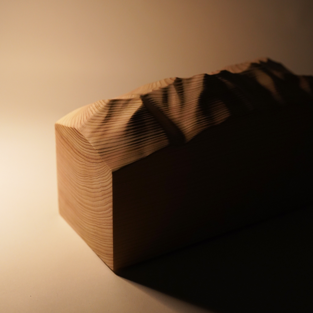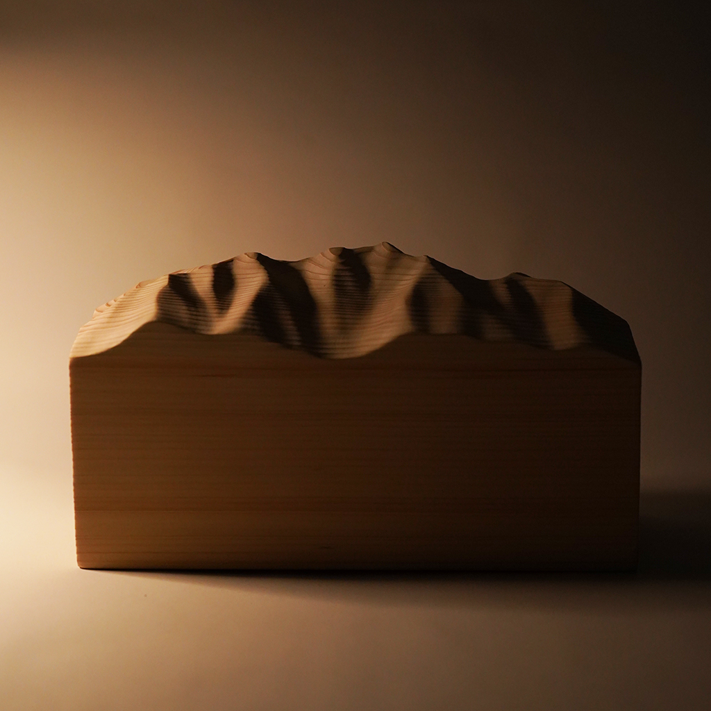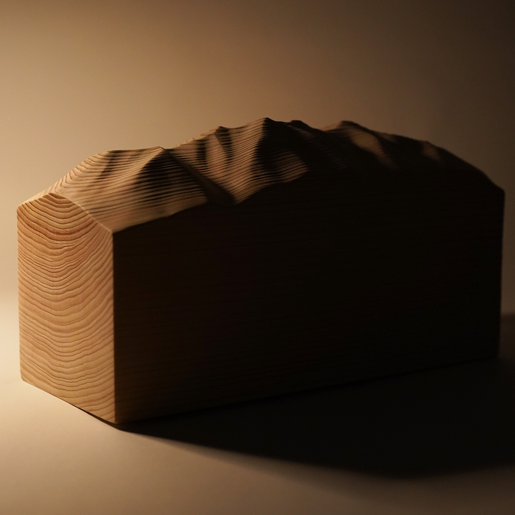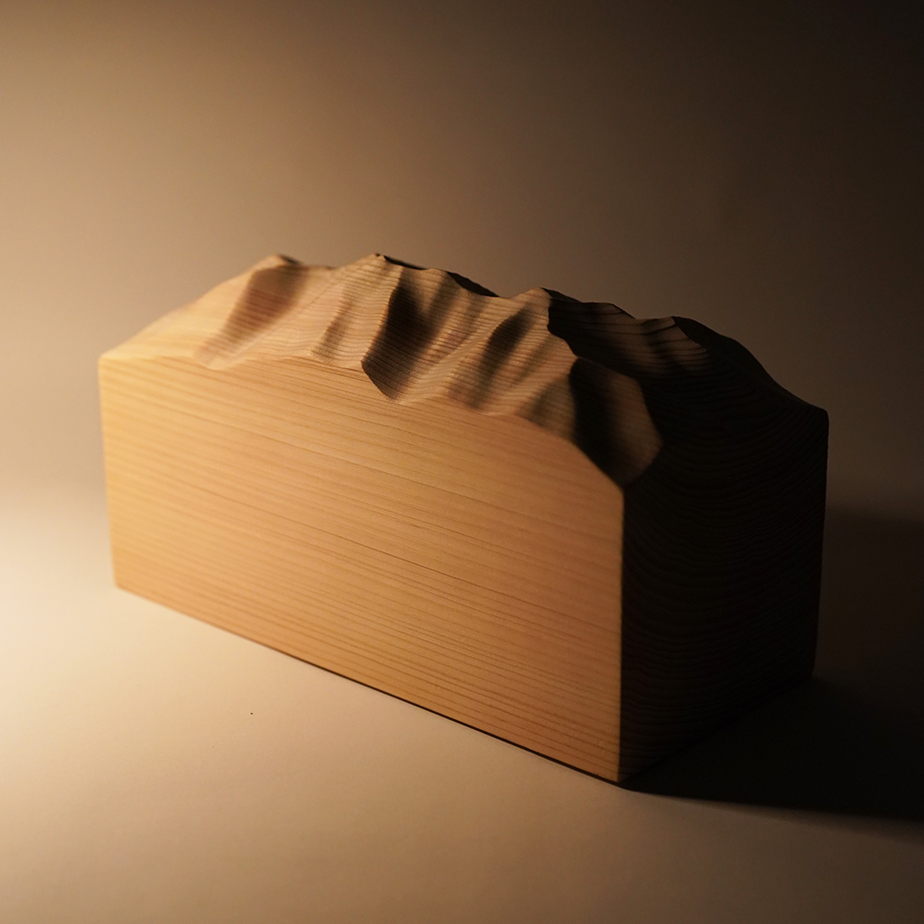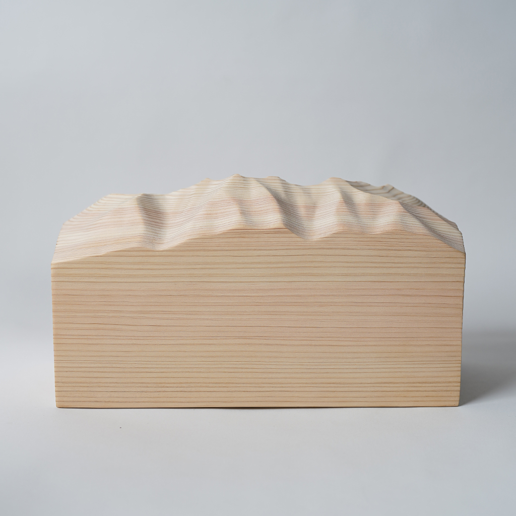 山梨県北杜市を拠点に創作活動をおこなう、井出裕太氏(ikkaku mosaic.)の作品。 私たちを魅了し様々なかたちでインスピレーションを与えてくれる雄大な自然。 井出裕太氏もまた、見てきた山麓からの景色や、稜線を歩くことで目にする大地のシワのような沢筋や尾根、氷河地形の痕跡など、作家自身の記憶や体験を通し、雄大な自然が移植されたかのような名もなき山の作品群を精力的に制作しています。 2025年初夏の最新作は、鳥が俯瞰しているような視点で山々の全体像を表現した『over view』シリーズ。 近くから、少し離れて、眺める距離や角度によっても立ち上がるイメージが変わってくる、広がりのある作品に仕上がっています。 ■井出 裕太 1982年 長野県南佐久出身。 山梨県北杜市在住。 2002年頃より登山、バックカントリースノーボードをはじめ、山を中心とした生活を送る。 2010年、北アルプスに魅了され、松本市内の登山用品店に勤務。 2017年、北杜市へ移住し、木工をはじめる。 自作したアトリエで創作活動をおこない、アウトドブランドとのコラボやワークショップを開催。 現在は、見てきた山、歩いた稜線、滑った地形から受けたイメージを表現するべく、山の造形作品を展開している。 光の当たり方や眺める角度によっても立ち上がるイメージが変わってくる、広がりのある作品です。