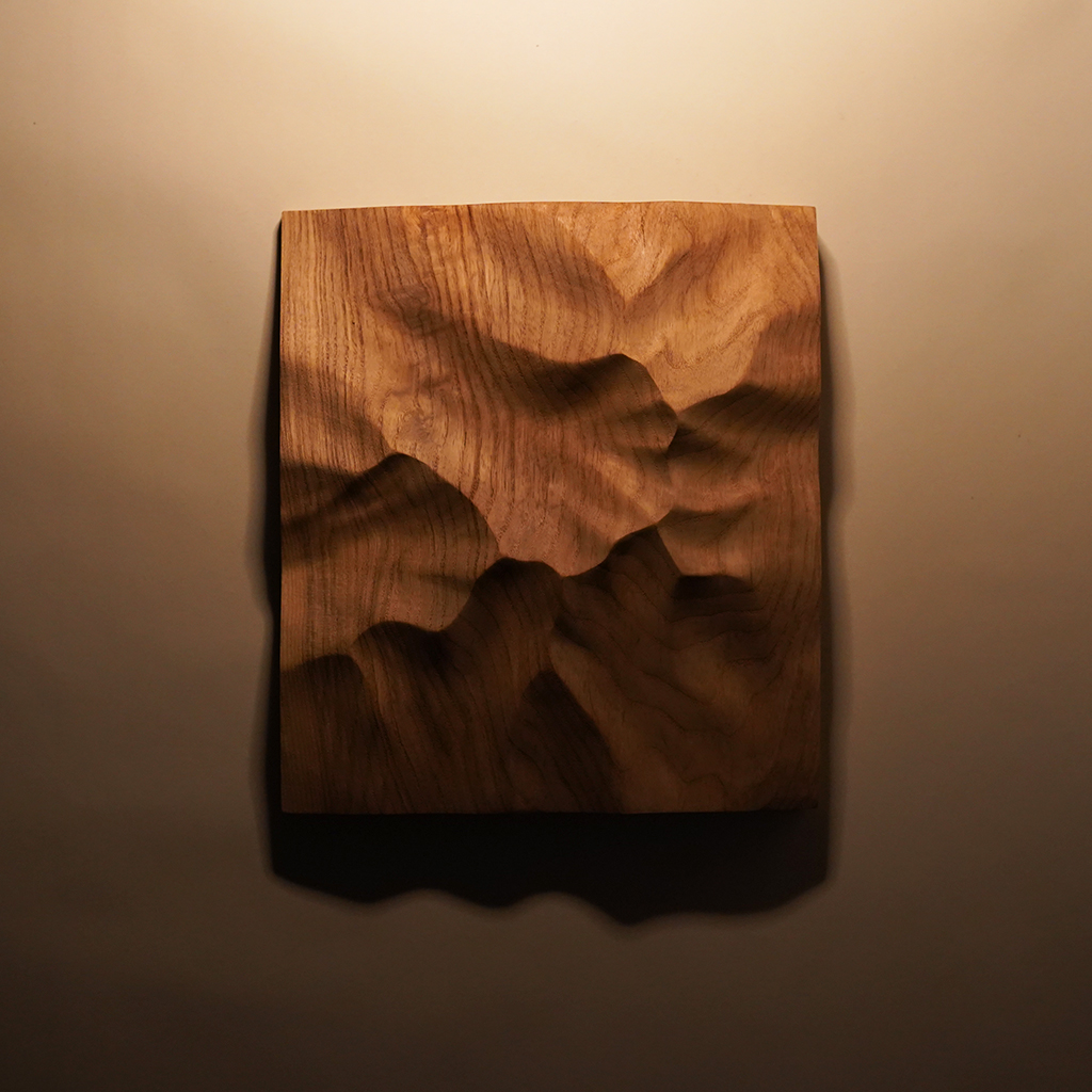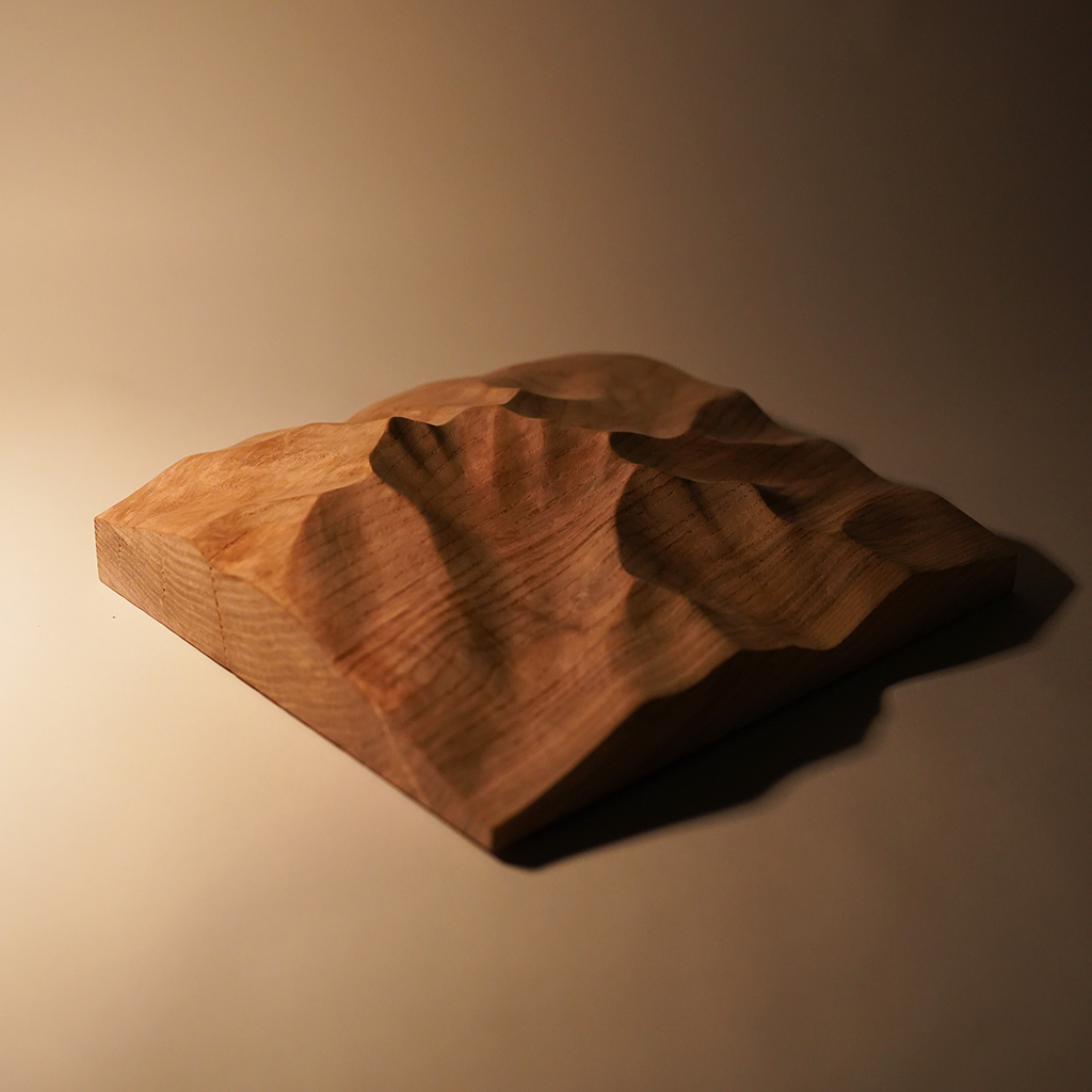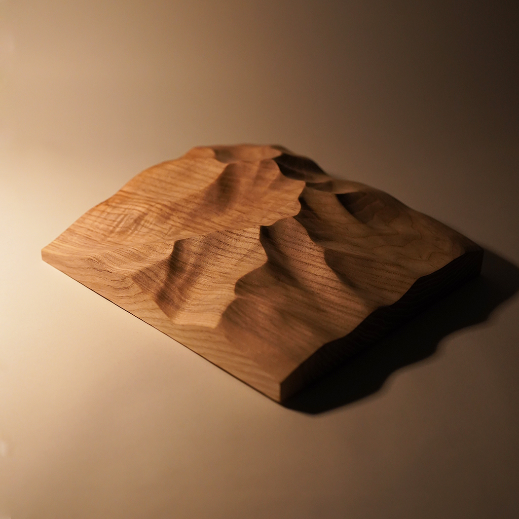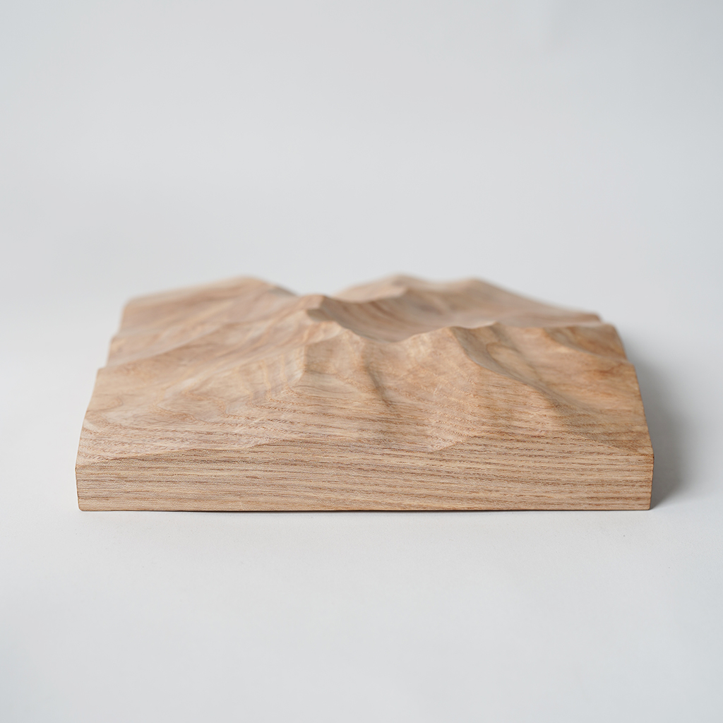 山梨県北杜市を拠点に創作活動をおこなう、井出裕太氏(ikkaku mosaic.)の作品。 私たちを魅了し様々なかたちでインスピレーションを与えてくれる雄大な自然。 井出裕太氏もまた、見てきた山麓からの景色や、稜線を歩くことで目にする大地のシワのような沢筋や尾根、氷河地形の痕跡など、作家自身の記憶や体験を通し、雄大な自然が移植されたかのような名もなき山の作品群を精力的に制作しています。 2025年初夏の最新作は、鳥が俯瞰しているような視点で山々の全体像を表現した『over view』シリーズ。 近くから、少し離れて、眺める距離や角度によっても立ち上がるイメージが変わってくる、広がりのある作品に仕上がっています。 ■井出 裕太 1982年 長野県南佐久出身。 山梨県北杜市在住。 2002年頃より登山、バックカントリースノーボードをはじめ、山を中心とした生活を送る。 2010年、北アルプスに魅了され、松本市内の登山用品店に勤務。 2017年、北杜市へ移住し、木工をはじめる。 自作したアトリエで創作活動をおこない、アウトドブランドとのコラボやワークショップを開催。 現在は、見てきた山、歩いた稜線、滑った地形から受けたイメージを表現するべく、山の造形作品を展開している。 光の当たり方や眺める角度によっても立ち上がるイメージが変わってくる、広がりのある作品です。