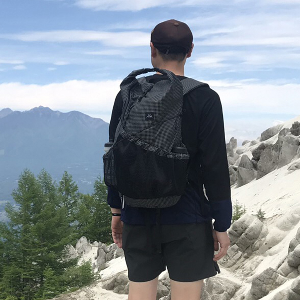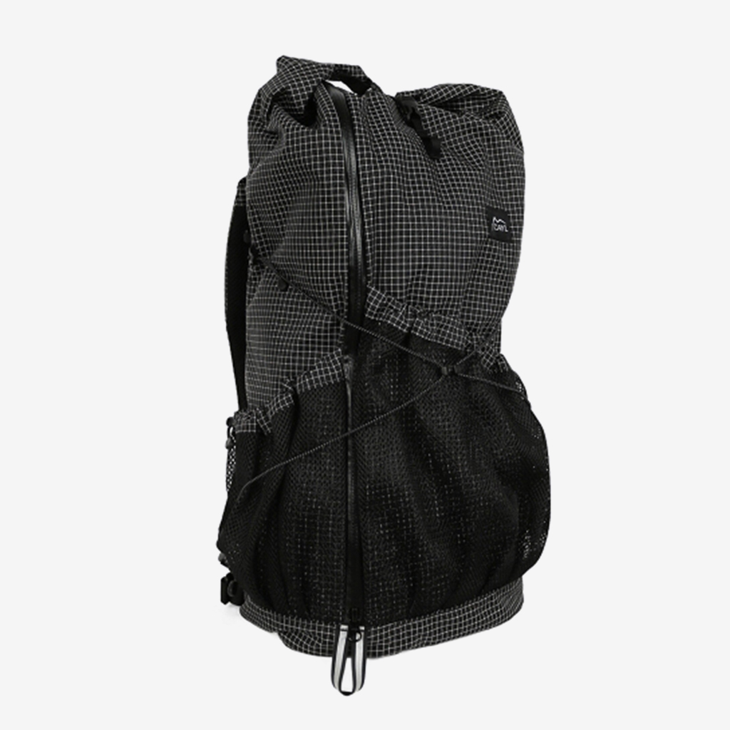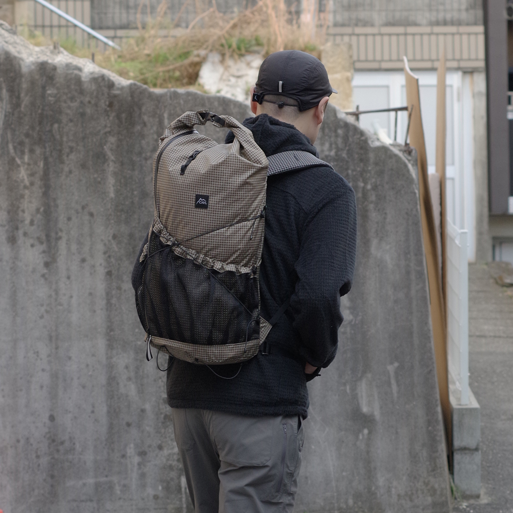 韓国のULハイキングシーンを牽引するCAYLのロングセラーモデル『Mari Roll Top』は、1泊2日の軽量ハイキング、日帰りハイキング、デイリーに使うことができるバックパックです。 30Lクラスという汎用性のあるサイズに、絶妙なバランスのアシンメトリーデザイン。 そして、特徴的なフロントのダブルジップファスナーは、ロールトップ式の懸念点のひとつであるメイン部へのアクセスのしにくさを、デザインに落とし込みながら解決しています。 上下どちらからも開閉でき、完全開放も可能。中の荷物も取り出しやすく、パッキングを容易にしてくれます。 荷物が軽く感じる優れたシュルダーハーネスの設計。 オプションの『Stretch Pocket Hip Belt』を組み合わせれば、さらに腰荷重で背負えます。 カラー:Black カラー:Grey カラー:Khaki カラー:White カラー:Dark Green 上部がマジックテープになったロールトップ部分は、荷物の量に合わせて可変でき、バッグ内部には、ジップ付きのポケットが付いているので、貴重品なども収納可能です。 非対称デザインのフロントメッシュは、左右で用途を分けて使えます。濡れたテントや、アウターなどもこちらに収納できます。 ショルダーハーネスと背面はメッシュを使用し、蒸れにくく通気性の高いつくり。20mmのウェビングを使用したウエストベルトは、バックパックの揺れを防止してくれます。背面(内側)には、3つ折りのパッド入り。ちょっとした休憩や、就寝時のマットとして使用できます。 チェストストラップのバックルはホイッスルになっているので、エマージェンシーホイッスルとしても使用可能。 ボトム部分は、リフレクターテープを使用し、夜間の安全性を高めています。また、コードなどを通せるパーツが数カ所付いてるので、バンジーコードでカスタムすることで、マットやトレッキングポールなども取り付け可能です。