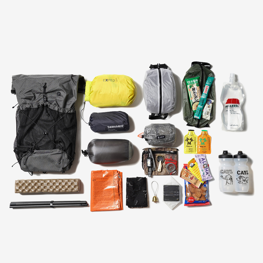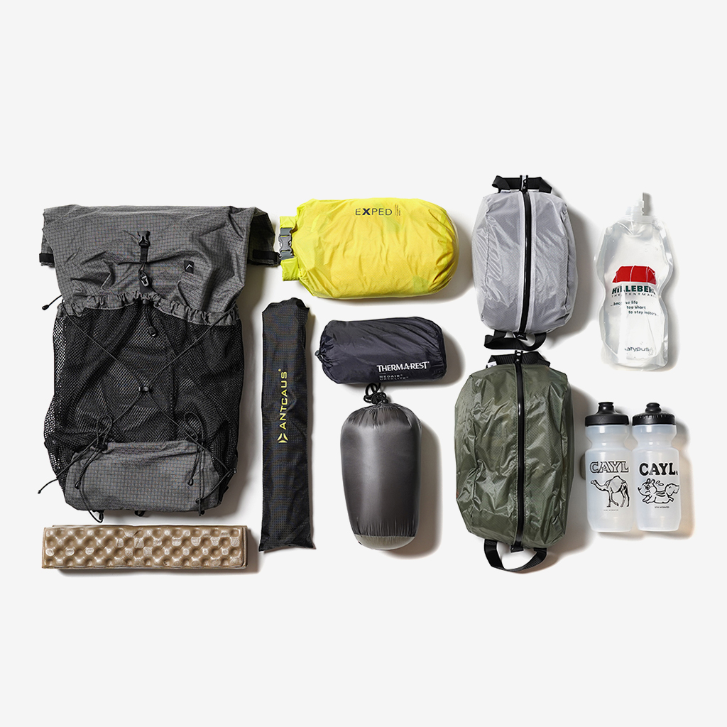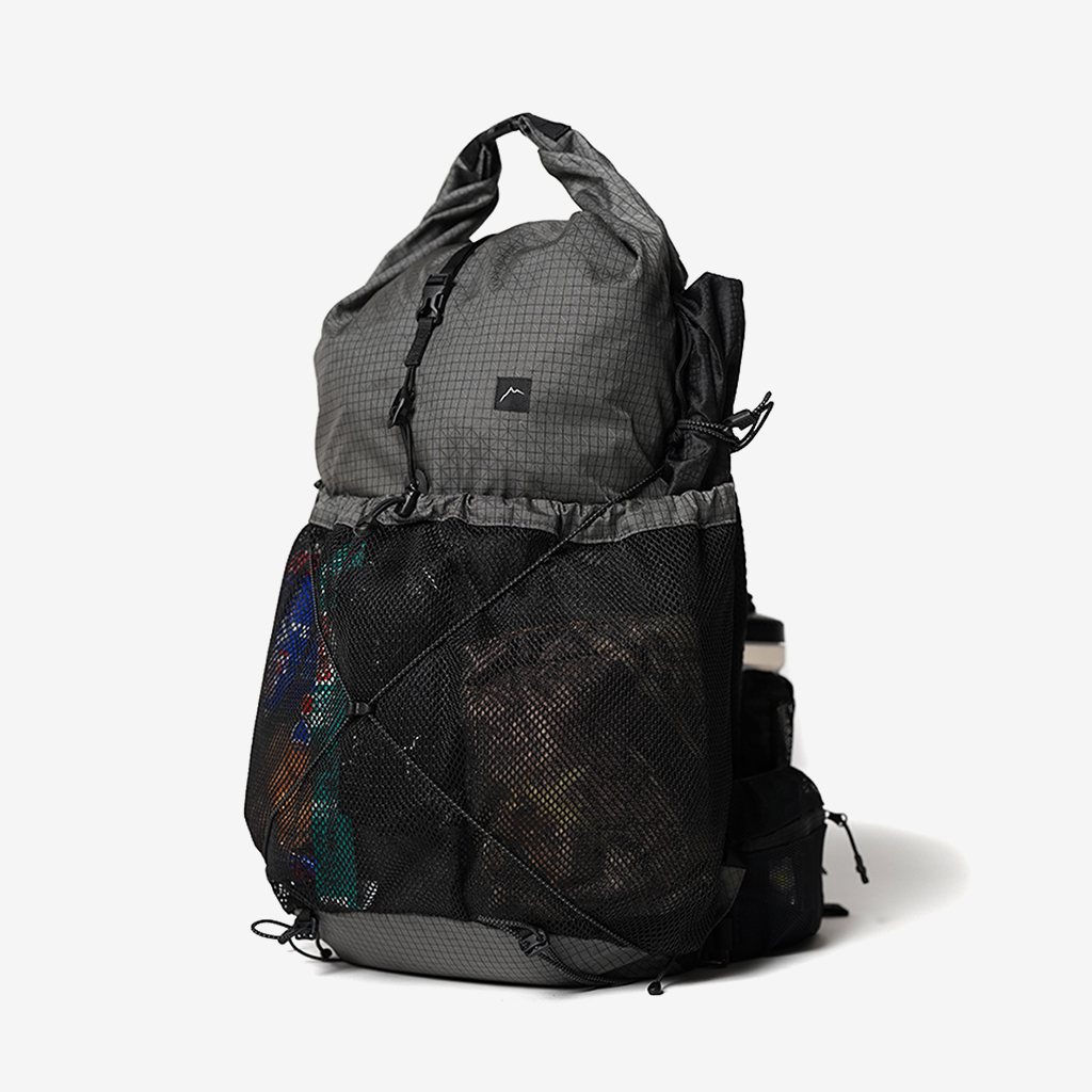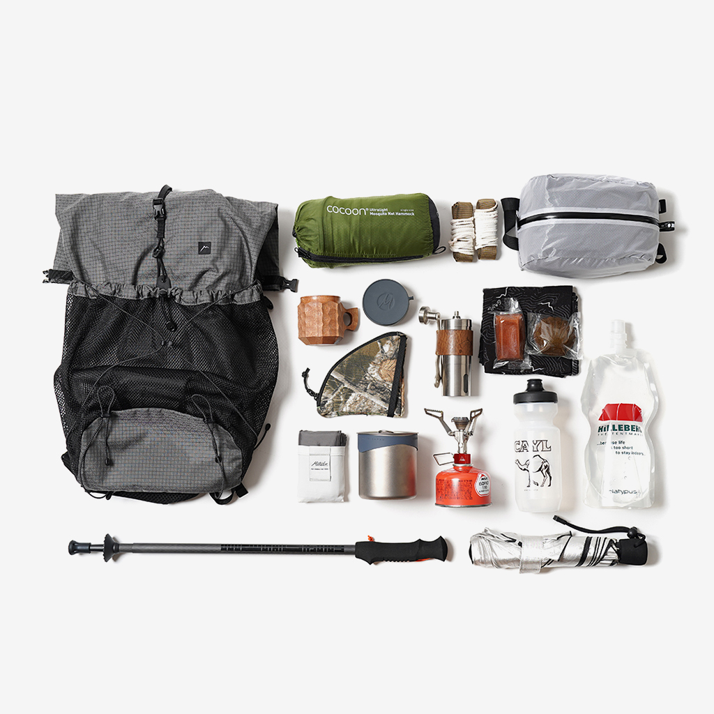 韓国のU.Lハイキングシーンを牽引するガレージブランドCAYL(ケイル)のGayaは、タウンユースから、デイハイキング、さらにULハイカーであれば長距離ハイキングにも使用可能なサイズのバックパック。 デイハイクに適したサイズですが、メッシュポケットやボトムに標準装備されたバンジーコードをを活用すれば、ミニマリストハイカーであれば、夏山オーバーナイトハイクでも十分楽しめるバックパックです。 容量が約18-22Lサイズのバックパックで、使い勝手と見た目の良さのバランスの良いバックパックは探すとあまり無いのが現状です。 ボディ素材はハリのあるX-Pacを使用しています。外側には使い勝手の良い大きなメッシュポケット付き。重さも約395gと非常に軽量で申し分ありません。 ポケットのたるみを防止のためのフックが付いているので、だらしなく広がりすぎてしまうことがありません。 僕みたいにボトルや行動食など何でも外ポケットに入れてしまうズボラな人にも嬉しい仕様です。笑 ポケット外側のバンジーコードで、マットやアウターを挟むことも可能です。 背面には取り外し可能なフォームパッドが標準装備。休憩時のマットやサブのマットとしても使用可能です。もちろんサイズが合えば、自分好みのマットに変更しても構いません。 貴重品などを収納できるよう、内部にはジッパー付きポケットを配置しています。 カラー:Black カラー:White カラー:Silver カラー:Olive メッシュポケットのたるみを防止するフック付き ボトムに標準装備されたバンジーコードは、マットやトレッキングポールなども取り付け可能 安心感のあるショルダーハーネス。 ※2024年モデルより、ショルダーストラップのカラーは、全てこちらのB-Gridになります。 チェストストラップにはホイッスル付きのバックル ウエストベルトは取り外し可能。 別売のStretch Pocket Hip Beltに付け替えれば、より腰で支えられます。 モデル:182cm モデル:182cm モデル:158cm のんびりデイハイクを想定したパッキング例。 コーヒーセット、レジャーシート、ハンモック、トレッキングポール、晴雨兼用傘、防寒着など。 夏のULスタイルのテント泊を想定したパッキング例。 フロアレスシェルター、テントポール、エアマット、夏用シュラフ、レインウェア上下、防寒着、ヘッドライト、クッカー、食料など。 デイハイクから、季節や装備次第ではテント泊まで、使い勝手の良いCAYLのロングセラーパックです。
