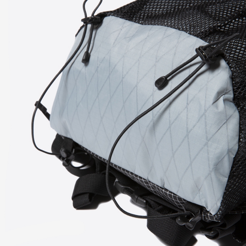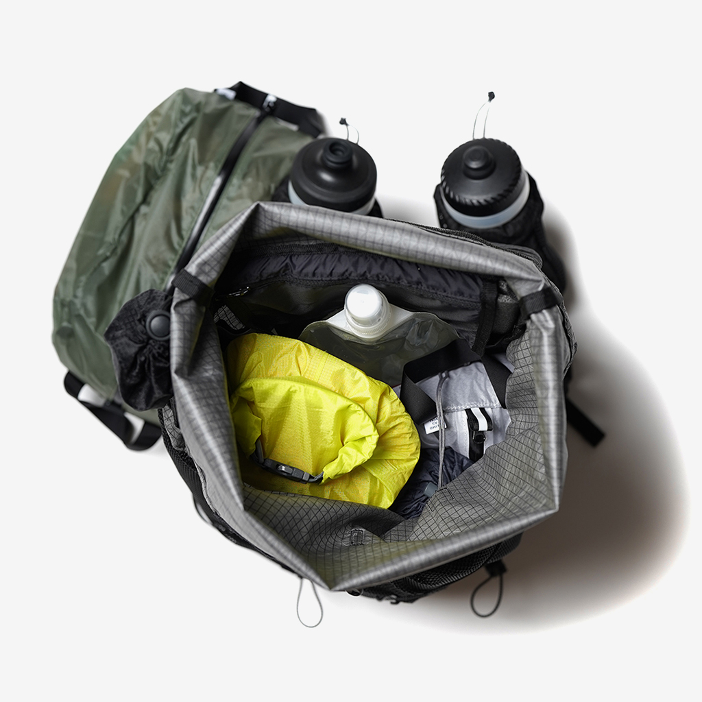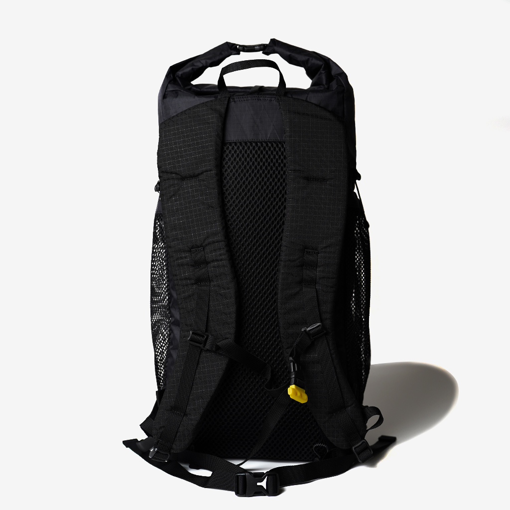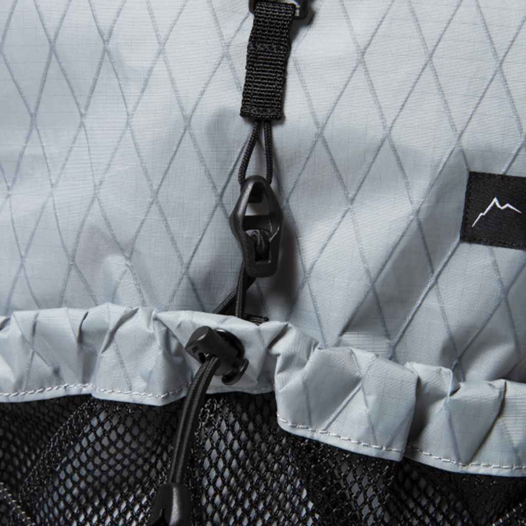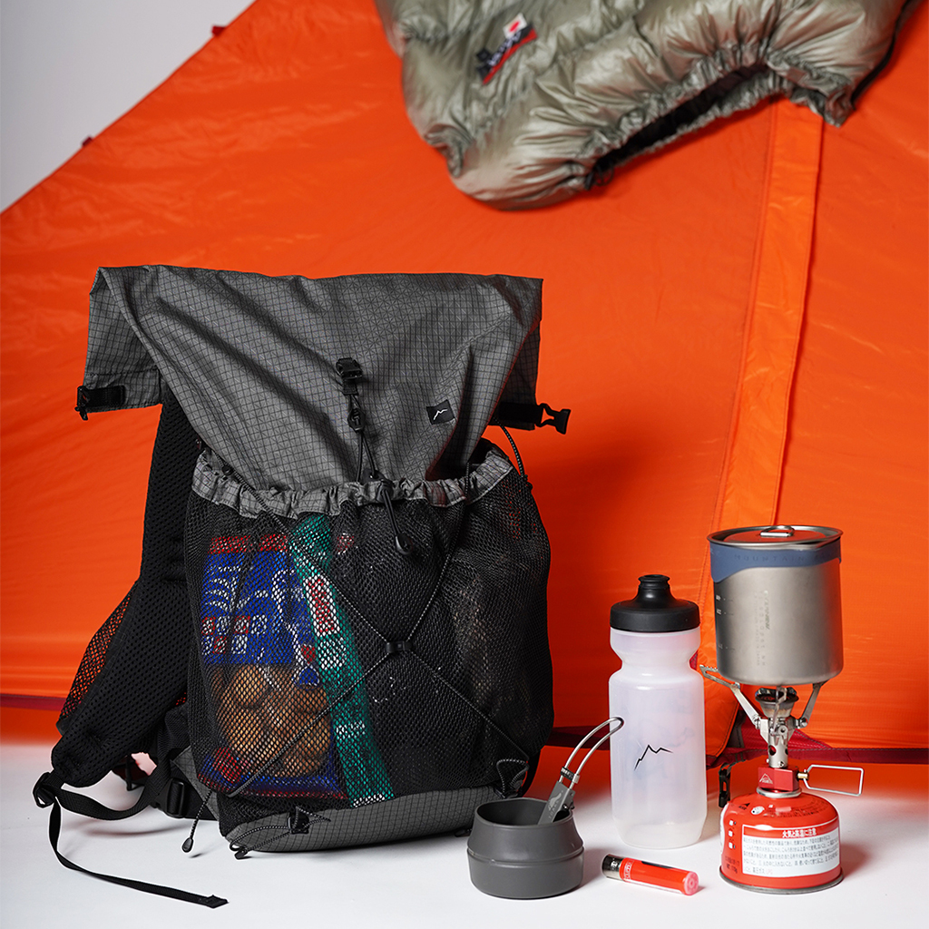 韓国のU.Lハイキングシーンを牽引するガレージブランドCAYL(ケイル)のGayaは、タウンユースから、デイハイキング、さらにULハイカーであれば長距離ハイキングにも使用可能なサイズのバックパック。 デイハイクに適したサイズですが、メッシュポケットやボトムに標準装備されたバンジーコードをを活用すれば、ミニマリストハイカーであれば、夏山オーバーナイトハイクでも十分楽しめるバックパックです。 容量が約18-22Lサイズのバックパックで、使い勝手と見た目の良さのバランスの良いバックパックは探すとあまり無いのが現状です。 ボディ素材はハリのあるX-Pacを使用しています。外側には使い勝手の良い大きなメッシュポケット付き。重さも約395gと非常に軽量で申し分ありません。 ポケットのたるみを防止のためのフックが付いているので、だらしなく広がりすぎてしまうことがありません。 僕みたいにボトルや行動食など何でも外ポケットに入れてしまうズボラな人にも嬉しい仕様です。笑 ポケット外側のバンジーコードで、マットやアウターを挟むことも可能です。 背面には取り外し可能なフォームパッドが標準装備。休憩時のマットやサブのマットとしても使用可能です。もちろんサイズが合えば、自分好みのマットに変更しても構いません。 貴重品などを収納できるよう、内部にはジッパー付きポケットを配置しています。 カラー:Black カラー:White カラー:Silver カラー:Olive メッシュポケットのたるみを防止するフック付き ボトムに標準装備されたバンジーコードは、マットやトレッキングポールなども取り付け可能 安心感のあるショルダーハーネス。 ※2024年モデルより、ショルダーストラップのカラーは、全てこちらのB-Gridになります。 チェストストラップにはホイッスル付きのバックル ウエストベルトは取り外し可能。 別売のStretch Pocket Hip Beltに付け替えれば、より腰で支えられます。 モデル:182cm モデル:182cm モデル:158cm のんびりデイハイクを想定したパッキング例。 コーヒーセット、レジャーシート、ハンモック、トレッキングポール、晴雨兼用傘、防寒着など。 夏のULスタイルのテント泊を想定したパッキング例。 フロアレスシェルター、テントポール、エアマット、夏用シュラフ、レインウェア上下、防寒着、ヘッドライト、クッカー、食料など。 デイハイクから、季節や装備次第ではテント泊まで、使い勝手の良いCAYLのロングセラーパックです。