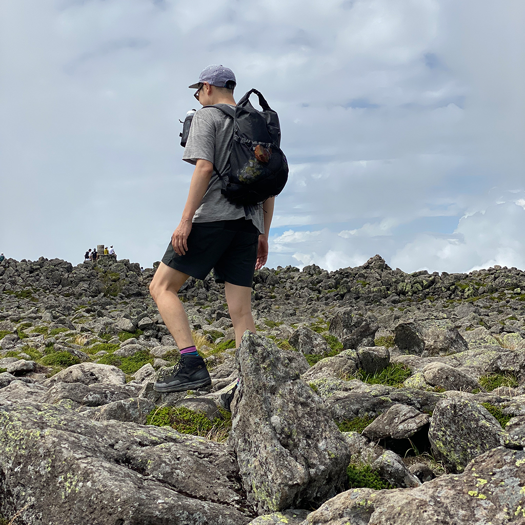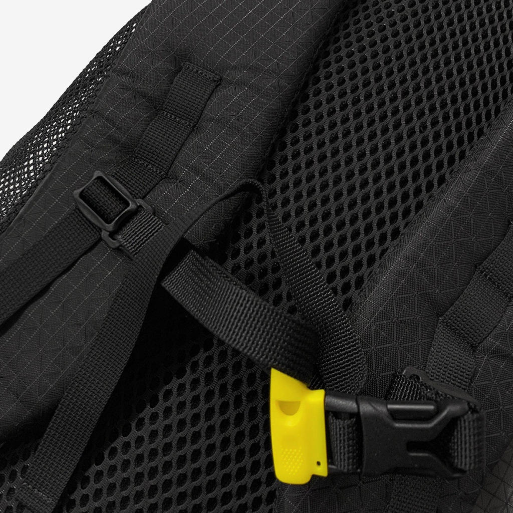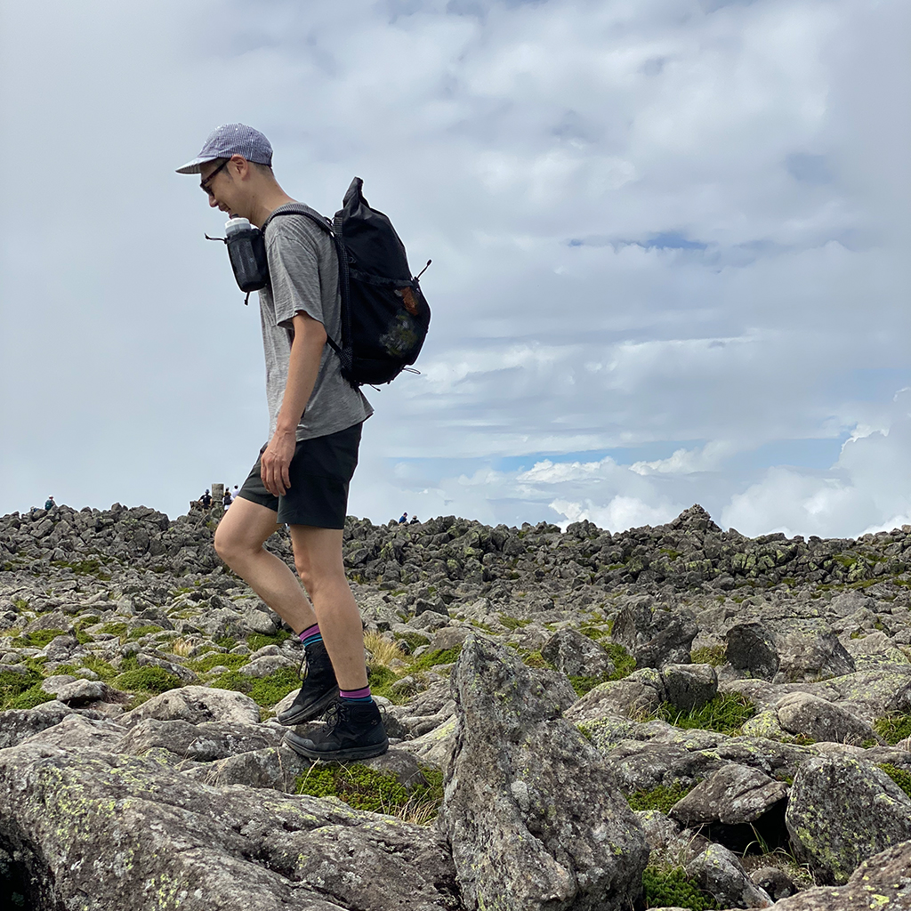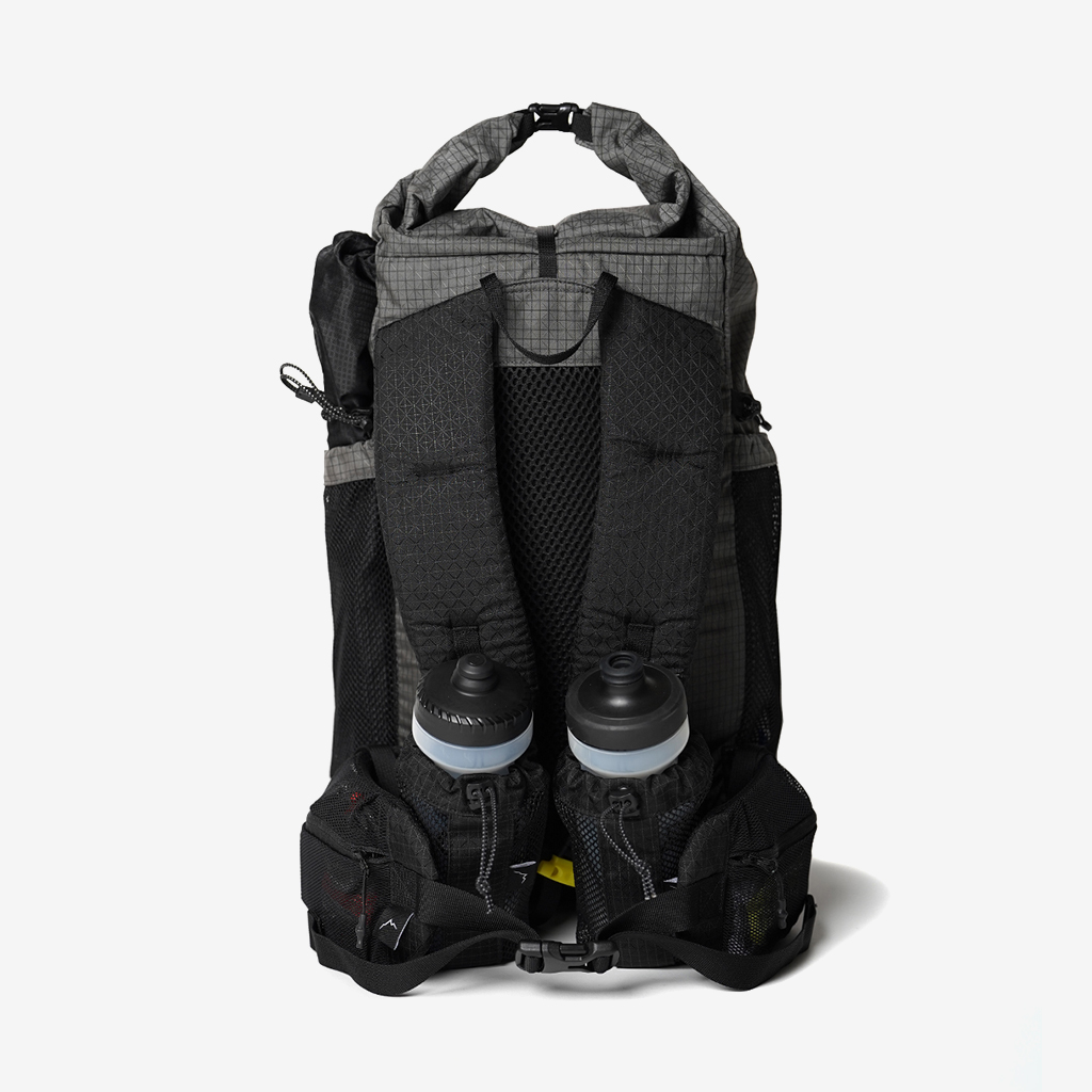 韓国のU.Lハイキングシーンを牽引するガレージブランドCAYL(ケイル)のGayaは、タウンユースから、デイハイキング、さらにULハイカーであれば長距離ハイキングにも使用可能なサイズのバックパック。 デイハイクに適したサイズですが、メッシュポケットやボトムに標準装備されたバンジーコードをを活用すれば、ミニマリストハイカーであれば、夏山オーバーナイトハイクでも十分楽しめるバックパックです。 容量が約18-22Lサイズのバックパックで、使い勝手と見た目の良さのバランスの良いバックパックは探すとあまり無いのが現状です。 ボディ素材はハリのあるX-Pacを使用しています。外側には使い勝手の良い大きなメッシュポケット付き。重さも約395gと非常に軽量で申し分ありません。 ポケットのたるみを防止のためのフックが付いているので、だらしなく広がりすぎてしまうことがありません。 僕みたいにボトルや行動食など何でも外ポケットに入れてしまうズボラな人にも嬉しい仕様です。笑 ポケット外側のバンジーコードで、マットやアウターを挟むことも可能です。 背面には取り外し可能なフォームパッドが標準装備。休憩時のマットやサブのマットとしても使用可能です。もちろんサイズが合えば、自分好みのマットに変更しても構いません。 貴重品などを収納できるよう、内部にはジッパー付きポケットを配置しています。 カラー:Black カラー:White カラー:Silver カラー:Olive メッシュポケットのたるみを防止するフック付き ボトムに標準装備されたバンジーコードは、マットやトレッキングポールなども取り付け可能 安心感のあるショルダーハーネス。 ※2024年モデルより、ショルダーストラップのカラーは、全てこちらのB-Gridになります。 チェストストラップにはホイッスル付きのバックル ウエストベルトは取り外し可能。 別売のStretch Pocket Hip Beltに付け替えれば、より腰で支えられます。 モデル:182cm モデル:182cm モデル:158cm のんびりデイハイクを想定したパッキング例。 コーヒーセット、レジャーシート、ハンモック、トレッキングポール、晴雨兼用傘、防寒着など。 夏のULスタイルのテント泊を想定したパッキング例。 フロアレスシェルター、テントポール、エアマット、夏用シュラフ、レインウェア上下、防寒着、ヘッドライト、クッカー、食料など。 デイハイクから、季節や装備次第ではテント泊まで、使い勝手の良いCAYLのロングセラーパックです。