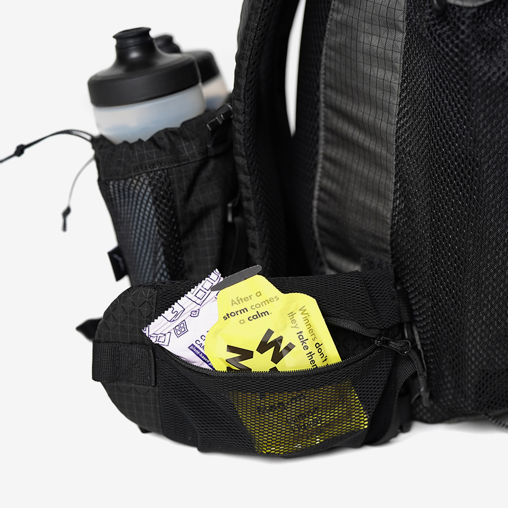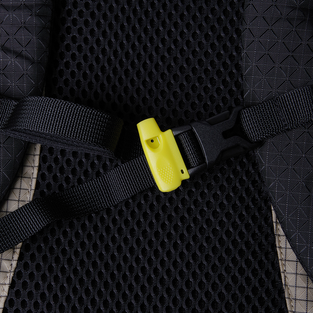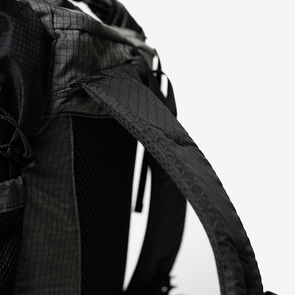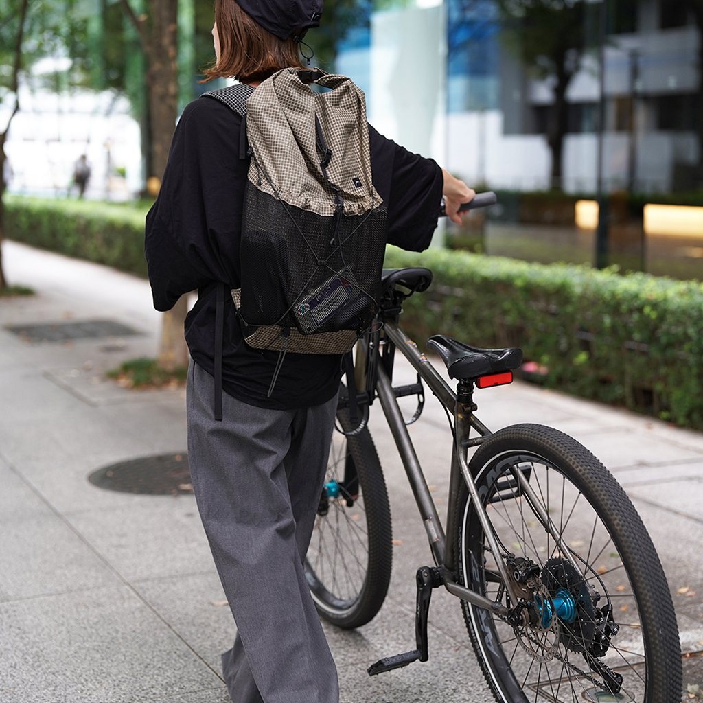 韓国のU.Lハイキングシーンを牽引するガレージブランドCAYL(ケイル)のGayaは、タウンユースから、デイハイキング、さらにULハイカーであれば長距離ハイキングにも使用可能なサイズのバックパック。 デイハイクに適したサイズですが、メッシュポケットやボトムに標準装備されたバンジーコードを活用すれば、ミニマリストハイカーであれば、夏山オーバーナイトハイクでも十分楽しめます。 約18-22Lサイズで、使い勝手と見た目の良さのバランスの良いバックパックは探すとあまり無いのが現状です。 メイン素材はCAYL B-GRID FABRICを使用。外側には使い勝手の良い大きなメッシュポケット付き。重さも約421gと軽量で申し分ありません。たるみを防止するフックも付いているので、外ポケットがだらしなく広がりすぎてしまうことがありません。僕みたいにボトルや行動食など何でも外ポケットに入れてしまうズボラな人にも嬉しい仕様。 ポケット外側のバンジーコードで、マットやアウターを挟むことも可能です。背面には取り外し可能なフォームパッドが標準装備。休憩時のマットやサブマットとしても。もちろんサイズが合えば、自分好みのマットに変更しても構いません。貴重品などを収納できるよう、内部にはジッパー付きポケットを配置しています。 ショルダーハーネスもしっかりとした厚みがあり、バックパックの軽量化に挑戦したい人にも安心しておすすめできます。 カラー:Black カラー:Beige カラー:White カラー:Grey 安心感のあるショルダーハーネス。 ※2022年7月入荷分より、背面がメッシュ仕様にアップデートされました。 ロールトップ上部はベルクロ仕様になっていて、バックルで留めなくても使用できます。 メッシュポケットのたるみを防止するフック付き。 ボトムに標準装備されたバンジーコードで、スリーピングマットやトレッキングポールを持ち運べます。 チェストストラップのバックルはホイッスル付き。 ウエストベルトは取り外し可能。 別売のStretch Pocket Hip Beltに付け替えれば、より腰で支えられます。 モデル:182cm モデル:175cm モデル:158cm のんびりデイハイクを想定したパッキング例。 コーヒーセット、レジャーシート、ハンモック、トレッキングポール、晴雨兼用傘、防寒着など。 夏のULスタイルのテント泊を想定したパッキング例。 フロアレスシェルター、テントポール、エアマット、夏用シュラフ、レインウェア上下、防寒着、ヘッドライト、クッカー、食料など。 デイハイクから、季節や装備次第ではテント泊まで、使い勝手の良いCAYLのロングセラーパックです。