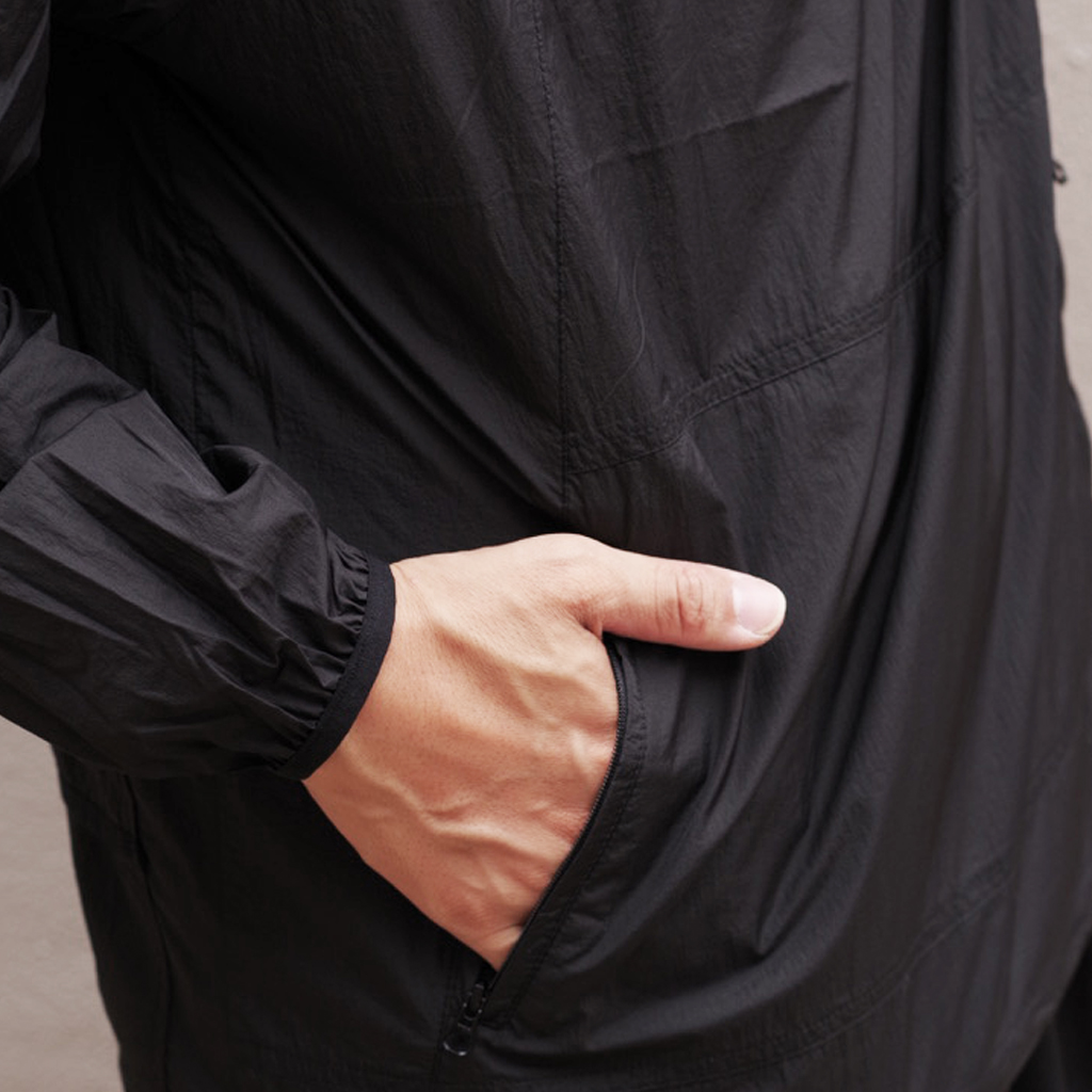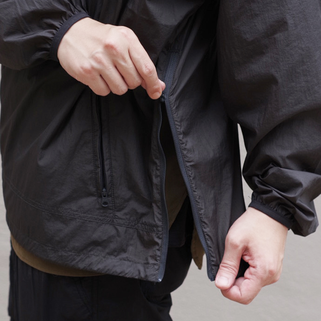 CAYLの『Nylon Washer Pullover Jacket』は、ワッシャー加工による自然なシワが特徴のプルオーバージャケット。 15Dナイロンと薄手ながら撥水コーティングが施され、薄いPUコーティングで防風性も持っています。プルオーバーながら、サイドオープンジッパーのおかげで着脱もスムーズ。 バックパックを背負っても干渉しづらいポケット配置。胸のポケットは、ジッパーとカバーのW仕様で、しっかりガードされています。 右腰部分のポケットを使って、パッカブルにもできます。 軽量でコンパクトで荷物の負担にならず、幅広いシーンで活躍します。ハイキングはもちろん、自転車や旅にも◎ モデル:173cm Lサイズ(Black)着用 モデル:158cm Sサイズ(Dark Khaki)着用 モデル:182cm XLサイズ(Dark Khaki)着用