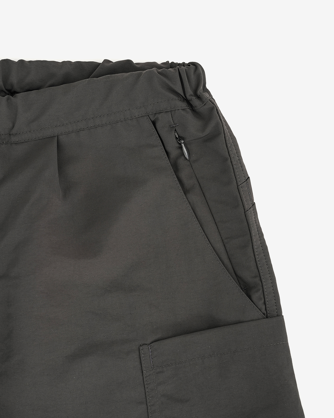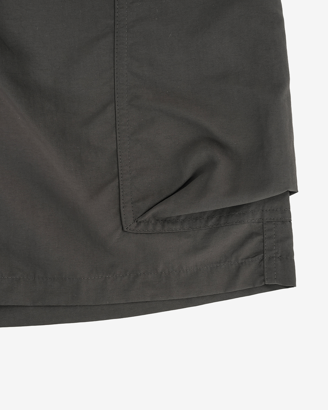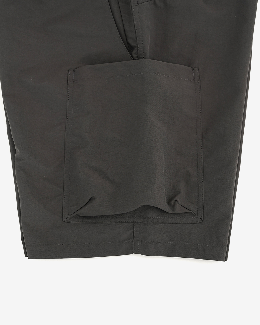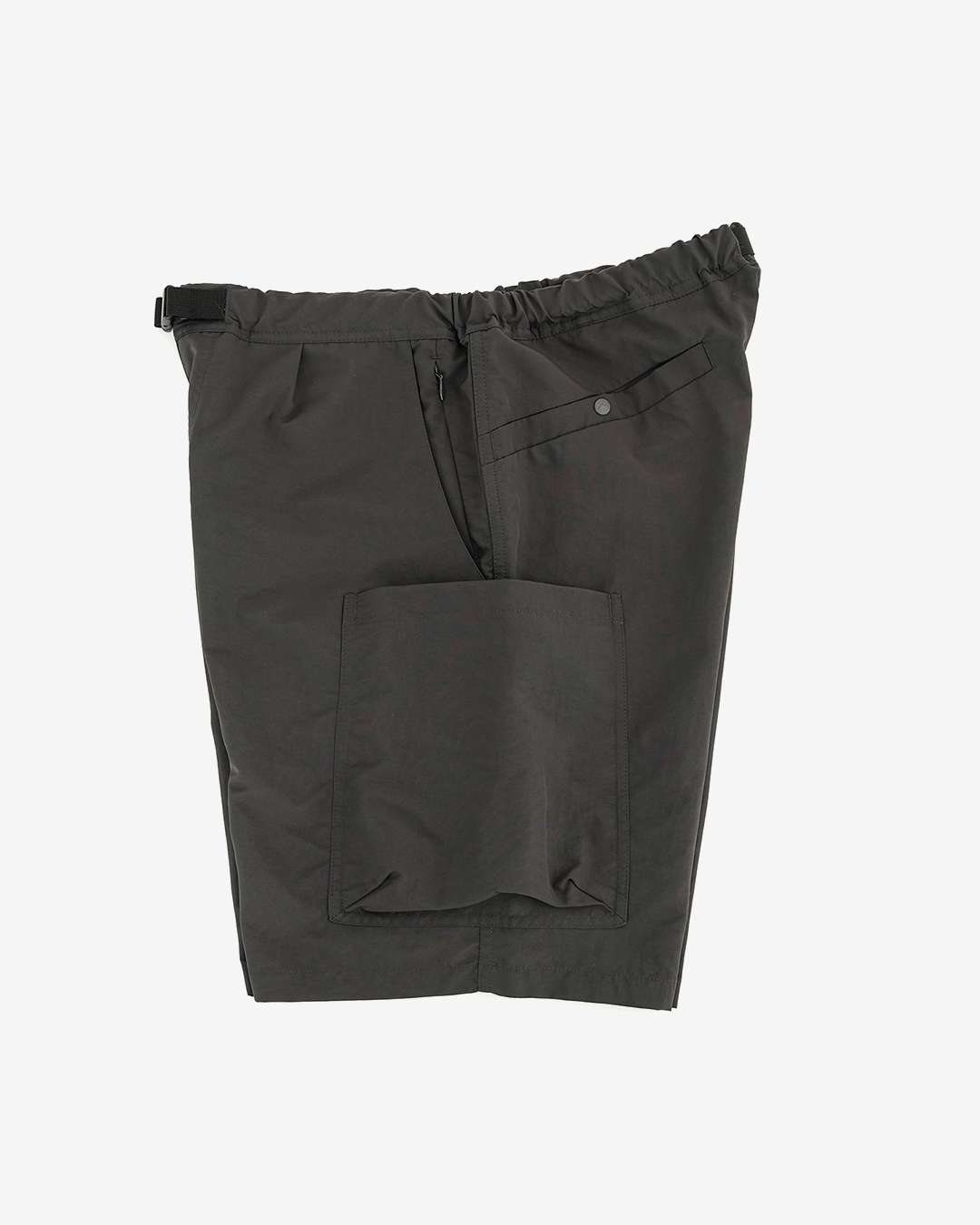 優しい肌触りで、耐久性、速乾性に優れるナイロンで作られた『Multi Pocket Shorts』 豊富な8か所のポケットは、フロントポケットはダブルポケットで、片方はジッパータイプ。ヒップポケットはスナップボタン。両サイドにもカーゴポケットと、用途によって使い分けできます。 ウエストやヒップ、太もも周りはゆったりとしたサイズ感で、動きやすさを確保。 撥水コーティングも施され、デイリーユースから、ちょっとしたアクティビティまでこなせる快適ななサマーショーツです。 モデル:184cm Lサイズ