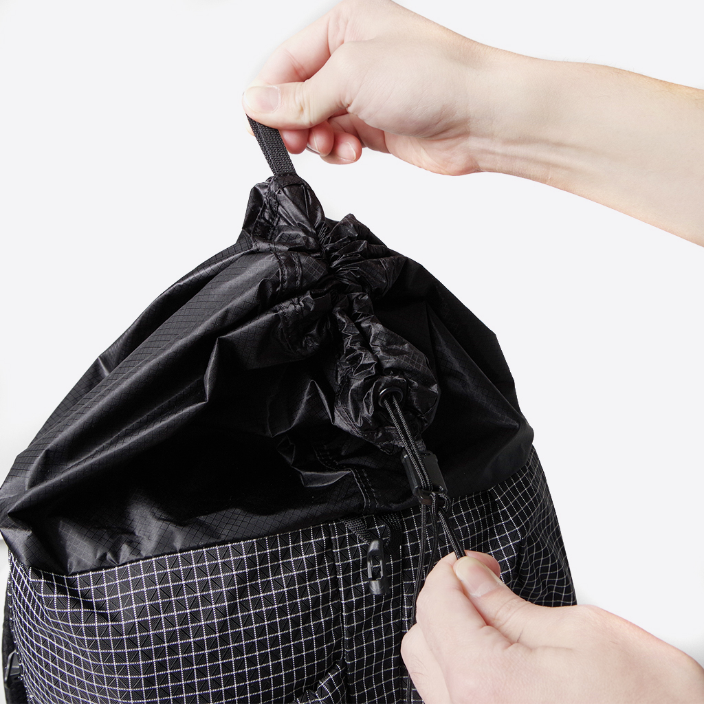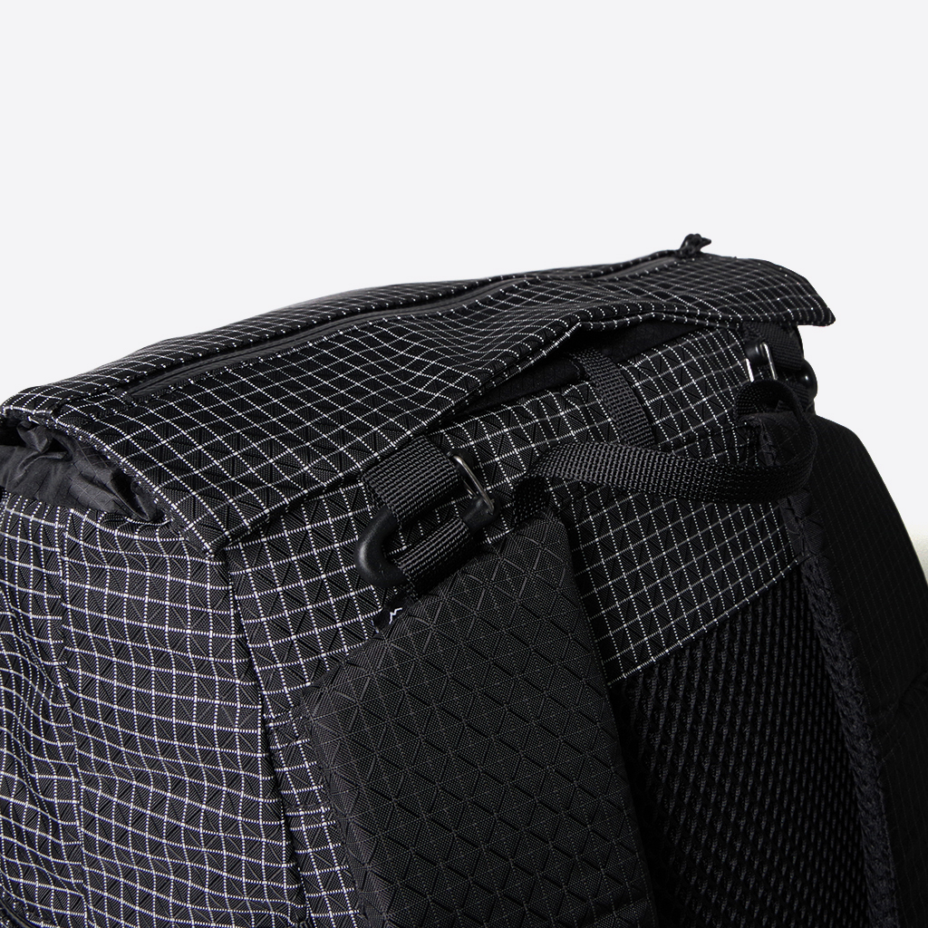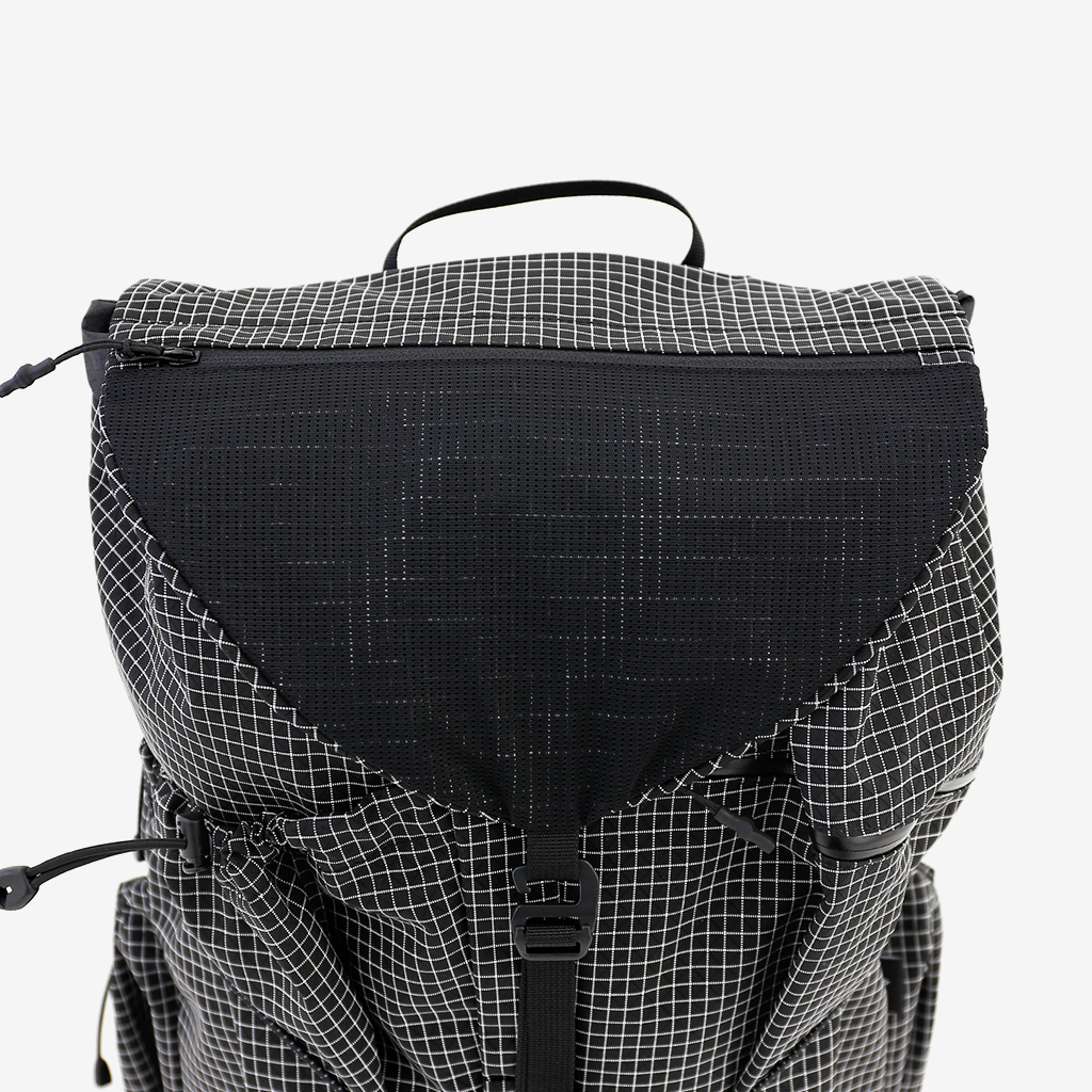 行動しながらアクセスしやすいフロント側の豊富なポケット。 長めのボトルでも揺れずに固定できるよう、メッシュポケット上部にコードも付いています。 トップリッドはリバーシブル対応で、メッシュポケットを外側にすることもできます。 トップリッドはショルダーハーネスの付け根部分に接続。クリップパーツで簡単に取り外しもできます。 トップリッドの表側。 トップリッドの裏側。リバーシブルなので、こちらを表として使うこともできます。 トップリッド無しでもOK。よりクイックに内部にアクセスできます。 コードロック付きのクイックアタッチコードで、ワンアクションでスピーディーに開閉できます。 内部のジッパー付きポケット。貴重品などはこちらに。