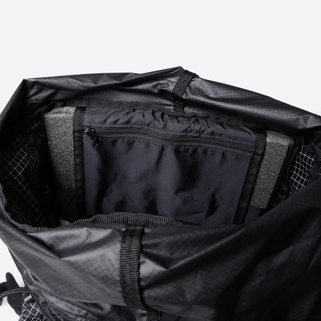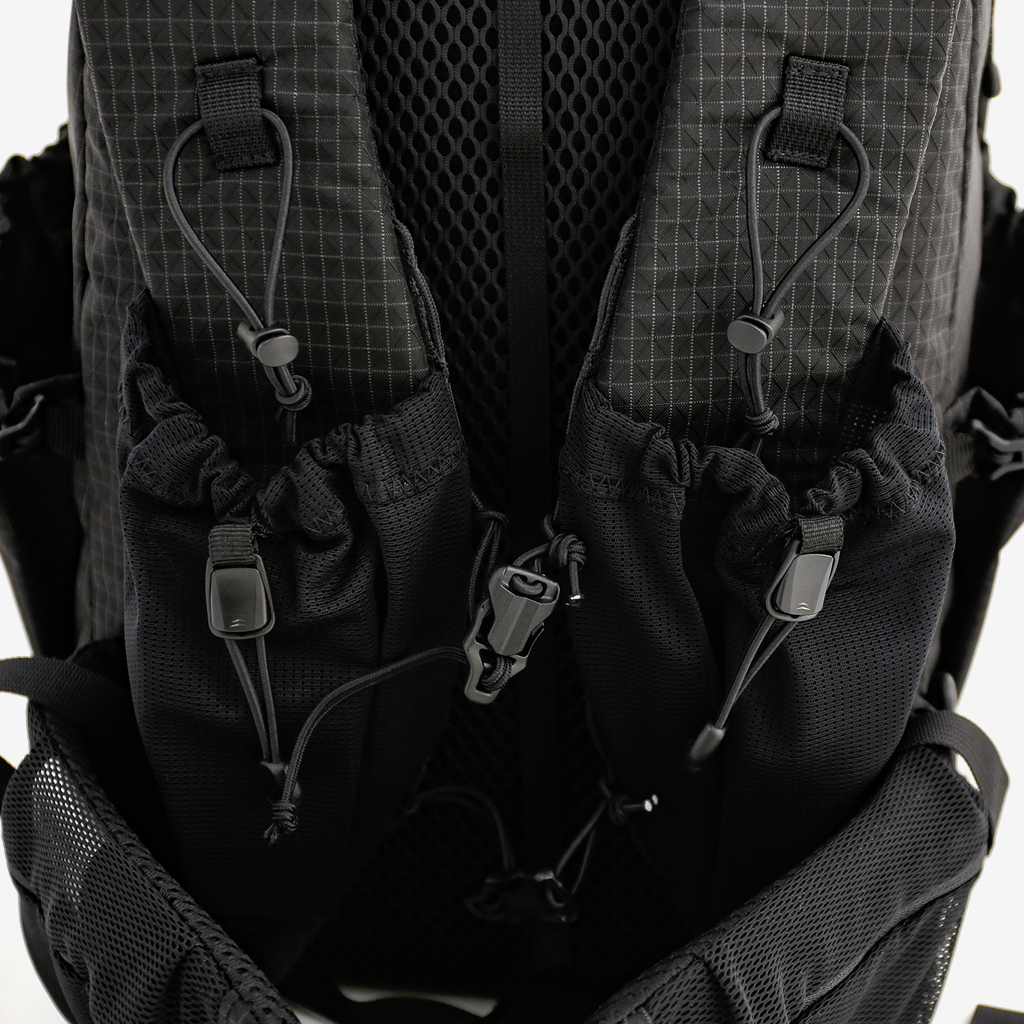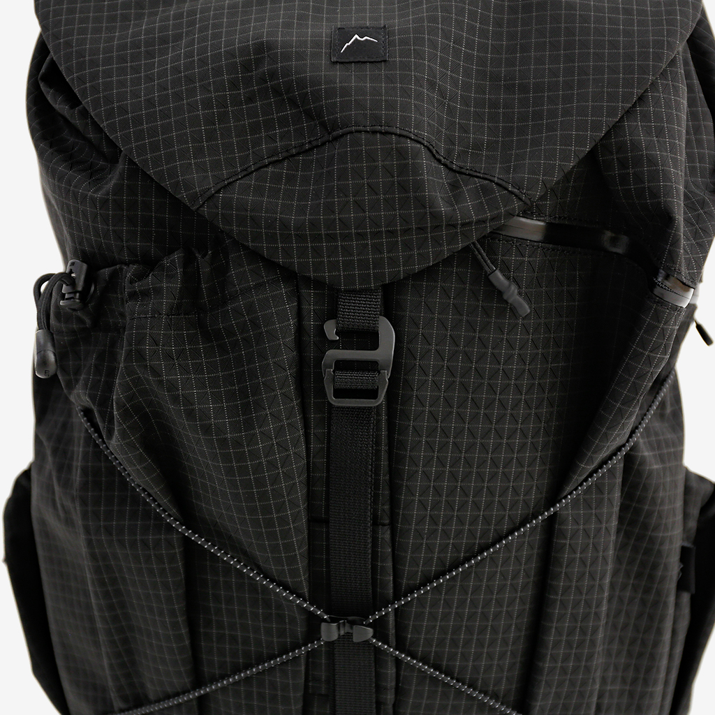 CAYLが提案する1泊2日の軽量ハイク、日帰りハイク向けの30Lクラスのバックパック『Juheul(ジュヘル)』 カスタマイズ性があり、スピードハイクを意識したモデルとなっています。 トップリッドは好みに合わせてリバーシブル対応で、必要なければ取り外しも可能です。 メインコンパートメントへのアクセスは、コードロック付きのクイックアタッチコードを採用。ワンアクションでスピーディーに開閉できます。 ショルダーハーネスには、左右どちらにもメッシュポケットを標準装備。取り外しはできませんが、後付けタイプとは異なり、揺れが少ないのはうれしいポイント。 ドリンクやスマホ、サングラスなどの小物類を気兼ねなく収められます。長めのボトルでも揺れずに固定できるよう上部にコードも付いています。 チェストストラップは上下に2か所。バックル式で、ベスト型のように身体にフィットするので、より軽快に行動できます。 そして、ストレッチヒップポケットベルトは、付属のクリップパーツと組み合わせることで、3段階で高さ調節も可能。必要なければ取り外しもOK。 フロントにはテントなども収納できるサイズの縦型ポケットが2つ。それぞれジッパー式とオープン式なので、用途も分けられます。両サイドにももちろんポケットを配置。 どうやって使い分けるのが自分のスタイルにマッチするか、考えるのが楽しくなるほど豊富なポケットやカスタマイズ性を持った興味深いバックパックです。 背面長に合わせて、SM、MLから選べます。 NMGスタッフは毎年出場しているOMM JAPANでも愛用しています。 行動しながらアクセスしやすいフロント側の豊富なポケット。 長めのボトルでも揺れずに固定できるよう、メッシュポケット上部にコードも付いています。 トップリッドはショルダーハーネスの付け根部分に接続。クリップパーツで簡単に取り外しもできます。 トップリッド無しでもOK。よりクイックに内部にアクセスできます。 トップリッドの表側。 (※画像は『Grid Black』タイプになります) トップリッドの裏側。リバーシブルなので、こちらを表として使うこともできます。 (※画像は『Grid Black』タイプになります) コードロック付きのクイックアタッチコードで、ワンアクションでスピーディーに開閉できます。 内部のジッパー付きポケット。貴重品などはこちらに。 背面パッドは取り外してマット代わりにしたり、自分好みのものと交換しても◎ (※画像は『Grid Black』タイプになります) (※画像は『Grid Black』タイプになります) (※画像は『Grid Black』タイプになります) トップリッドを固定するフロントコード。もしトップリッド無しで使う場合、このセンターにある隠しスリットにコードを収めることで邪魔にならずにスッキリと使えます。 (※画像は『Grid Black』タイプになります) 別売りオプションの『Stretch Pocket Hip Belt』が標準装備されています。 底部にもバンジーコードがあるので、マットを外付けしても。 (※画像は『Grid Black』タイプになります) モデル:184cm/MLサイズ モデル:【179cm/Juheul B-Grid Grey SMサイズ】 モデル:【184cm/Juheul Grid Black MLサイズ】 トップリッド無し、ヒップベルト無しバージョンの使用イメージ。 背負い心地よく、旅にも使いやすいバックパックです。