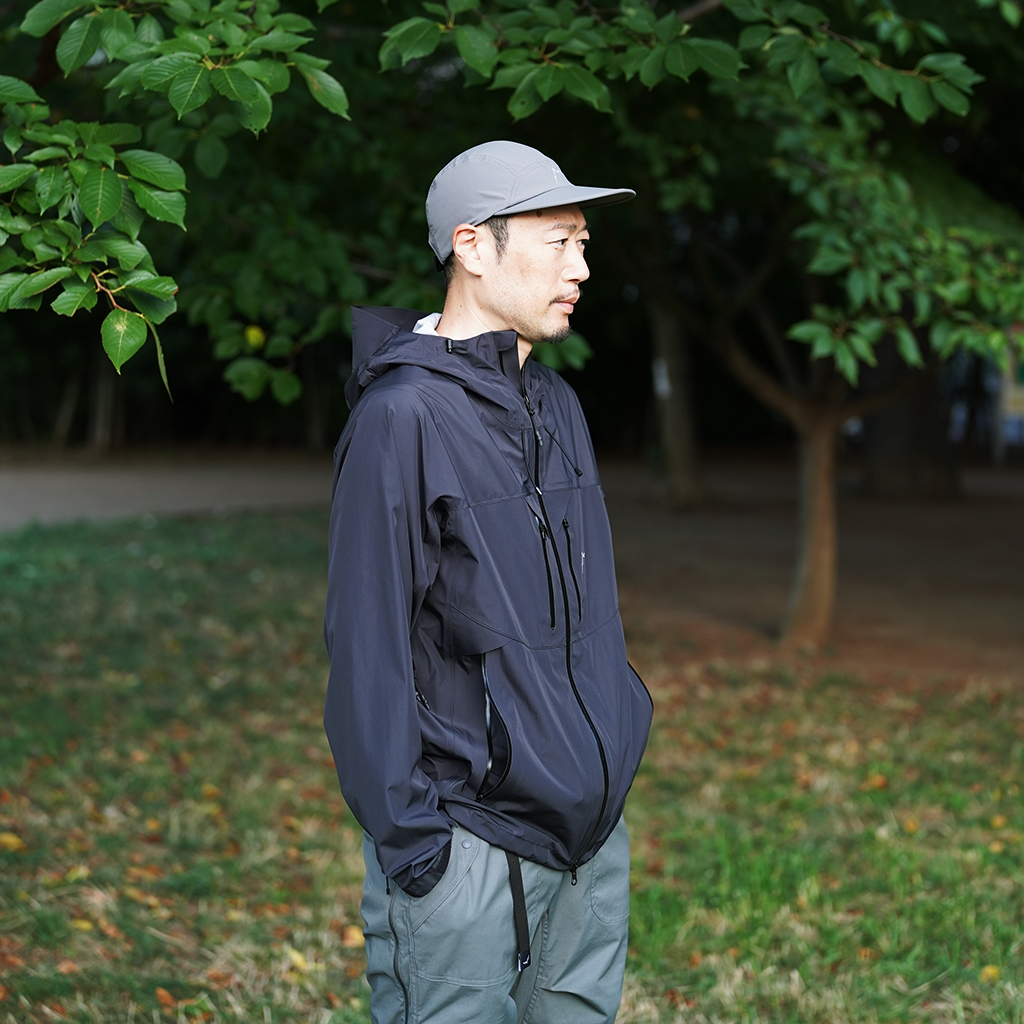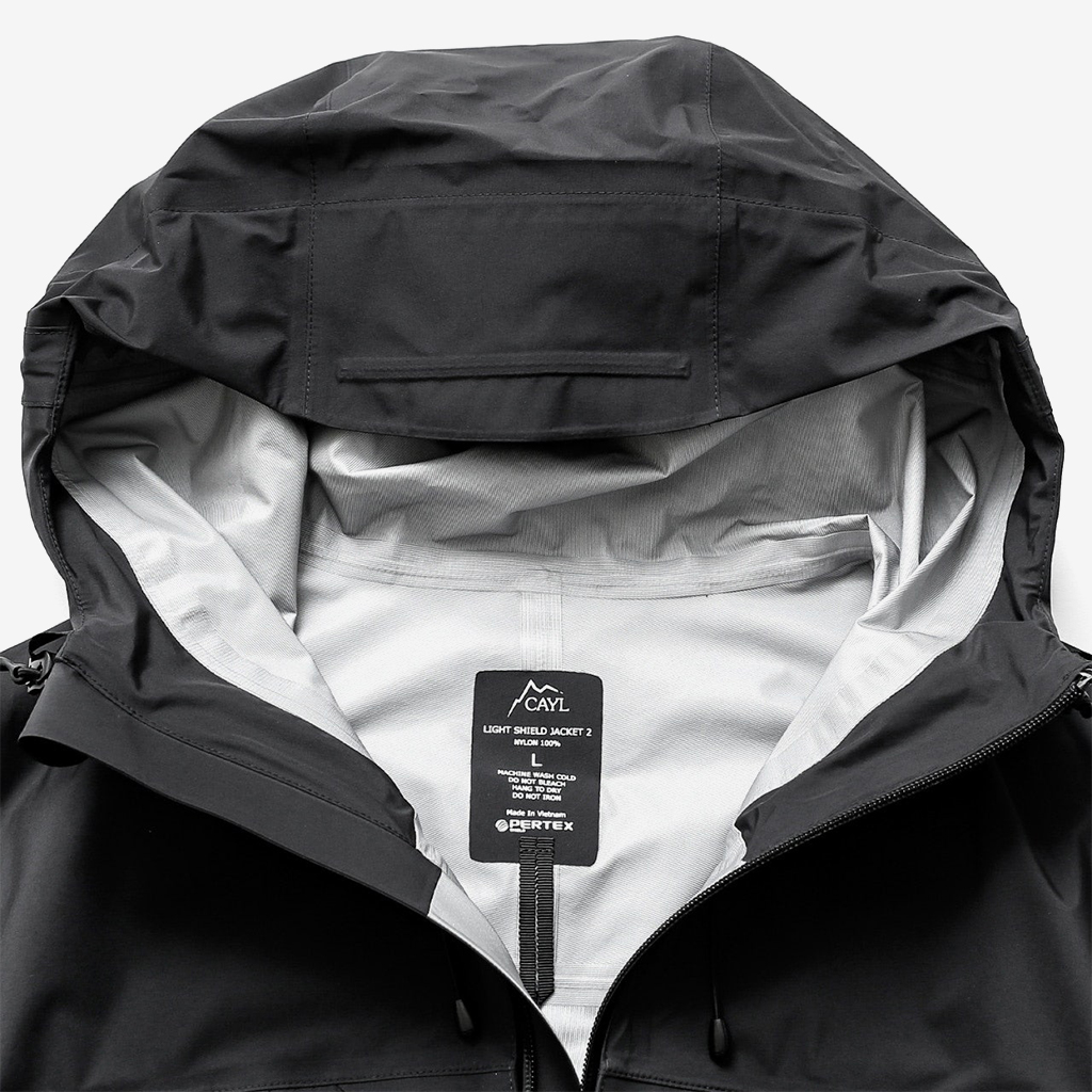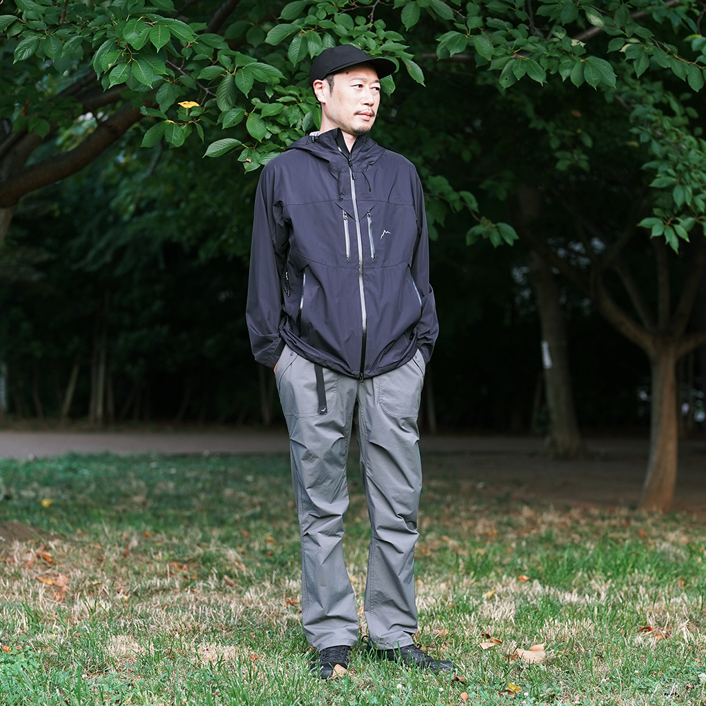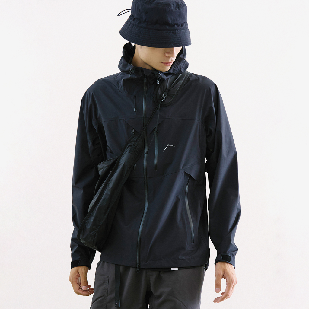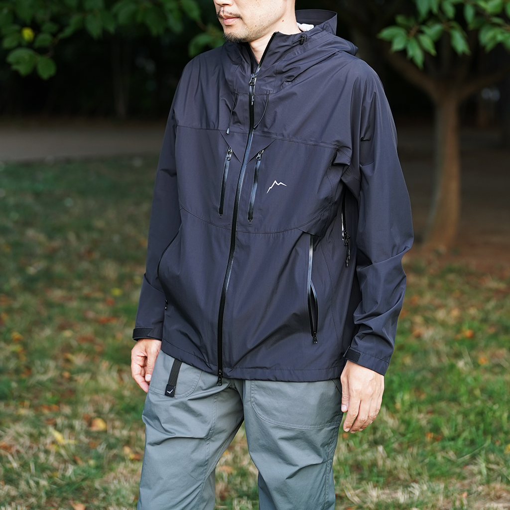 CAYL『Light Shield Jacket 2』は、Pertex Shield 40D Nylon 3Layerを生地に採用したレインジャケット。 肌に触れる面は、7Dトリコート接着で肌触りが非常に柔らかく、3Layerのコーティングを薄くすることができるので、ストレスフリーな着心地です。 20,000 mmの耐水圧、20,000 g/m2/24hの透湿性を誇り、大雨でも安心のスペック。フロント両サイドと胸元に計4つのジッパーポケットを備えます。 両脇の下にはダブルジッパー式のベンチレーション、さらにフロントセンターもダブルジッパーなので、行動中に素早く換気できます。 フード部とウエスト部はストリングで絞れるようになっていて、手首はベルクロで調整できます。 アクティビティに適した十分なスペック、使い勝手を追求しながらも、タウンユースにも馴染むデザイン性に優れた、CAYLらしいレインジャケットです。 フード部もストリングで簡単に調整できます。 ウエスト部はストリングで絞れるようになっています。 手首はベルクロで調整可能。 モデル:184cm/Lサイズ