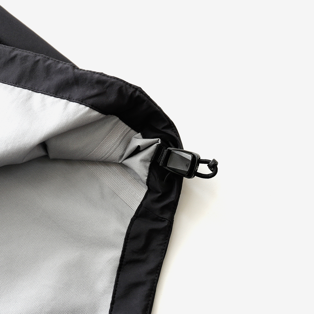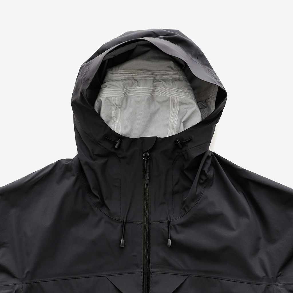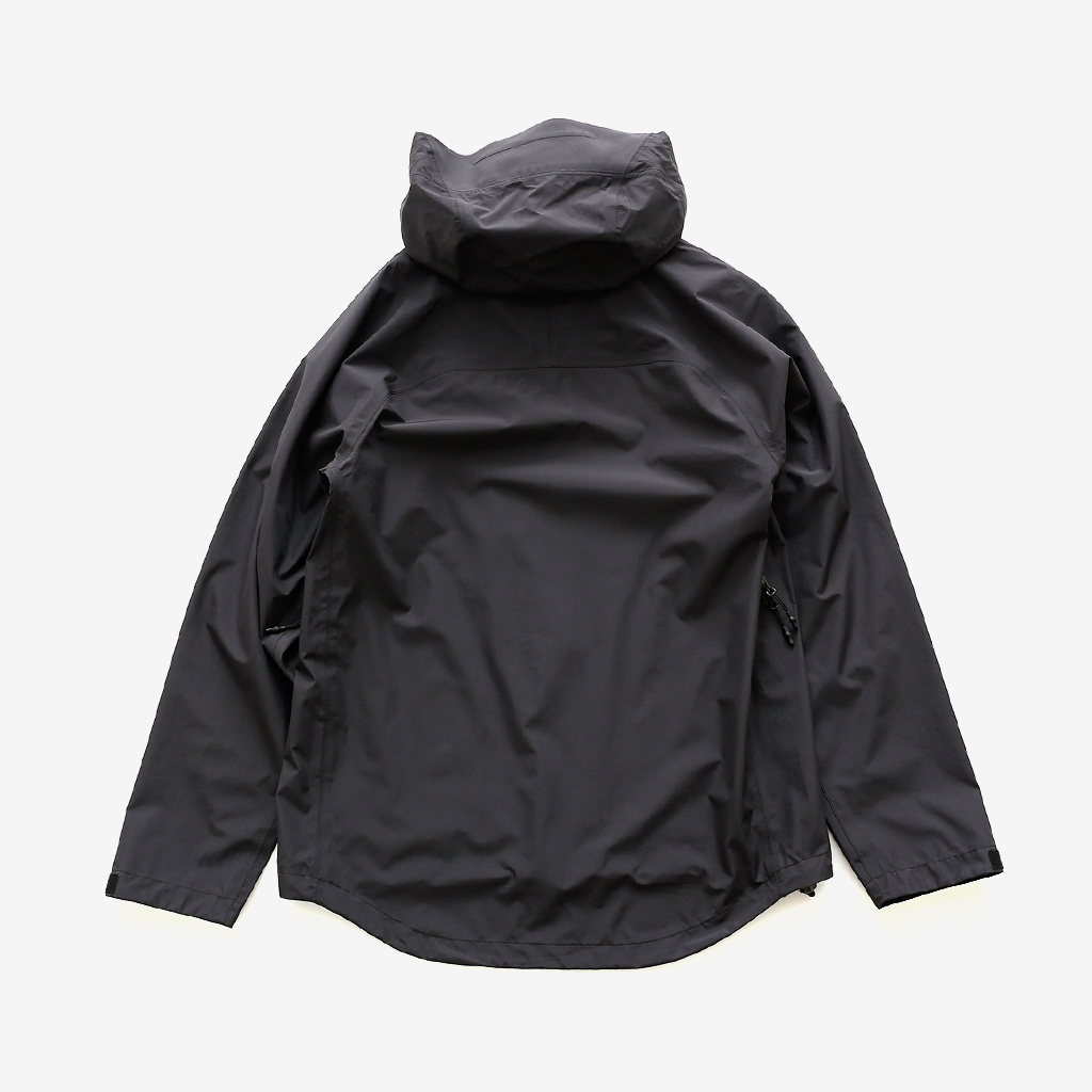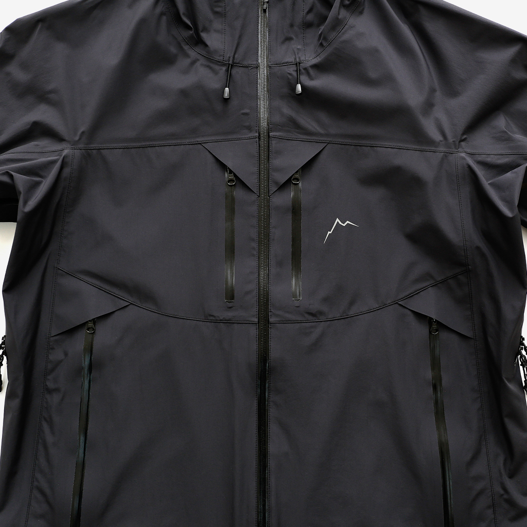 CAYL『Light Shield Jacket 2』は、Pertex Shield 40D Nylon 3Layerを生地に採用したレインジャケット。 肌に触れる面は、7Dトリコート接着で肌触りが非常に柔らかく、3Layerのコーティングを薄くすることができるので、ストレスフリーな着心地です。 20,000 mmの耐水圧、20,000 g/m2/24hの透湿性を誇り、大雨でも安心のスペック。フロント両サイドと胸元に計4つのジッパーポケットを備えます。 両脇の下にはダブルジッパー式のベンチレーション、さらにフロントセンターもダブルジッパーなので、行動中に素早く換気できます。 フード部とウエスト部はストリングで絞れるようになっていて、手首はベルクロで調整できます。 アクティビティに適した十分なスペック、使い勝手を追求しながらも、タウンユースにも馴染むデザイン性に優れた、CAYLらしいレインジャケットです。 フード部もストリングで簡単に調整できます。 ウエスト部はストリングで絞れるようになっています。 手首はベルクロで調整可能。 モデル:184cm/Lサイズ