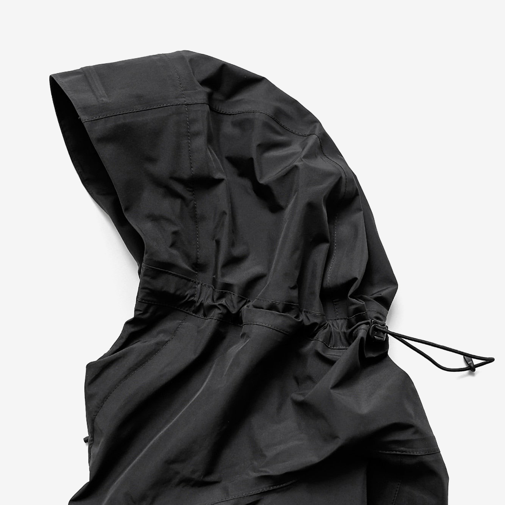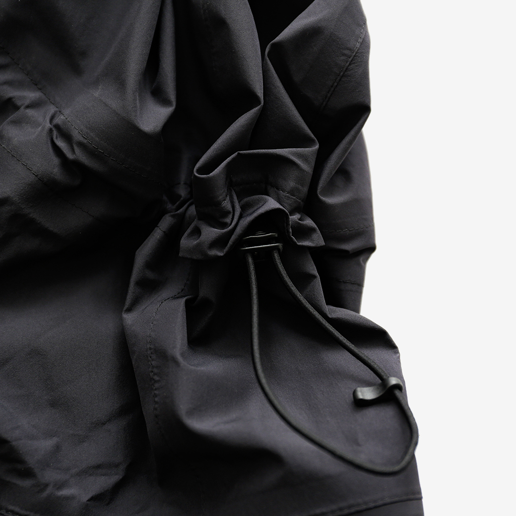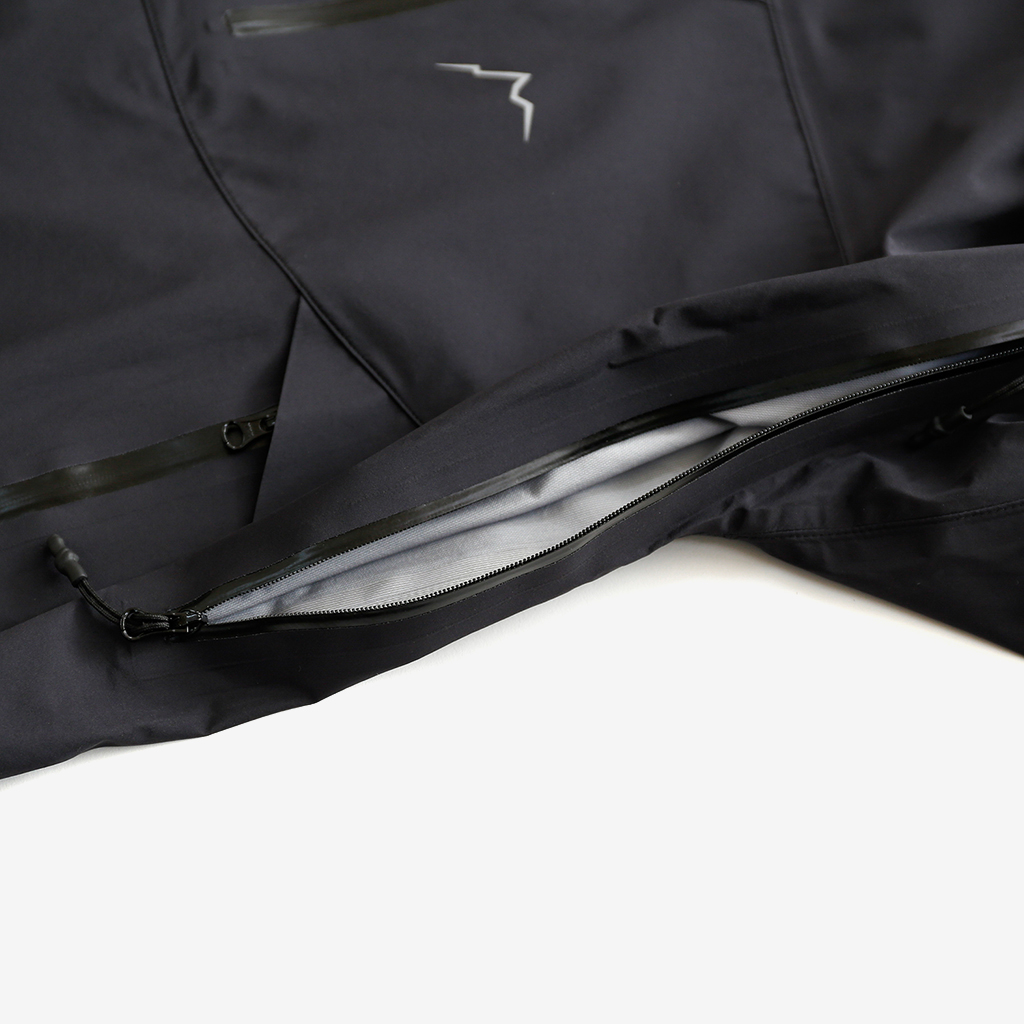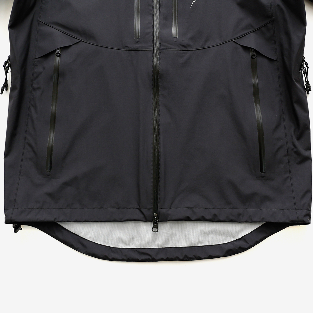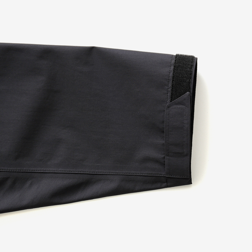 CAYL『Light Shield Jacket 2』は、Pertex Shield 40D Nylon 3Layerを生地に採用したレインジャケット。 肌に触れる面は、7Dトリコート接着で肌触りが非常に柔らかく、3Layerのコーティングを薄くすることができるので、ストレスフリーな着心地です。 20,000 mmの耐水圧、20,000 g/m2/24hの透湿性を誇り、大雨でも安心のスペック。フロント両サイドと胸元に計4つのジッパーポケットを備えます。 両脇の下にはダブルジッパー式のベンチレーション、さらにフロントセンターもダブルジッパーなので、行動中に素早く換気できます。 フード部とウエスト部はストリングで絞れるようになっていて、手首はベルクロで調整できます。 アクティビティに適した十分なスペック、使い勝手を追求しながらも、タウンユースにも馴染むデザイン性に優れた、CAYLらしいレインジャケットです。 フード部もストリングで簡単に調整できます。 ウエスト部はストリングで絞れるようになっています。 手首はベルクロで調整可能。 モデル:184cm/Lサイズ