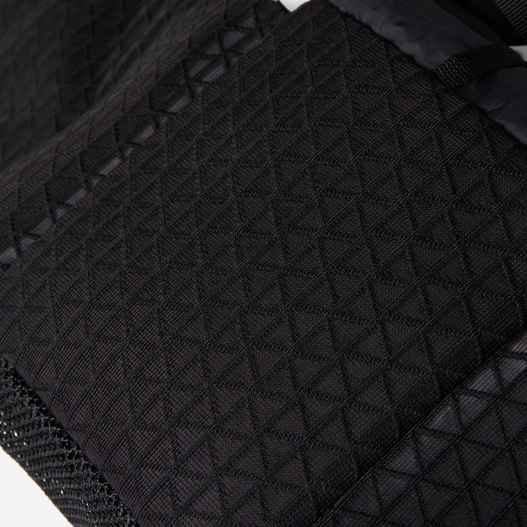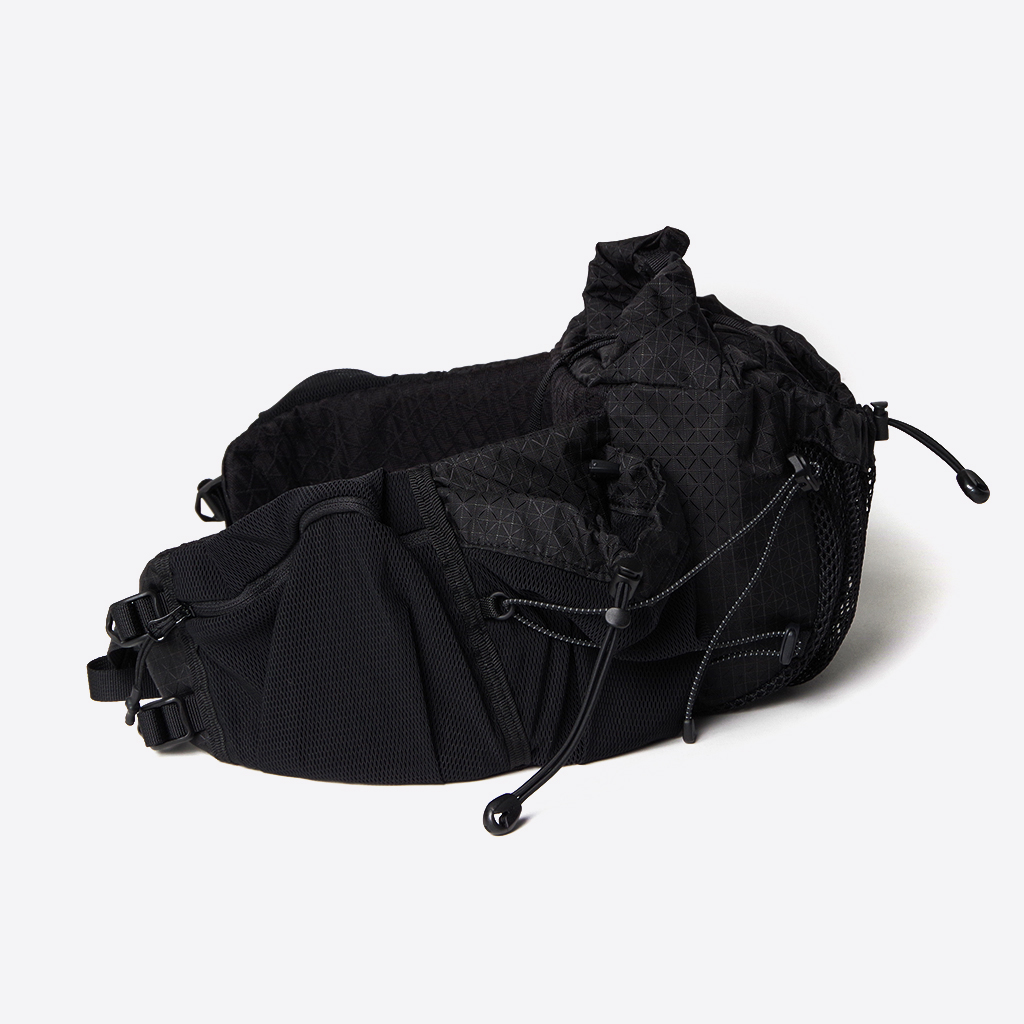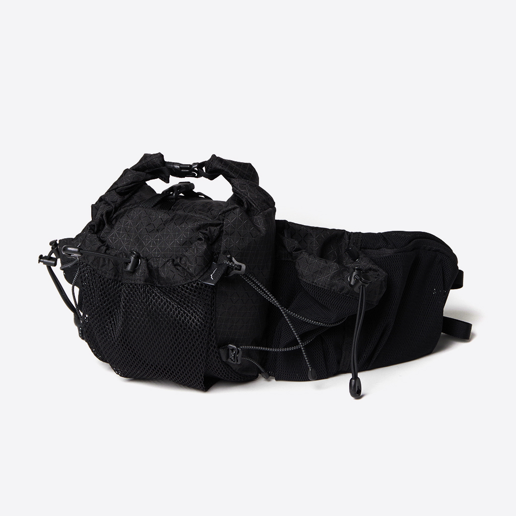 CAYLの新作『Fanny Pack』は、軽いランニングやハイキング、自転車ライドに快適なウエストパックです。 ロールトップタイプのメインスペース、外側にメッシュポケット。2か所のドリンクボトルポケット、2つのファスナーポケットを備えます。 ドリンクボトルポケットは、2か所をコードで固定することで脱落を防止、また、ストリングを引いてテンションをかけることで、ボトルが身体側に近寄り、揺れにくくなります。 身体に触れる内側は通気性の高いパッドを採用し、快適性を確保しています。 リフレクター効果のあるストリングを使っているため、夜間の車からの視認性もあります。 容量はおよそ5L。身軽なアクティビティのお供にオススメです。 ※ドリンクボトルが重すぎると、ランニング時に揺れてしまうことがありますので、ご自身で調整しながらご活用ください。 カラー:Black カラー:Grey カラー:Beige 身体に触れる内側は通気性の高いパッドを採用しており快適。 写真はX-Pacモデル このリフレクターストリングを引いてテンションをかけることで、メインスペースとボトルポケットが身体側に引き寄せられ、揺れにくくなります。 軽めのランニングやハイキング、自転車ライドにおすすめ。