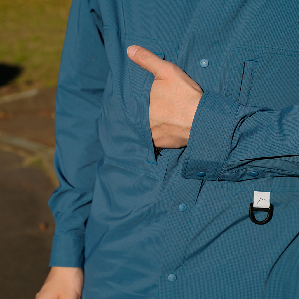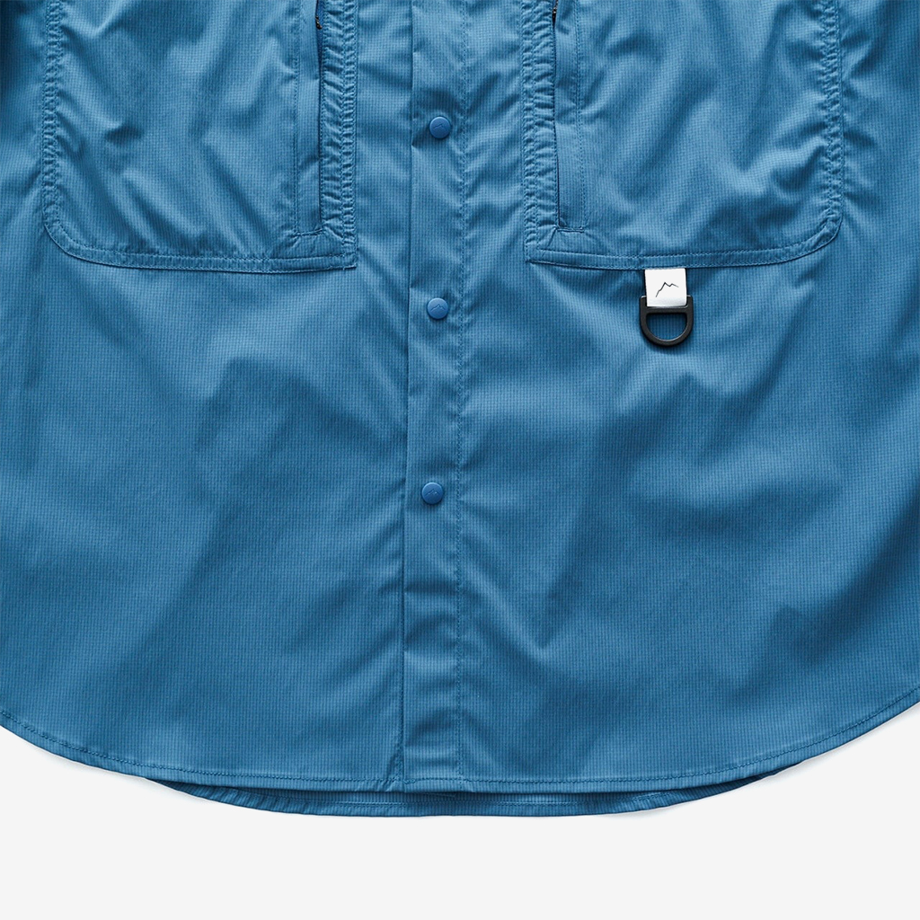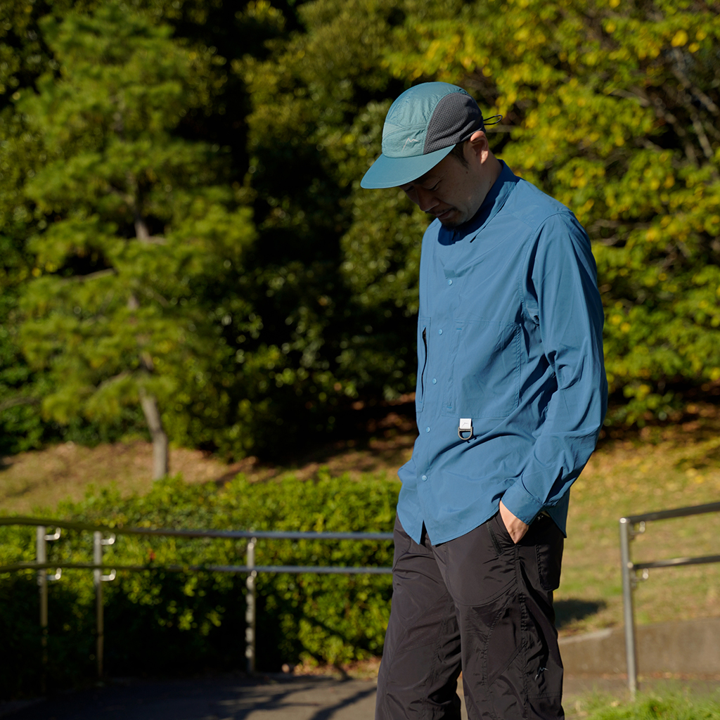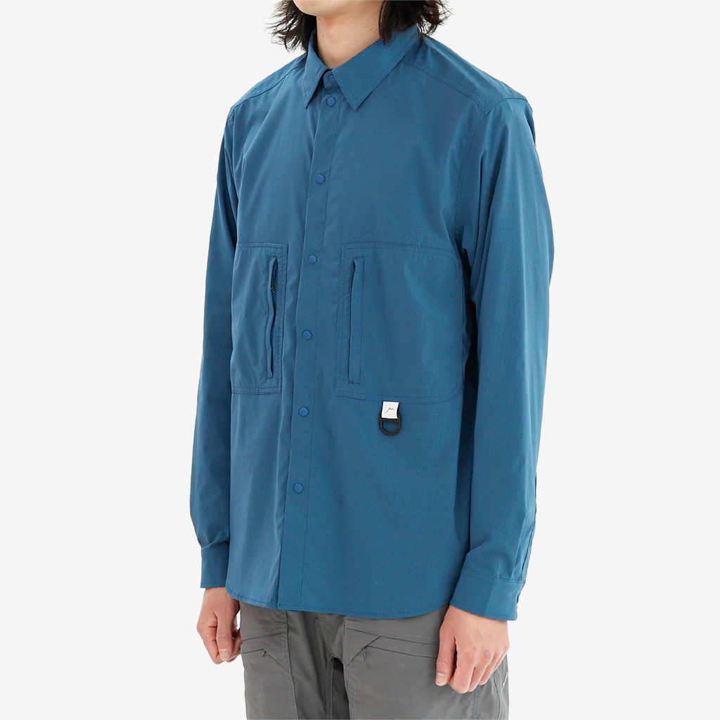 CAYL『Stretch Nylon Hiker Shirts』は、ストレッチの効いたスナップボタンタイプのシャツ。 薄手ながら撥水コーティングが施され、バックパックを背負っても干渉しづらいように、両胸にジッパー付きポケットを備えます。 軽量でコンパクトになるので荷物の負担にならず、幅広いシーンで活躍します。ハイキングはもちろん、自転車や旅にも◎ インナーやアウターとのレイヤリングで、1年を通して活躍するCAYLの定番シャツです。 ※襟元内側のタグのカラーは、ロットにより異なる場合があります。 すべてスナップボタンなので、通常の縫い付けボタンの様な糸切れによるボタン紛失の心配がありません。 バックパックを背負ってもショルダーハーネスと干渉しないよう、内側にジッパーが配置されています。 Dリングには、小さなポーチやタオルを取り付けるのも便利。 ハンガーがない時にはフックに吊り下げるのに使ってもOK。 ボタンにさりげなくCAYLのロゴが刻印されています。 モデル:184cm/Lサイズ モデル:182cm/XLサイズ