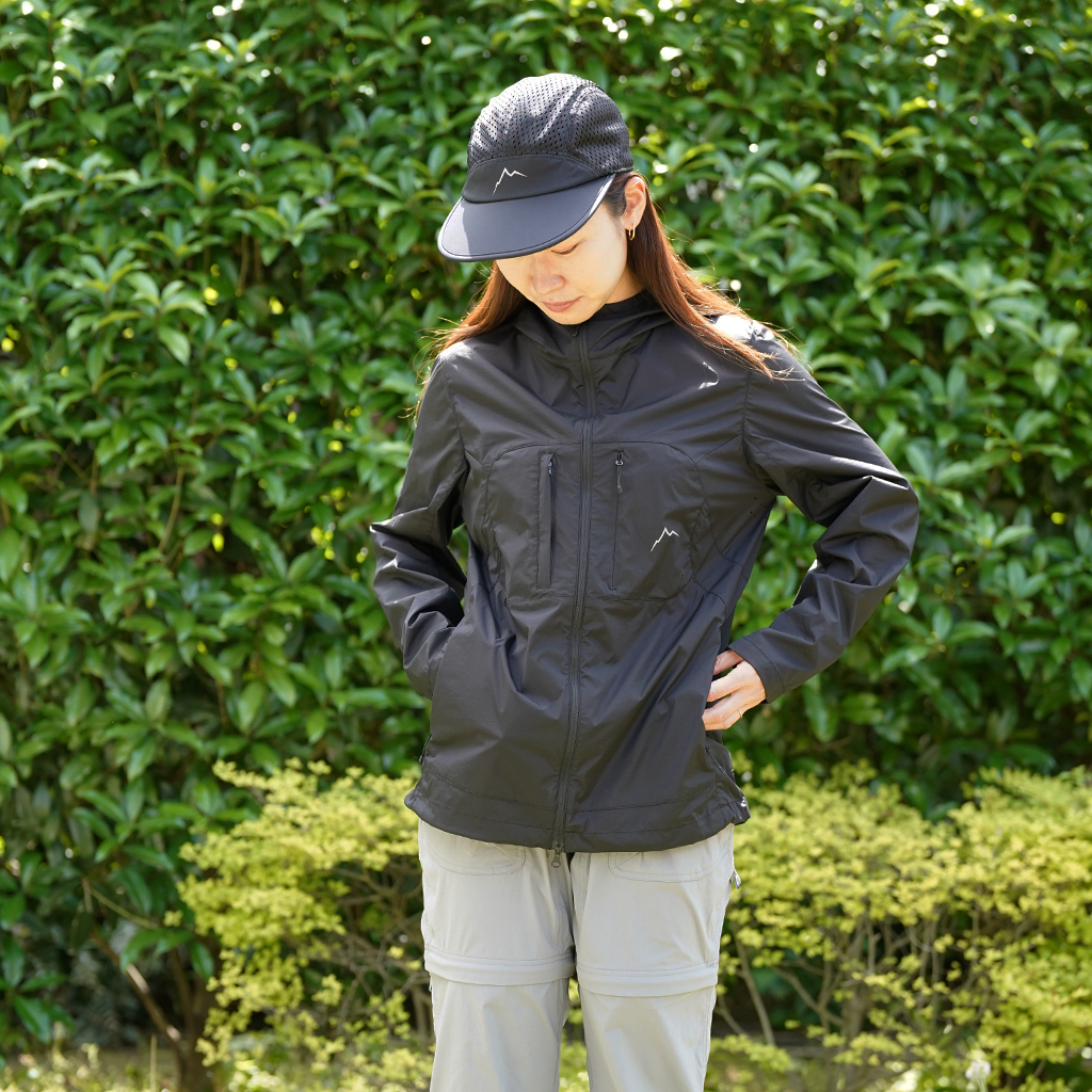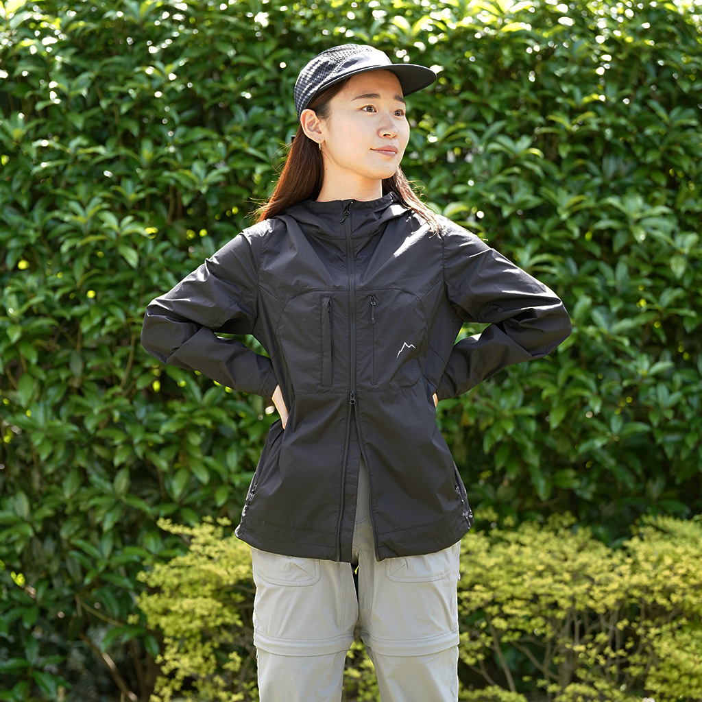 CAYL『Light Stretch Jacket WM』は、CAYLのラインナップの中では貴重なWomensモデル。 通気性の良いストレッチナイロンに、防風透湿コーティングを施した生地で作られたシャープなシルエットのウインドジャケットです。 さらに通気性を高めるために、脇下部分ににレーザーホール加工を施しています。 手首部分はストレッチメッシュパネルを採用し、快適なフィット感。 フロントはダブルジッパー、裾とフードはコードで調整でき、左胸のCAYLロゴはリフレクター素材で、夜間に行動する際の視認性も十分。安全に活動できます。 とても軽量で、防風、撥水性があり、速乾性、ストレッチ性が高く、ハイクやラン、自転車など、アクティブなシーンに最適。 モデル:158cm/Mサイズ モデル:158cm/Mサイズ