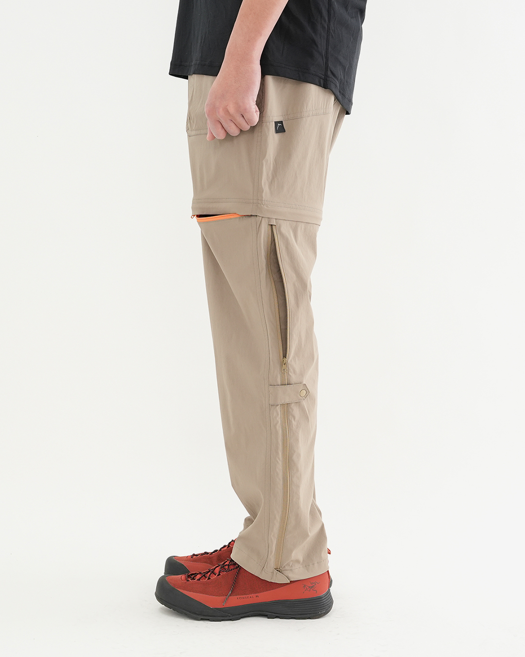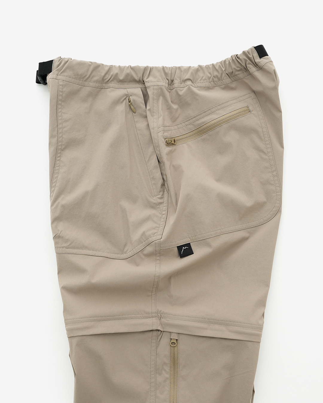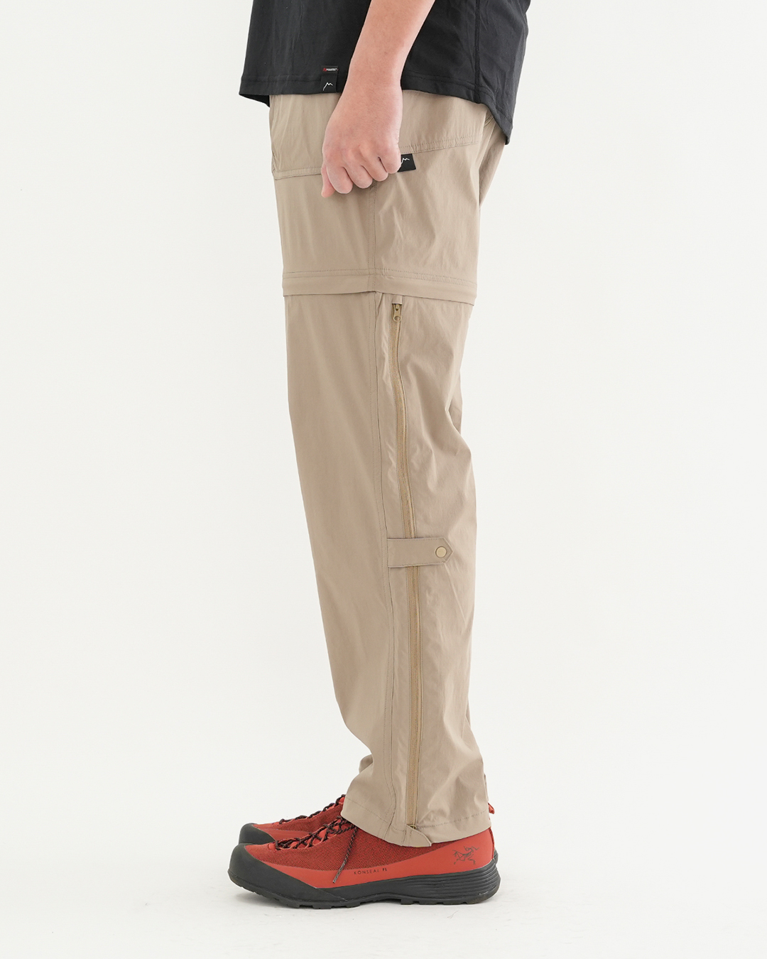 CAYL『2way Hiking Pants』は、ストレッチ性、速乾性に優れるナイロンを採用した2wayで履けるハイキングパンツ。 コンバーチブルジッパーで切り離せば、ショートパンツとしても使えます。 また、サイドジッパーと組み合わせて、多彩なベンチレーションが可能で、換気をしてオーバーヒートを防いだり、さまざまなシルエット、スタイリングも楽しめます。 サイドジッパーを開放してもはだけないよう、膝の外側付近にスナップボタンも備えています。 絶妙な生地厚のナイロンは、汗をかいても足に張り付きにくいサラッとしたしなやかな肌触りで、速乾性にも優れています。撥水コーティングのおかげで軽い雨でも安心です。 ウエストはゴムとウェビングベルトで直感的に絞り具合を調整可能。腰上で留めてアクティブに動いたり、食事などリラックスしたい時は緩めたり。 裾もストリングコードで絞れるので、ランや自転車、シューズやサンダルなどによって、丈感やシルエットも変えられます。 ハイク、クライミング、ラン、自転車、ファッションなど多彩に楽しむCAYLらしい、マルチなロングパンツです。 ※生地を挟まないようジッパーはゆっくりと動かしてください。 フロントポケットはダブルポケットで、片方はジッパータイプ。 切り離した時に左右を間違えないよう、異なるジッパーカラーを採用しています。 裾はストリングコードで絞れるので、シューズやサンダルなどによって、丈感やシルエットも変えられます。 モデル:184cm / Lサイズ ショートパンツとしてはもちろん、ロングパンツのままでも多彩なベンチレーションが可能で、換気をしてオーバーヒートを防いだり、さまざまなシルエット、スタイリングも楽しめます。