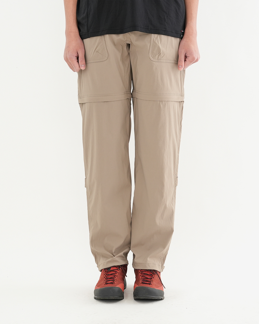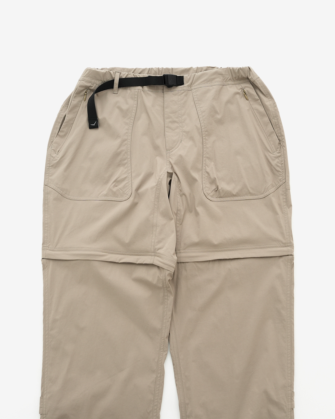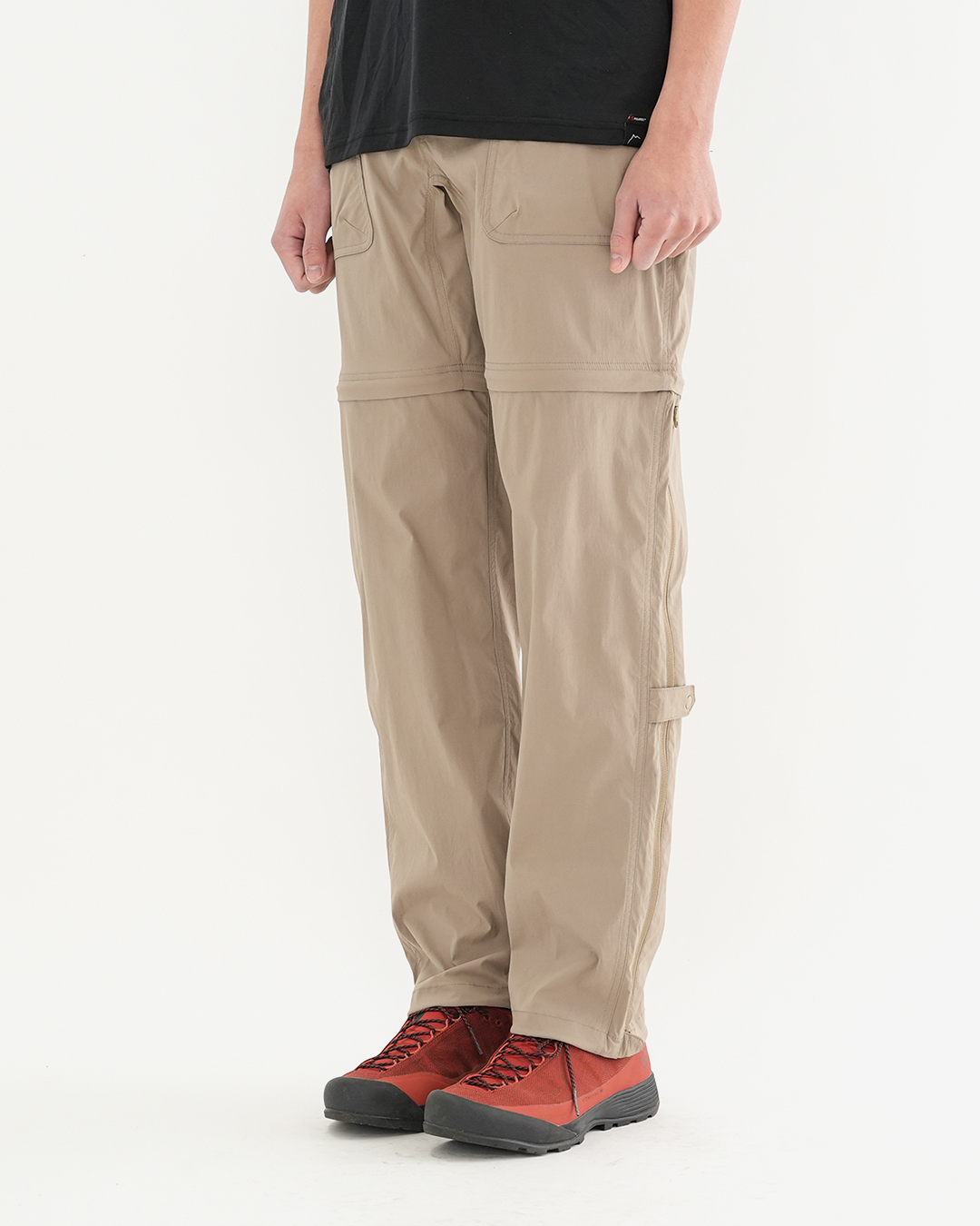CAYL『2way Hiking Pants』は、ストレッチ性、速乾性に優れるナイロンを採用した2wayで履けるハイキングパンツ。 コンバーチブルジッパーで切り離せば、ショートパンツとしても使えます。 また、サイドジッパーと組み合わせて、多彩なベンチレーションが可能で、換気をしてオーバーヒートを防いだり、さまざまなシルエット、スタイリングも楽しめます。 サイドジッパーを開放してもはだけないよう、膝の外側付近にスナップボタンも備えています。 絶妙な生地厚のナイロンは、汗をかいても足に張り付きにくいサラッとしたしなやかな肌触りで、速乾性にも優れています。撥水コーティングのおかげで軽い雨でも安心です。 ウエストはゴムとウェビングベルトで直感的に絞り具合を調整可能。腰上で留めてアクティブに動いたり、食事などリラックスしたい時は緩めたり。 裾もストリングコードで絞れるので、ランや自転車、シューズやサンダルなどによって、丈感やシルエットも変えられます。 ハイク、クライミング、ラン、自転車、ファッションなど多彩に楽しむCAYLらしい、マルチなロングパンツです。 ※生地を挟まないようジッパーはゆっくりと動かしてください。 フロントポケットはダブルポケットで、片方はジッパータイプ。 切り離した時に左右を間違えないよう、異なるジッパーカラーを採用しています。 裾はストリングコードで絞れるので、シューズやサンダルなどによって、丈感やシルエットも変えられます。 モデル:184cm / Lサイズ ショートパンツとしてはもちろん、ロングパンツのままでも多彩なベンチレーションが可能で、換気をしてオーバーヒートを防いだり、さまざまなシルエット、スタイリングも楽しめます。