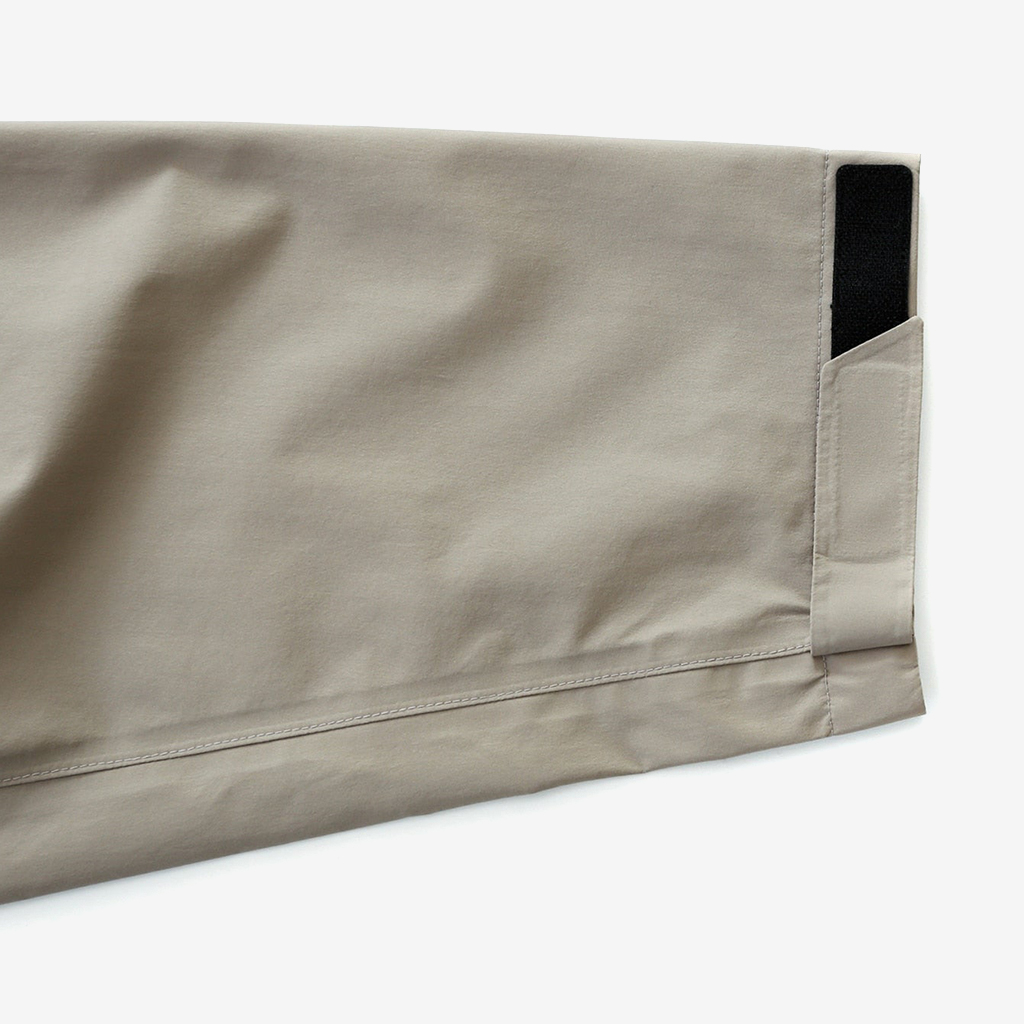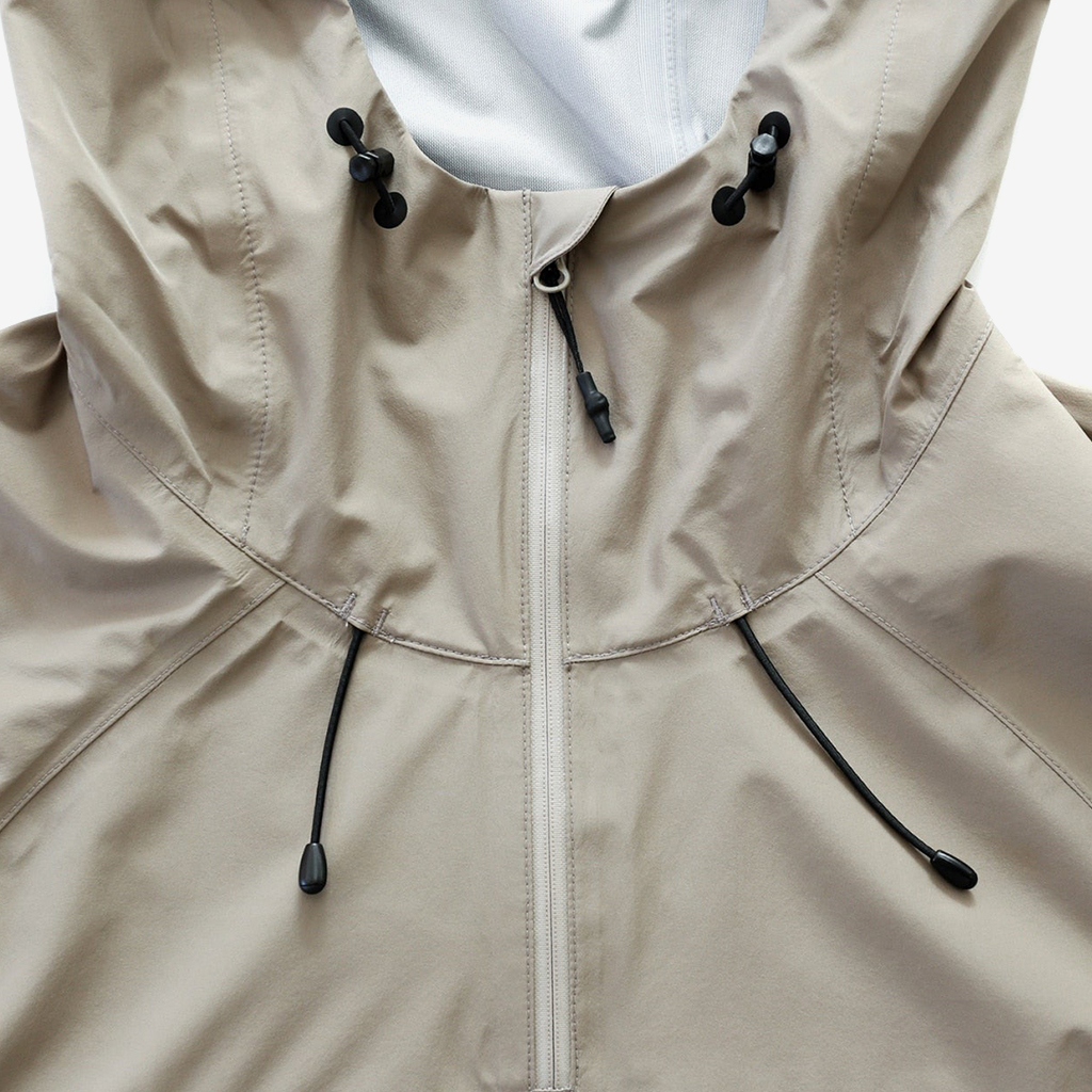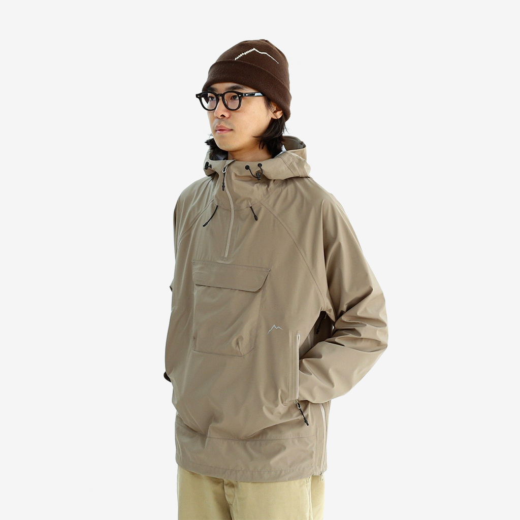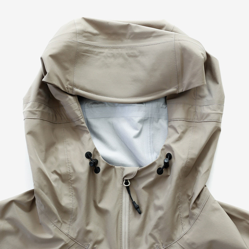CAYL『Light Shield Anorak 2』は、Pertex Shield Nylon 3Layerを生地に採用したレインジャケット。 肌に触れる面は、7Dトリコート接着で肌触りが非常に柔らかく、3Layerのコーティングを薄くすることができるので、とてもしなやかでストレスフリーな着心地です。 20,000 mmの耐水圧、20,000 g/m2/24hの透湿性を誇り、大雨でも安心のスペック。 フロント両サイドにはジッパーポケット、正面にはフラップ式の大型ポケットを配置。 両脇の下にはダブルジッパー式のベンチレーションがあり、行動中に素早く換気できます。また左脇側は下までオープンジッパーで大きく開けられるので、プルオーバーながら脱ぎ着はスムーズ。 フード部とウエスト部はストリングで絞れるようになっていて、手首はベルクロで調整できます。 アクティビティに適した十分なスペック、使い勝手を追求しながらも、タウンユースにも馴染むデザイン性に優れた、幅広いシチュエーションに適した汎用性の高いレインジャケットです。 フード部もストリングで簡単に調整できます。 フロントの大型フラップポケット。グローブをしたままでも簡単に開け閉めできます。 右脇下のダブルジッパー式のベンチレーション。 左脇側は下までオープンジッパーで大きく開けられるので、プルオーバーながら脱ぎ着は簡単。クイックに換気もできます。 裾もストリングで簡単に調整できます。 袖の調整はベルクロタイプ。 モデル:184cm / Lサイズ