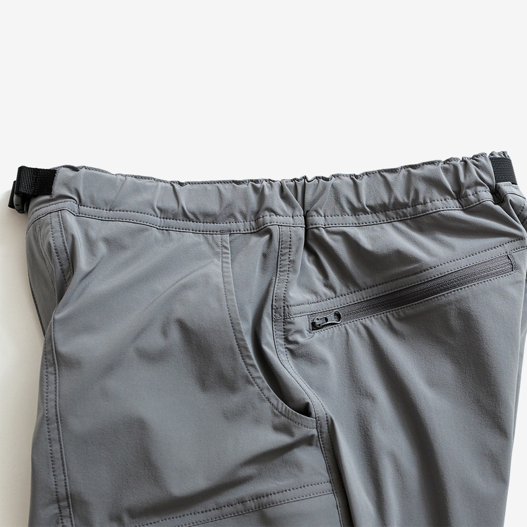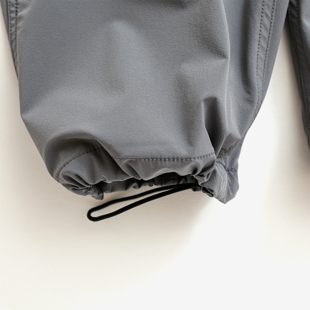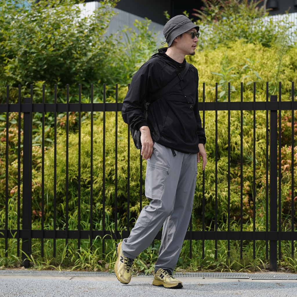 CAYLの『Stretch Shell Pants』は、通気性の良いナイロンスパン生地で、ストレッチの効いたハイキングパンツ。 合計6つのポケットを備え、撥水コーティングのおかげで軽い雨でも安心。 ウエストには弾性バンドとウェビング、特徴的なカッティングと、ややゆったりしたシルエットで、快適な履き心地。裾もストリングコードで絞ることができます。 街でも山でも、天候を問わずに使いやすいロングパンツです。 背面。 座っても干渉しにくいサイドポケットはジッパー式。 裾はストリングコードで調整できます。 モデル:182cm/Lサイズ