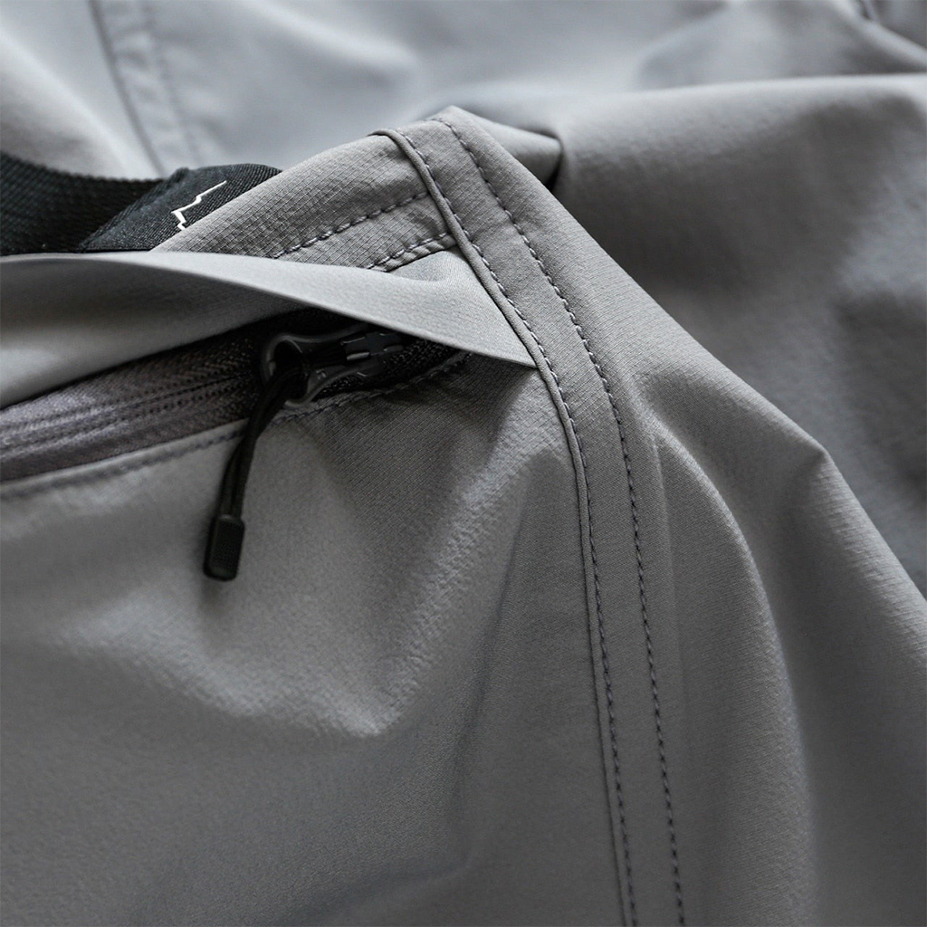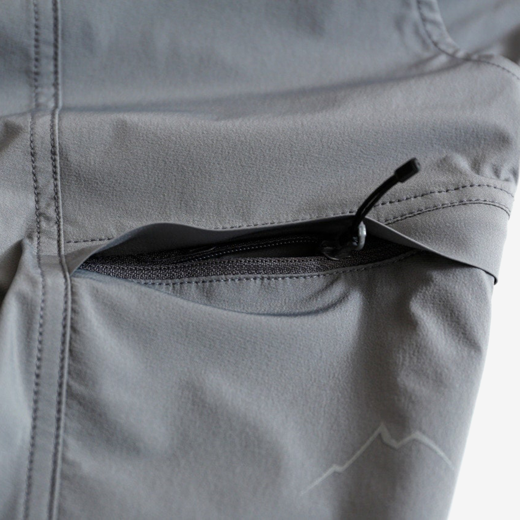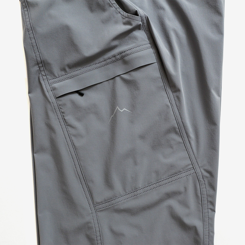 CAYLの『Stretch Shell Pants』は、通気性の良いナイロンスパン生地で、ストレッチの効いたハイキングパンツ。 合計6つのポケットを備え、撥水コーティングのおかげで軽い雨でも安心。 ウエストには弾性バンドとウェビング、特徴的なカッティングと、ややゆったりしたシルエットで、快適な履き心地。裾もストリングコードで絞ることができます。 街でも山でも、天候を問わずに使いやすいロングパンツです。 背面。 座っても干渉しにくいサイドポケットはジッパー式。 裾はストリングコードで調整できます。 モデル:182cm/Lサイズ
