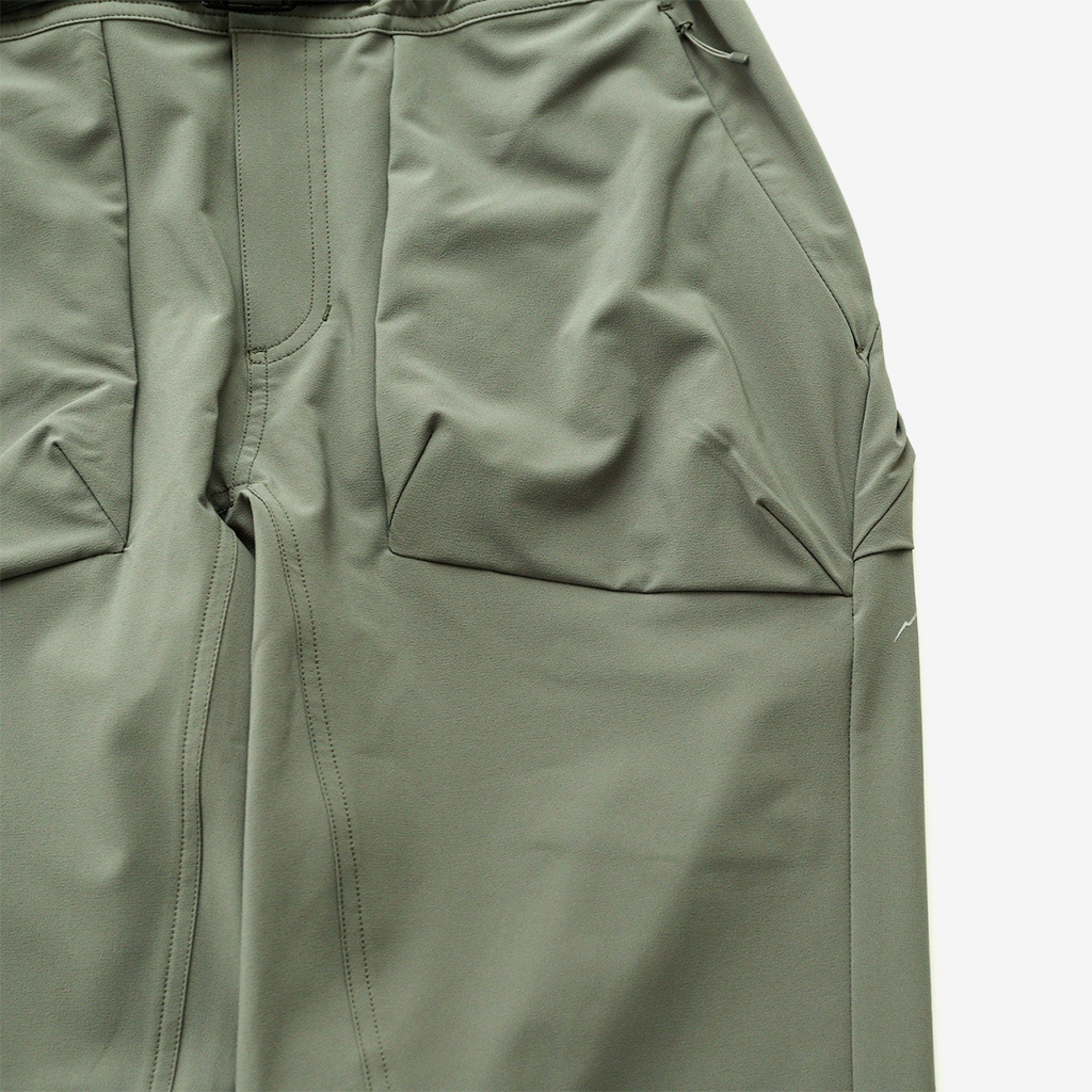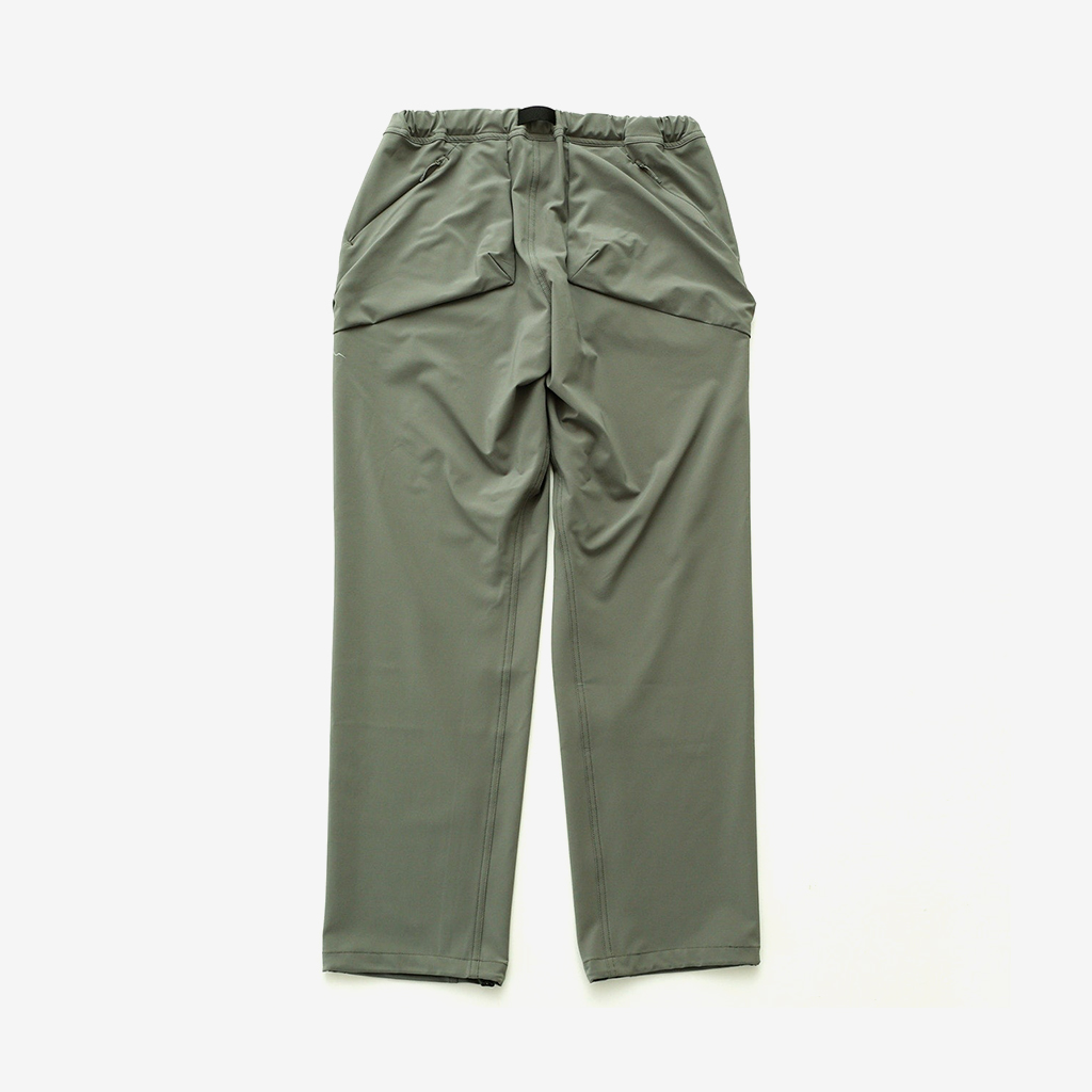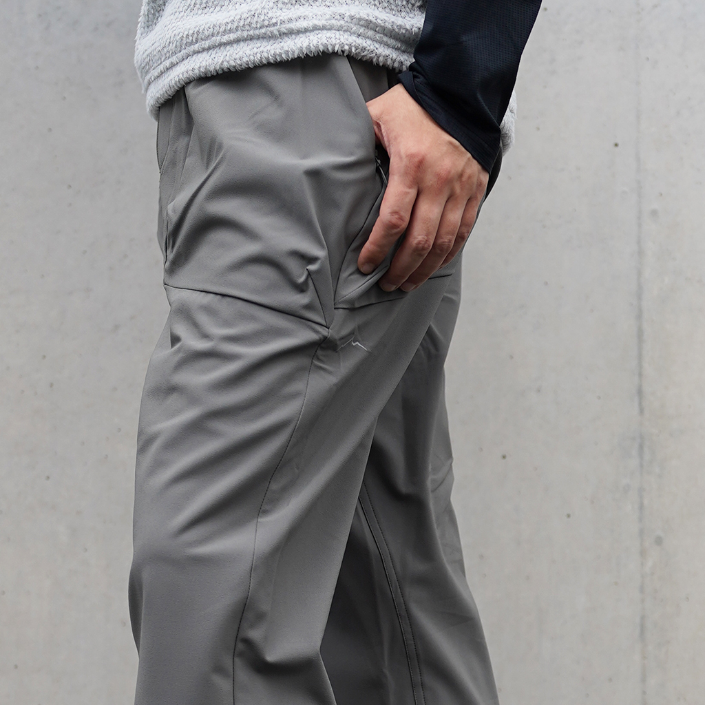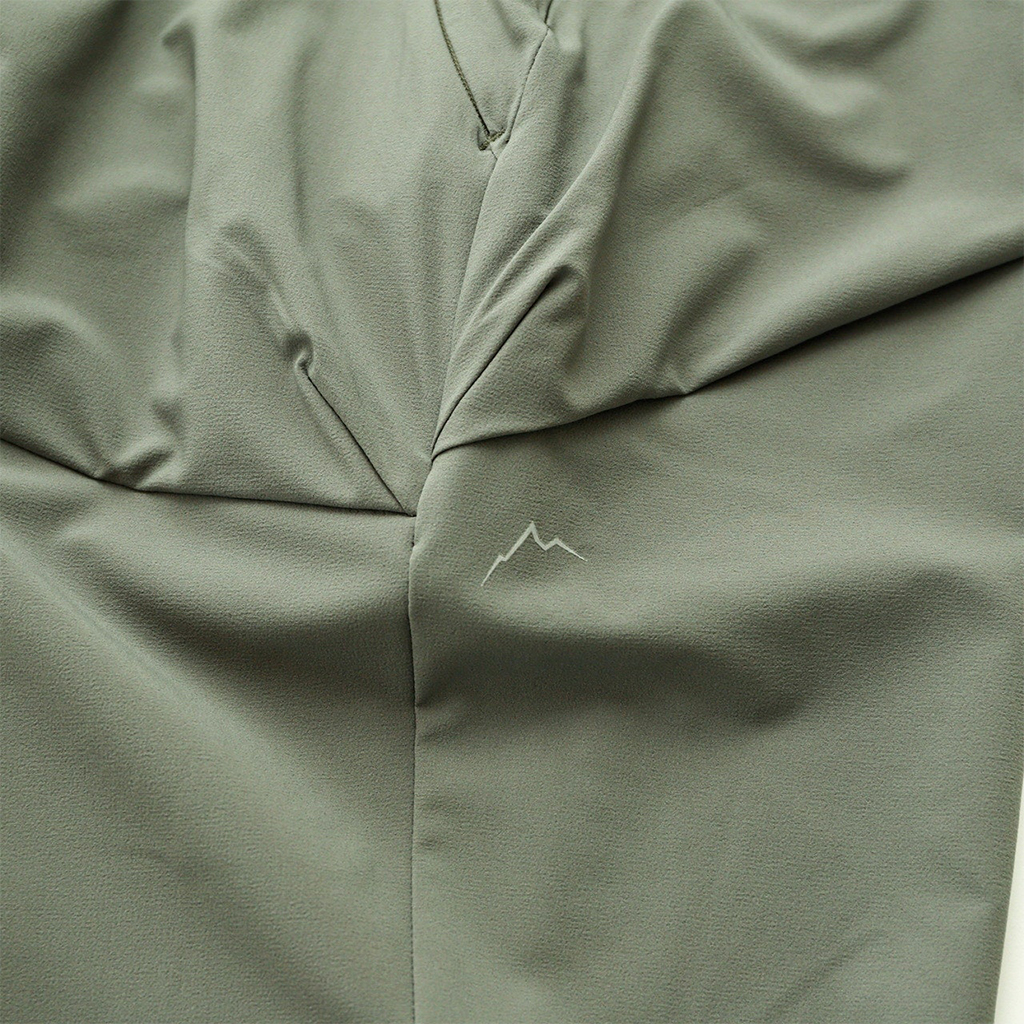 CAYL『Bulky Pocket Pants』は、前後4箇所に備わるふんわりと膨らんだジッパーポケットが特徴的なロングパンツ。 ヒップまわり、太ももまわりはややゆったりと仕上げ、裾にかけてテーパードしたシルエットは、リラックス感のある快適な履き心地。 メイン素材には、ストレッチ性、通気性、速乾性に富んだAero-Cool素材を採用し、撥水コーティングも施されています。 ウエストには弾性バンドとウェビング、裾もストリングコードで絞ることができます。 街でも山でもスタイリングしやすい、CAYLらしいリラックスシルエットのロングパンツです。 背面。 サイド。 裾はストリングコードで調整できます。 モデル:182cm/Lサイズ
