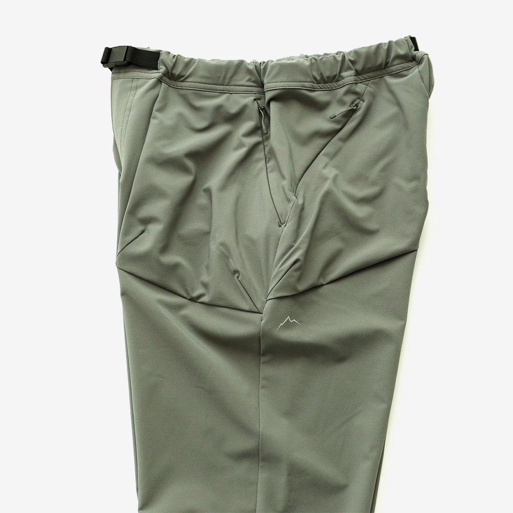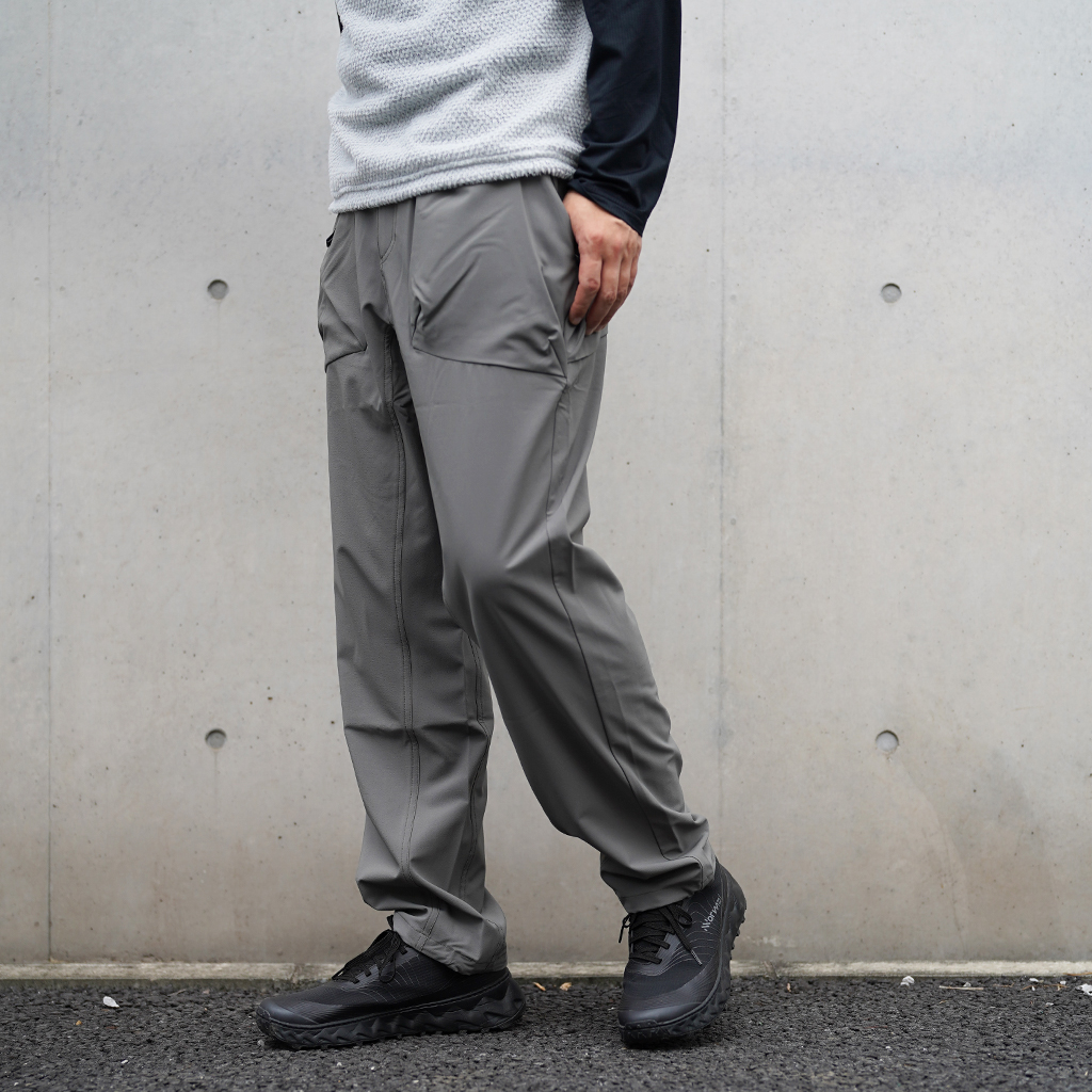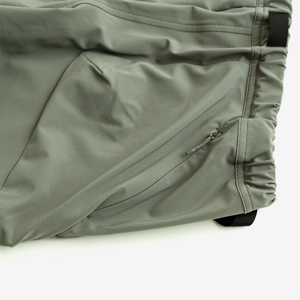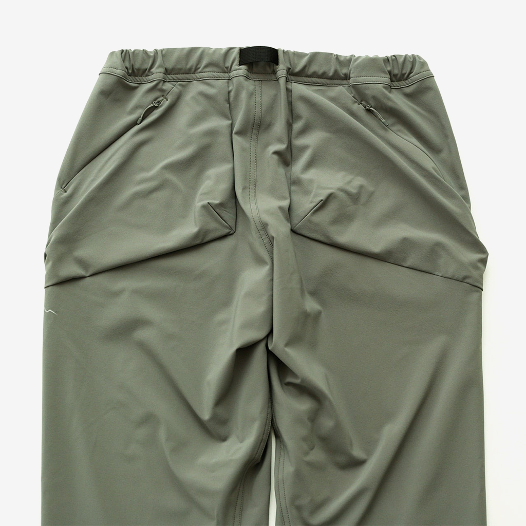 CAYL『Bulky Pocket Pants』は、前後4箇所に備わるふんわりと膨らんだジッパーポケットが特徴的なロングパンツ。 ヒップまわり、太ももまわりはややゆったりと仕上げ、裾にかけてテーパードしたシルエットは、リラックス感のある快適な履き心地。 メイン素材には、ストレッチ性、通気性、速乾性に富んだAero-Cool素材を採用し、撥水コーティングも施されています。 ウエストには弾性バンドとウェビング、裾もストリングコードで絞ることができます。 街でも山でもスタイリングしやすい、CAYLらしいリラックスシルエットのロングパンツです。 背面。 サイド。 裾はストリングコードで調整できます。 モデル:182cm/Lサイズ