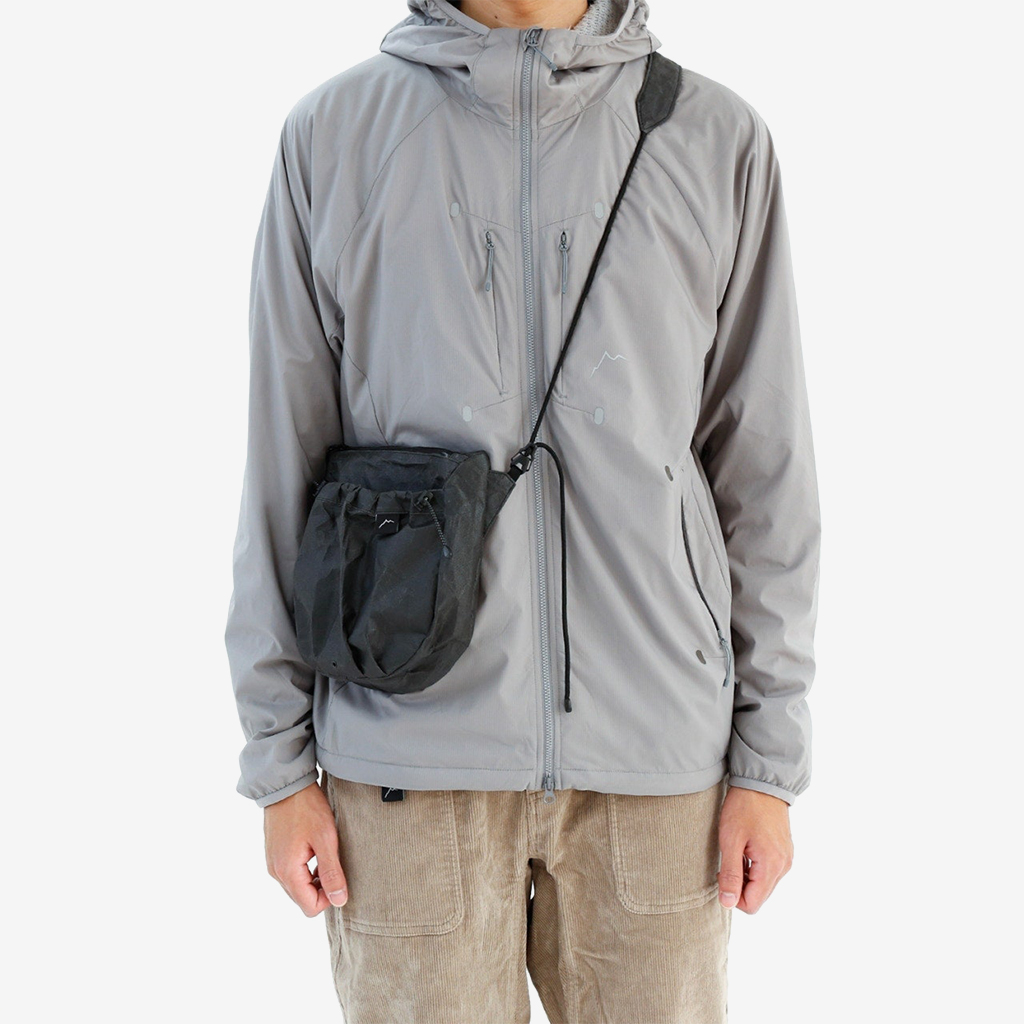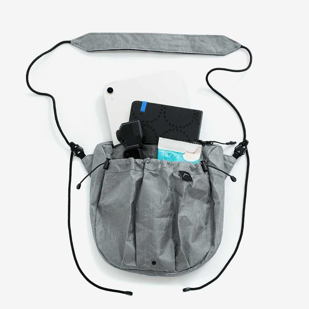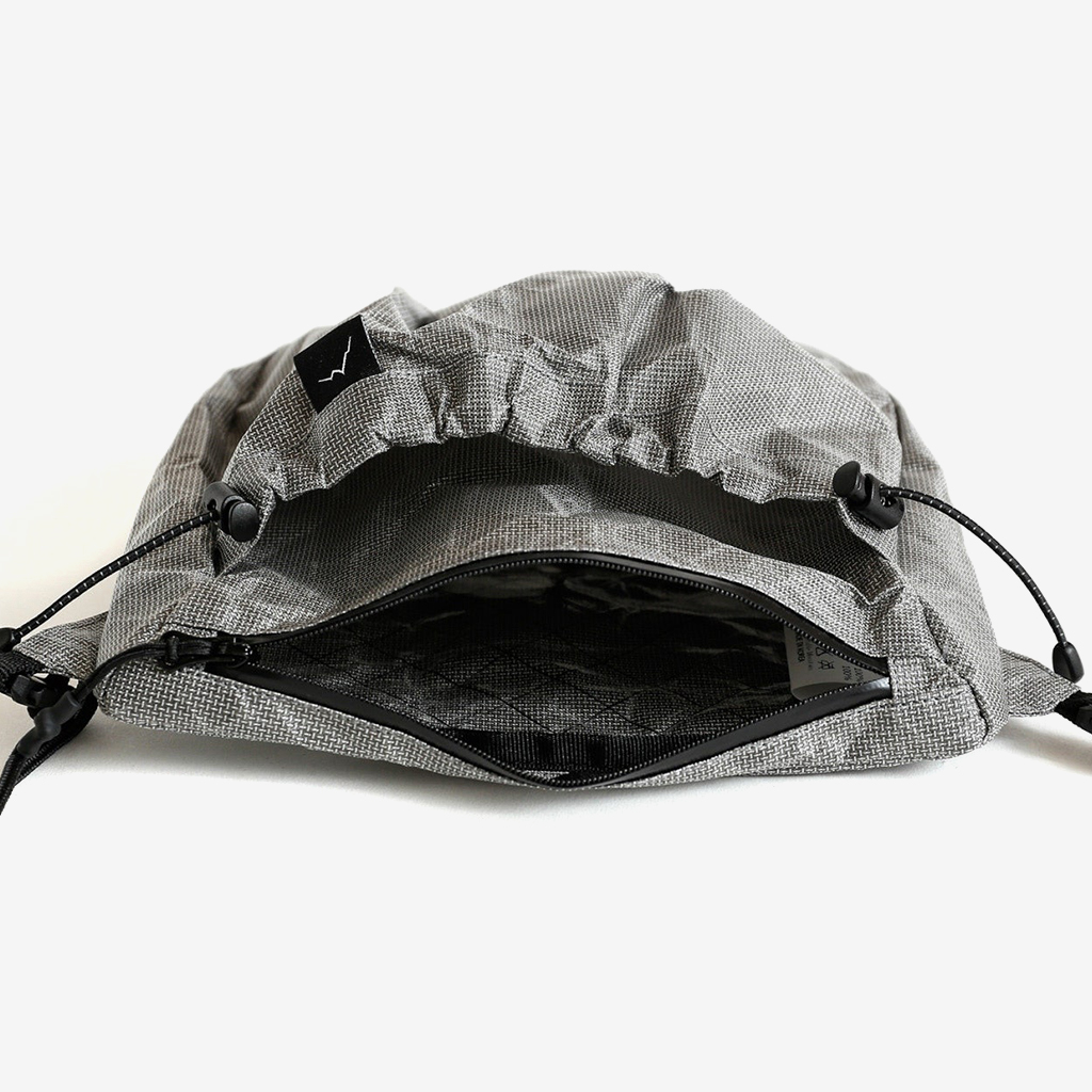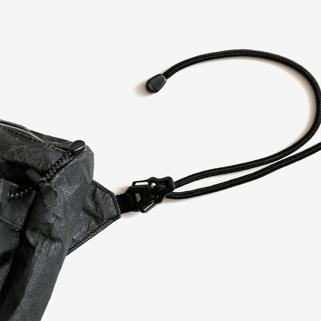 CAYL『Seorak 7 Ultra』は、スクエア型で防水性の高いサコッシュ。 生地には、高次元の軽さと強度、防水性を併せ持つ新素材Ultra fabricを使用。 メインポケットは止水ジッパー式なので、ちょっとした雨でも安心。 フロントポケット上部のリフレクターバンジーコードは、荷物が落ちてしまうのを防いでくれ、また夜間はリフレクターが反射します。 両サイドから簡単に長さ調整できるショルダーストラップは、どちらもバックル式なのでフードがあったりロングヘアーの方もストレスなく脱着できます。 ショルダーストラップの接触面には3Dエアメッシュを採用し、通気性とクッション性を持たせています。 カラー:Black Magic カラー:Light Grey 「Ultra-PE CrossPly」(Ultraの糸を格子状にしたもの)がラミネートされ、高い剛性を誇ります。 ショルダーストラップとの接続はバックル式なので、服装を選ばず簡単に着脱できます。 外ポケット下部の水抜き穴。 ショルダーストラップの接触面には、通気性とクッション性のある3Dエアメッシュを採用。 高次元の軽さと強度、防水性を併せ持つ新素材Ultra fabric。 使い込むほどシワが入り、しなやかになっていきます。 マチもあるので、見た目以上に収納力があります。 アウトドアはもちろん、デイリーユースにも。