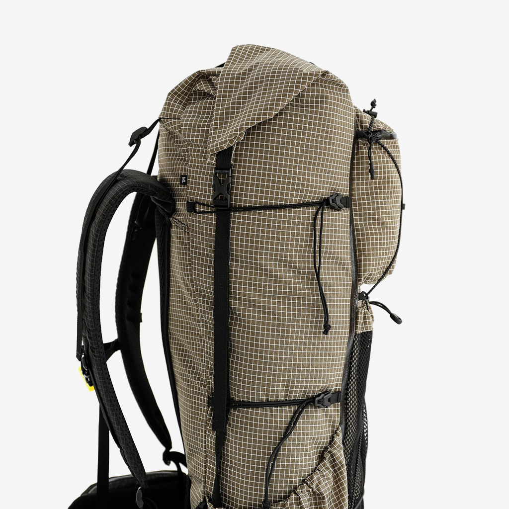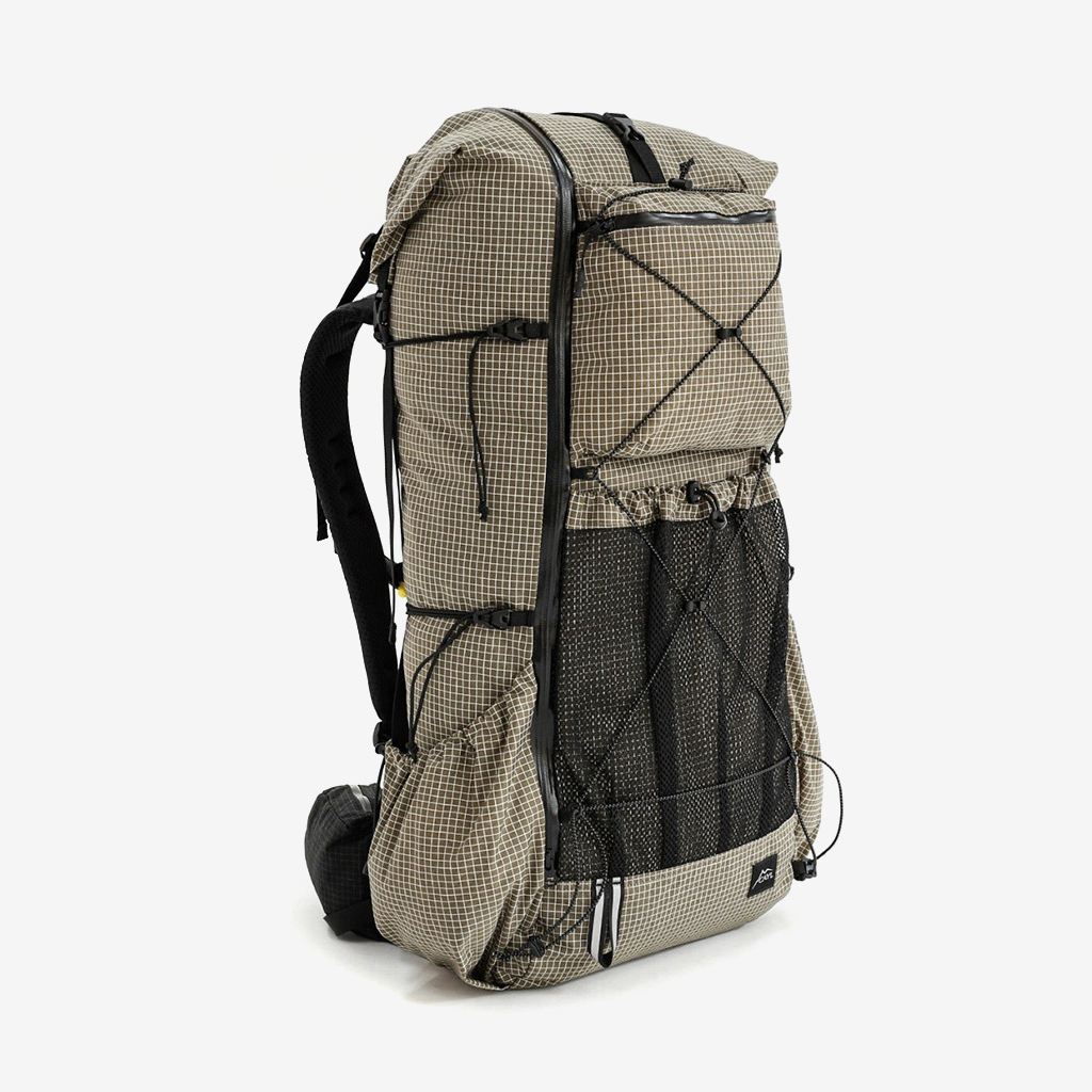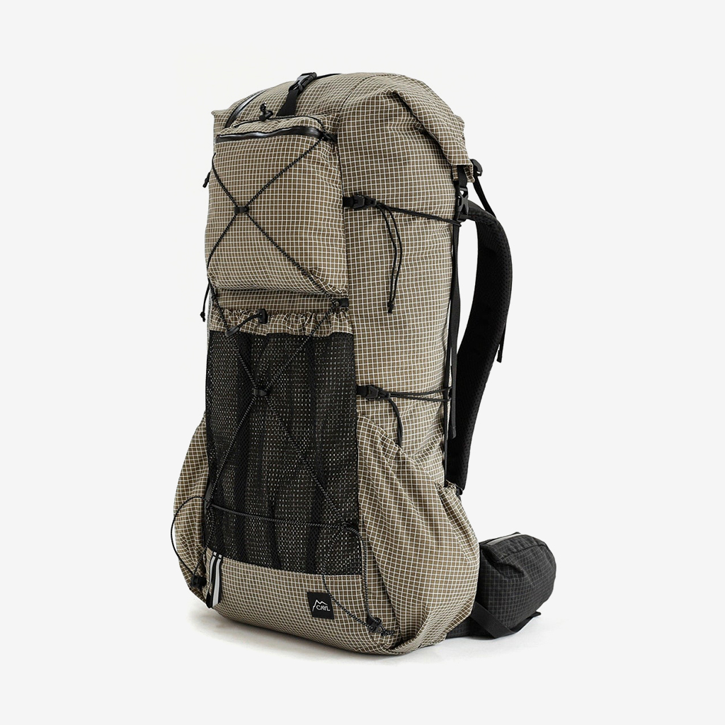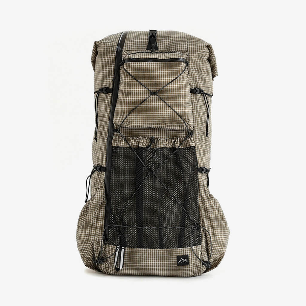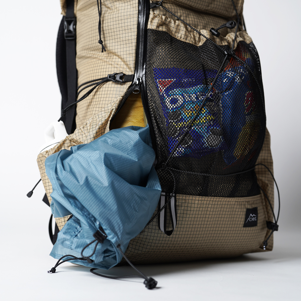 韓国のULハイキングシーンを牽引する、ソウル発のアウトドアブランドCAYL。 ユーザーからの要望も多かった荷物をスムーズに取り出せる大型バックパックが2024FWから遂にリリース! 新作『Unmun』(ウンムン)は、背面に内蔵されたシングルアルミフレームと、体の動きに合わせて寄り添う柔軟性のあるプレート、そして安心感のあるヒップベルトを備え、軽量ながらしっかりと腰に荷重を分散し、食料が多くなる長期間のハイキングでも安定して背負うことができます。 背面のフレームとヒップベルトは取り外せるので、スタイルに合わせてより軽量化することもできます。 ショルダーハーネスと背面には、しなやかで適度な厚みのある3Dエアメッシュを採用し、快適なクッション性に加え、蒸れも軽減しています。 ショルダースタビライザーを活用して、バックを身体側に引き寄せたり、逆に離して負荷のかかる場所を分散することもできます。 特徴的なフロントのダブルジッパーは、ロールトップ式の懸念点のひとつであるメイン部へのアクセスのしにくさを、デザインに落とし込みながら解決。 下方に収納した荷物も下から開けてすぐに出し入れできるので、上から順番に荷物を取り出す必要はありません。 荷造り時や山小屋、テント場では、上からジッパーを開ければどこに何があるかも一目瞭然。荷物が出し入れしやすく、パッキングも楽にしてくれます。 約45L(メイン40L、ポケット5L)という容量は、オールシーズンの小屋泊、テント泊から、ULスタイルなら長期のロングハイクにも使いやすい絶妙なサイズ。 メインスペースはロールトップ構造で、バックルを上、もしくはサイドに落として留めることができます。 またロールトップ入口はスナップボタン式なので、出し入れの時にフリースなどのウェアと干渉することもありません。 フロントにはジッパーポケットとメッシュポケット、両サイドにもポケットがあり、収納力はもちろん、整理もしやすい設計になっています。 使われているCAYL GRID生地は、210Dナイロンをベースに、超高分子量ポリエチレン(UHMWPE)を格子状に組み合わせた軽量で強靭な生地。 耐摩耗性、UV耐性に優れ、長期間の使用に適した耐久性があり、強度に加え撥水性も備えています。 ※完全防水ではありませんので、必要に応じてパックライナーやザックカバーなどで防水対策をおこなってください。 ※付属するビニール製の梱包袋がパックライナーとしてご使用いただけます。 フロントダブルジッパーによるアクセスしやすさに加え、取り外しもできるアルミフレーム、しっかりサポートしてくれるヒップベルトなど大型パックに欲しい機能を備えながらも、SMサイズで約870g(本体710g、ヒップベルト160g)と軽量に仕上がっています。 背面長に合わせて、SM、MLの2サイズ展開になります。 下方に収納した荷物も下からジッパーを開けてスムーズに出し入れできます。 ロールトップ上部のバックルは、上で留める、もしくはこのようにサイドに落として留めることができます。 サイドで留めた方がより荷物が固定され安定します。 サイドポケットは十分な容量があり、背負ったままでも取り出しやすいよう手前側が低くなっています。 ショルダーハーネスと背面、ヒップベルトには、クッション性と通気性を持つ3Dエアメッシュを採用。 チェストストラップはテンションバンドになっていて、動いている最中も柔らかにフィットします。 バックルの黄色部分はホイッスルになっています。ホイッスル部分だけ取り外しもできます。 ショルダースタビライザーを活用して、バックを身体側に引き寄せたり、逆に離して負荷のかかる場所を分散することもできます。 フロント上部のジッパーポケットと、下部のメッシュポケット。用途に応じて使い分けできます。 バンジーコードでコンプレッションすることで荷物の揺れを軽減します。 サイドのコンプレッションストリングを引くことで必要に応じてパックの容量を減らし、また荷物が背中側へ引き寄せられることでより安定して背負えます。 コンプレッションストリングは、上側はコンプレッション効果が高い伸縮しないタイプ、下側は収納性も重視した伸縮するタイプになっています。 ヒップベルトのポケットもマチがあり十分な容量。ヒップベルトは簡単に取り外しも可能です。 スマホや行動食も余裕をもって収まります。 ロールトップなので、荷物の量に応じて容量を可変できます。 モデル:184cm / MLサイズ ロールトップ入口はスナップボタン式なので、出し入れの時にフリースなどのウェアと干渉することもありません。 荷造り時や山小屋、テント場では、上からジッパーを開ければどこに何があるかも一目瞭然。荷物が出し入れしやすく、パッキングも楽にしてくれます。 フロント上部のジッパーポケットと、下部のメッシュポケット。用途に応じて使い分けできます。 バンジーコードでコンプレッションすることで荷物の揺れを軽減しま
