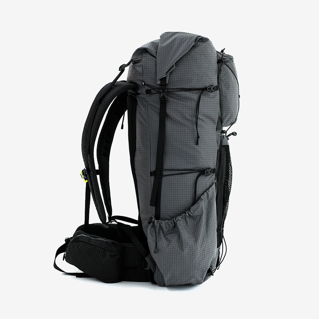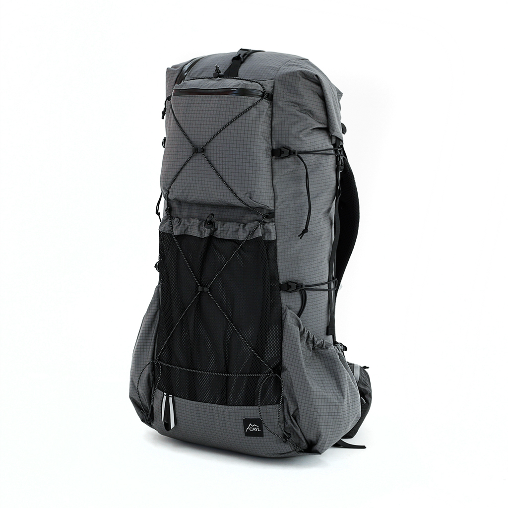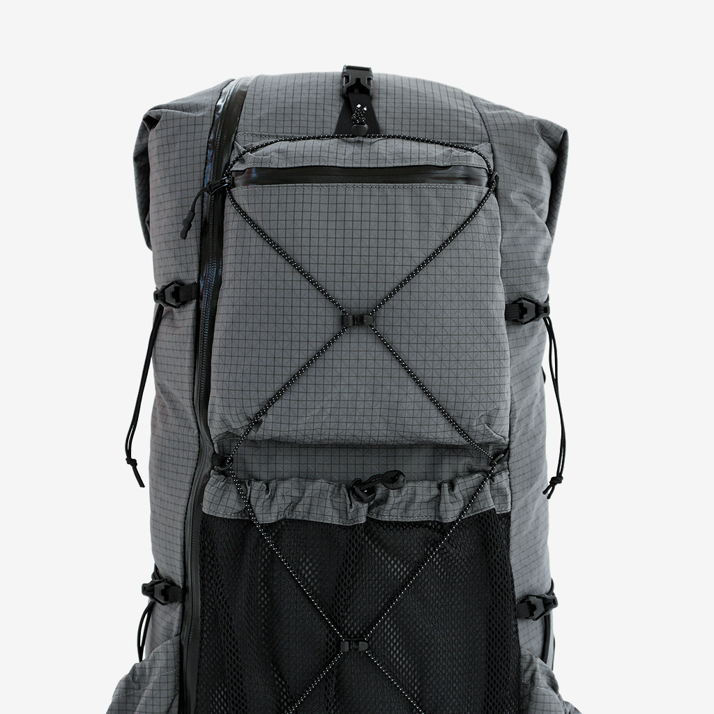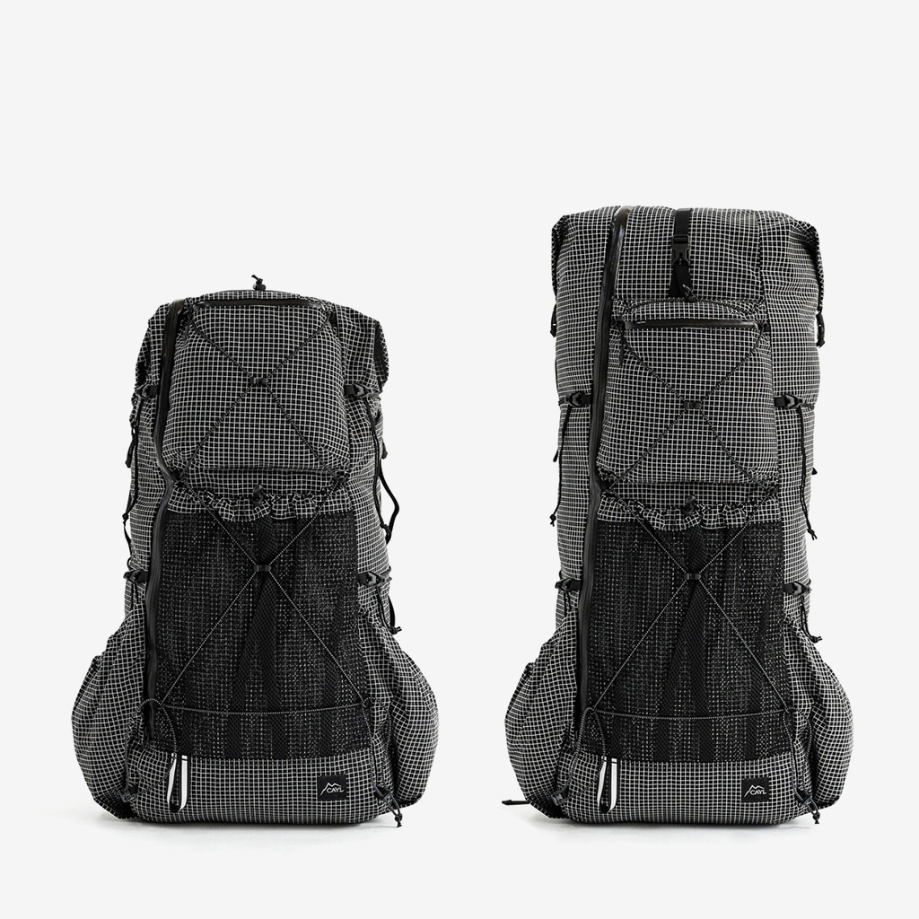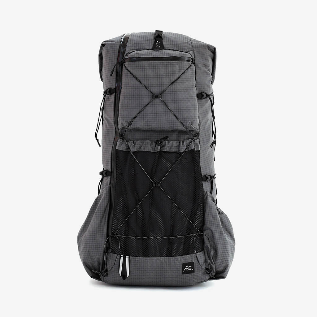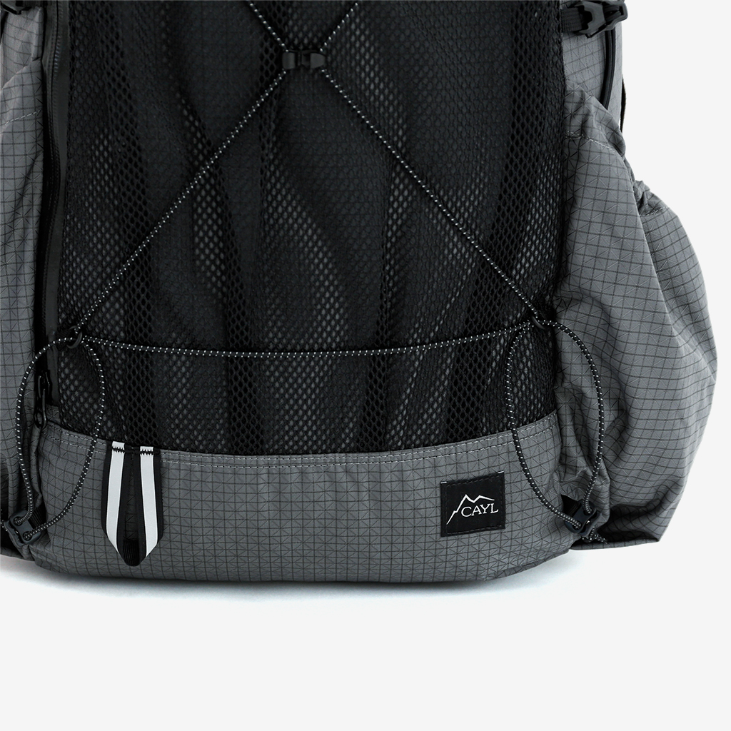 韓国のULハイキングシーンを牽引する、ソウル発のアウトドアブランドCAYL。 ユーザーからの要望も多かった荷物をスムーズに取り出せる大型バックパックが2024FWから遂にリリース! 新作『Unmun』(ウンムン)は、背面に内蔵されたシングルアルミフレームと、体の動きに合わせて寄り添う柔軟性のあるプレート、そして安心感のあるヒップベルトを備え、軽量ながらしっかりと腰に荷重を分散し、食料が多くなる長期間のハイキングでも安定して背負うことができます。 背面のフレームとヒップベルトは取り外せるので、スタイルに合わせてより軽量化することもできます。 ショルダーハーネスと背面には、しなやかで適度な厚みのある3Dエアメッシュを採用し、快適なクッション性に加え、蒸れも軽減しています。 ショルダースタビライザーを活用して、バックを身体側に引き寄せたり、逆に離して負荷のかかる場所を分散することもできます。 特徴的なフロントのダブルジッパーは、ロールトップ式の懸念点のひとつであるメイン部へのアクセスのしにくさを、デザインに落とし込みながら解決。 下方に収納した荷物も下から開けてすぐに出し入れできるので、上から順番に荷物を取り出す必要はありません。 荷造り時や山小屋、テント場では、上からジッパーを開ければどこに何があるかも一目瞭然。荷物が出し入れしやすく、パッキングも楽にしてくれます。 約45L(メイン40L、ポケット5L)という容量は、オールシーズンの小屋泊、テント泊から、ULスタイルなら長期のロングハイクにも使いやすい絶妙なサイズ。 メインスペースはロールトップ構造で、バックルを上、もしくはサイドに落として留めることができます。 またロールトップ入口はスナップボタン式なので、出し入れの時にフリースなどのウェアと干渉することもありません。 フロントにはジッパーポケットとメッシュポケット、両サイドにもポケットがあり、収納力はもちろん、整理もしやすい設計になっています。 使われているCAYL GRID生地は、210Dナイロンをベースに、超高分子量ポリエチレン(UHMWPE)を格子状に組み合わせた軽量で強靭な生地。 耐摩耗性、UV耐性に優れ、長期間の使用に適した耐久性があり、強度に加え撥水性も備えています。 ※完全防水ではありませんので、必要に応じてパックライナーやザックカバーなどで防水対策をおこなってください。 ※付属するビニール製の梱包袋がパックライナーとしてご使用いただけます。 フロントダブルジッパーによるアクセスしやすさに加え、取り外しもできるアルミフレーム、しっかりサポートしてくれるヒップベルトなど大型パックに欲しい機能を備えながらも、SMサイズで約870g(本体710g、ヒップベルト160g)と軽量に仕上がっています。 背面長に合わせて、SM、MLの2サイズ展開になります。 サイドのコンプレッションストリングを引くことで必要に応じてパックの容量を減らし、また荷物が背中側へ引き寄せられることでより安定して背負えます。 コンプレッションストリングは、上側はコンプレッション効果が高い伸縮しないタイプ、下側は収納性も重視した伸縮するタイプになっています。 ショルダーハーネスと背面、ヒップベルトには、クッション性と通気性を持つ3Dエアメッシュを採用。 チェストストラップはテンションバンドになっていて、動いている最中も柔らかにフィットします。 バックルの黄色部分はホイッスルになっています。ホイッスル部分だけ取り外しもできます。 ショルダースタビライザーを活用して、バックを身体側に引き寄せたり、逆に離して負荷のかかる場所を分散することもできます。 ヒップベルトのポケットもマチがあり十分な容量。ヒップベルトは簡単に取り外しも可能です。 スマホや行動食も余裕をもって収まります。 ロールトップなので、荷物の量に応じて容量を可変できます。 モデル:184cm / MLサイズ ロールトップ入口はスナップボタン式なので、出し入れの時にフリースなどのウェアと干渉することもありません。 荷造り時や山小屋、テント場では、上からジッパーを開ければどこに何があるかも一目瞭然。荷物が出し入れしやすく、パッキングも楽にしてくれます。 フロント上部のジッパーポケットと、下部のメッシュポケット。用途に応じて使い分けできます。 バンジーコードでコンプレッションすることで荷物の揺れを軽減します。 ロールトップ上部のバックルは、上で留める、もしくはこのようにサイドに落として留めることができます。 サイドで留めた方がより荷物が固定され安定します。 下方に収納した荷物も下からジッパーを開けてスムーズに出し入れできます。 ダブルウォールテント、冬用シュラフ、マット、インナーシュラフ、エマージェンシービビィ、レインウェア上下、ダウン上下、メリノベースレイヤー上下、グローブ、チェーンスパイク、保温ボトルなど、秋冬テント泊を想定したパッキング例。 モデル:182cm / MLサイズ