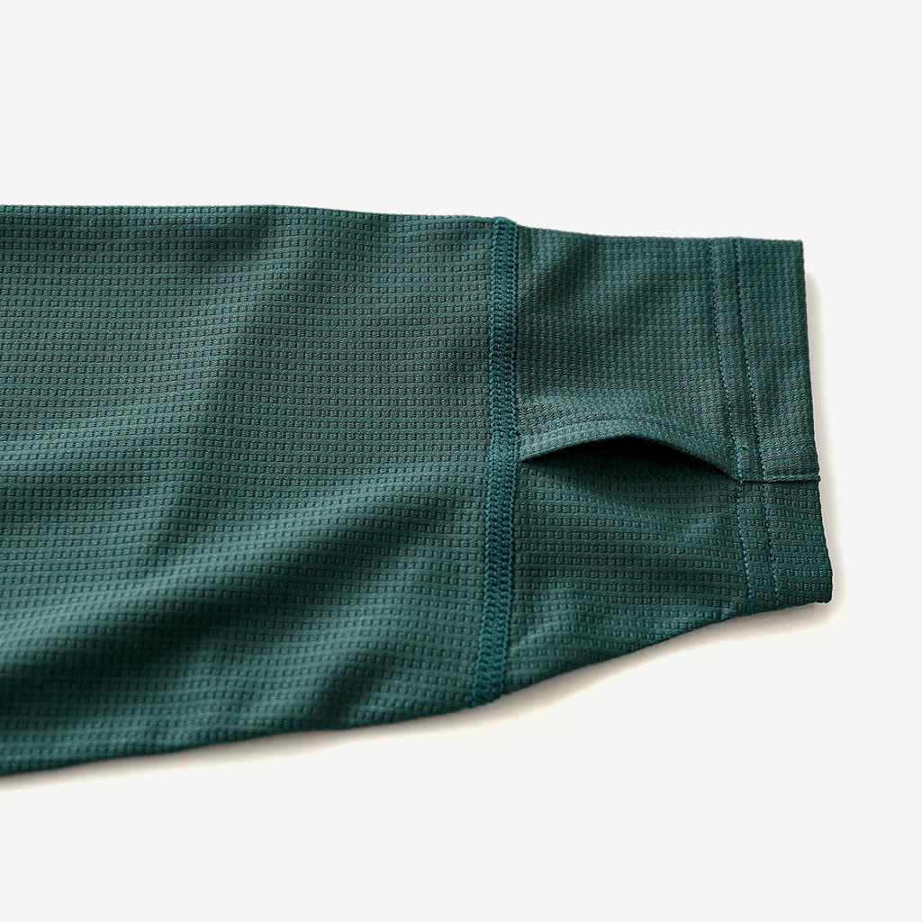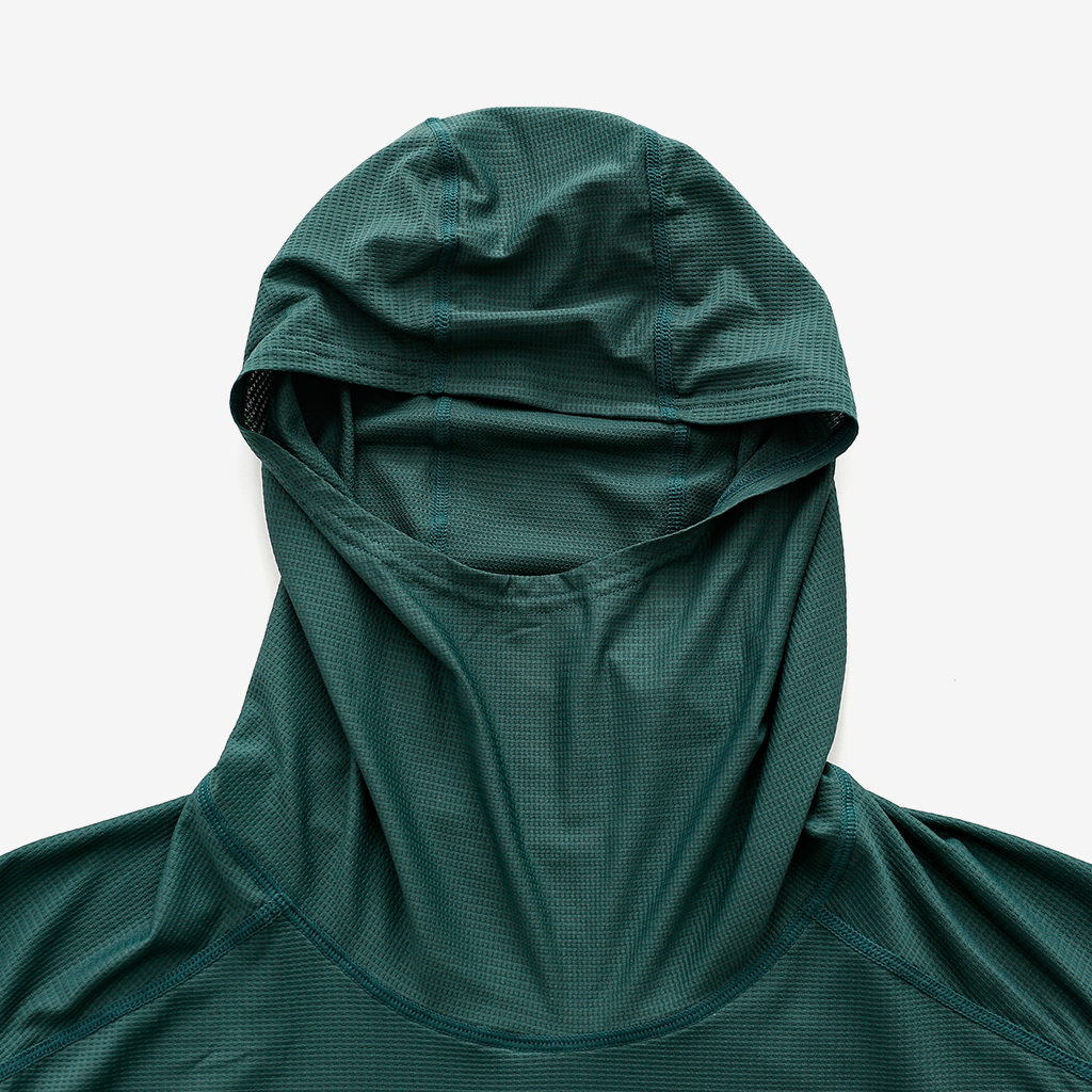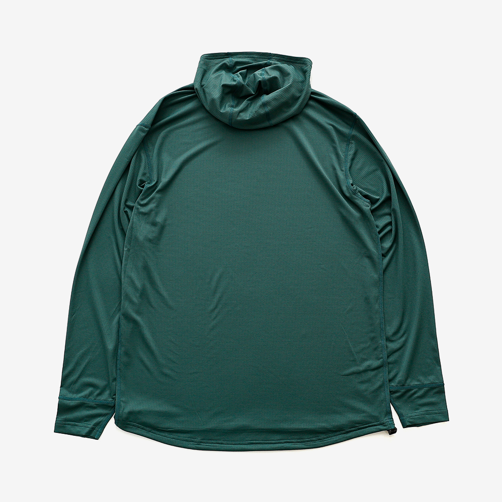 CAYL『Air Hoody』は、CAYLオリジナル生地で作られた速乾ロングスリーブフーディー。 軽量で通気性が高く、吸汗速乾機能があり、さらにHeiq社の抗菌加工が施され、防臭効果もあります。 袖口はサムホール仕様で、裾はコードで絞れます。 多くの汗をかく夏山やランニングのベースレイヤーとしても最適な万能フーディーです。 モデル:184cm/Lサイズ