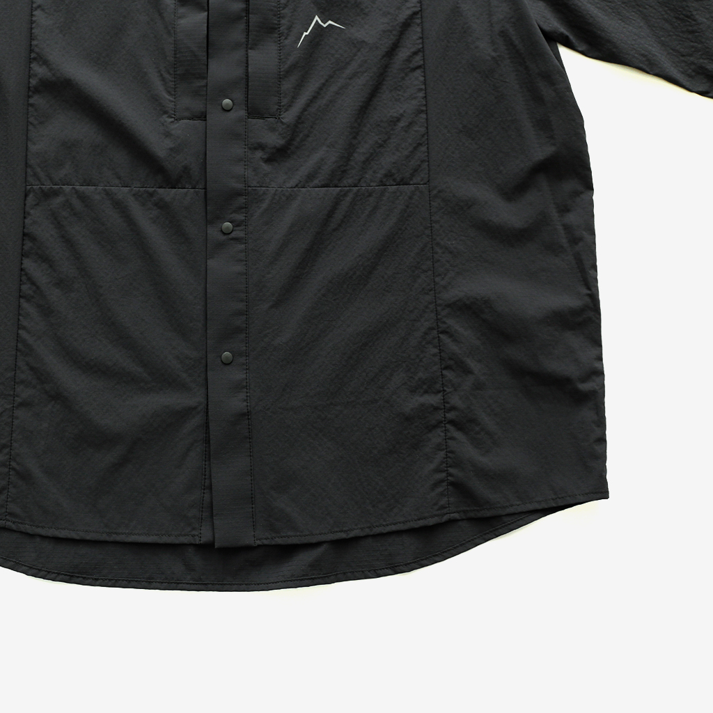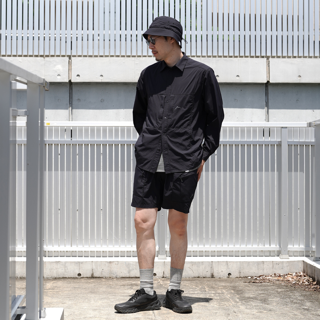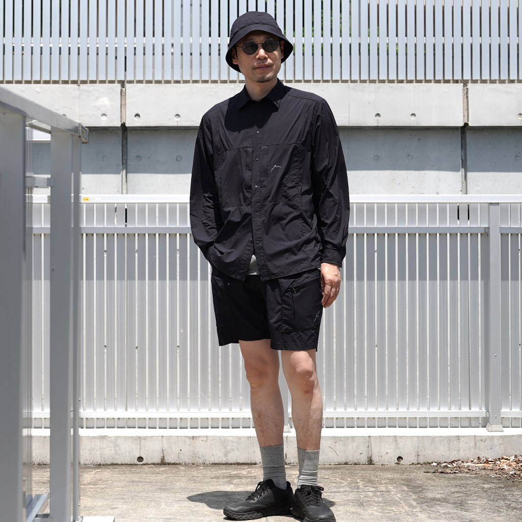 CAYL『Light Shirts』は、ストレッチの効いたスナップボタンタイプのシャツ。 軽量で少し凹凸のある生地は、肌離れが良く、汗をかいても快適。 薄手ながら撥水コーティングが施され、バックパックを背負っても干渉しづらい位置にジッパー付きポケットを備えます。 軽量でコンパクトになるので荷物の負担にならず、幅広いシーンで活躍します。ハイキングはもちろん、自転車や旅にも◎ インナーやアウターとのレイヤリングで、1年を通して活躍してくれます。 同素材で作られた『Light Cargo Shorts』『Light Vent Hat』と合わせても。 モデル:184cm/Lサイズ モデル:182cm/XLサイズ