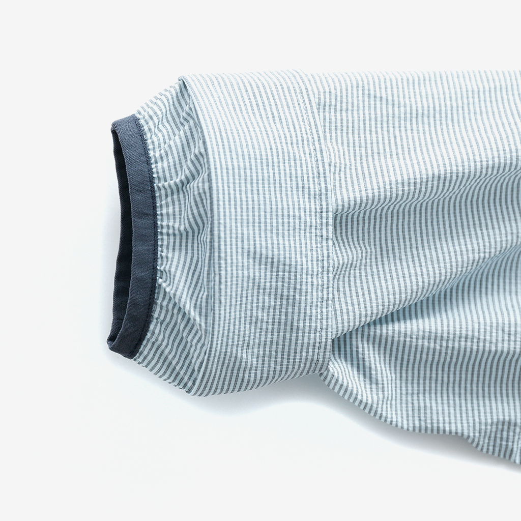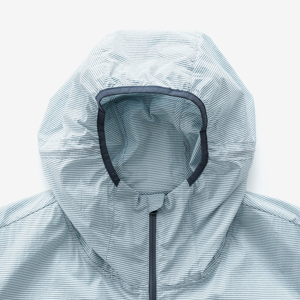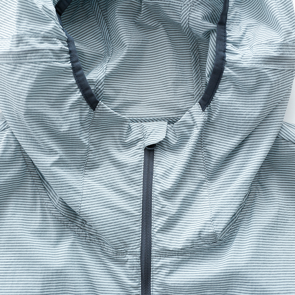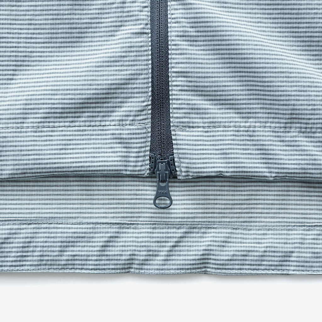 CAYL『Flap Pocket CHK Jacket』は、薄手ながら撥水コーティングと防風コーティングが施された軽量なウインドジャケット。 ストライプにも見える細かなチェック柄が、軽やかでユニークな印象を生み出しています。 胸にはベルクロタイプのフラップポケット、ハンドポケットはジッパータイプになっています。 フロントはダブルジッパーで細かなベンチレーション調整ができ、裾とフードはコードで調整できます。 軽量でコンパクトになるので荷物の負担にならず、幅広いシーンで活躍します。薄くてもしっかり防風してくれるので、アクティビティはもちろん、夏場の冷房対策や旅行、デイリーユースにも、1枚あるととても重宝するウインドジャケットです。 カラーはLight Grey、Dark Greyの2カラー展開になります。 背面。 フロントはダブルジッパーで細かなベンチレーション調整ができます。 裾はストリングコードで絞れるので、丈感やシルエットも変えられます。 モデル:184cm/Lサイズ モデル:182cm / Lサイズ