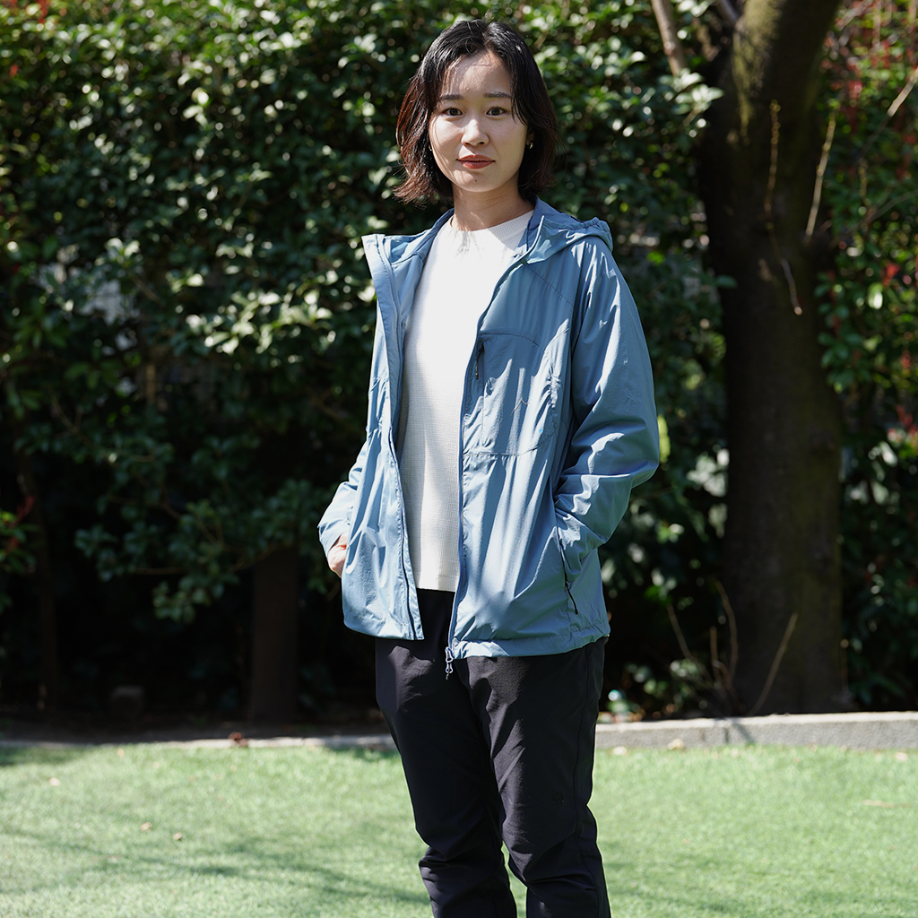 CAYL『Light Stretch Jacket WM』は、CAYLのラインナップの中では貴重なWomensモデル。 通気性の良いストレッチナイロンに、防風透湿コーティングを施した生地で作られたシャープなシルエットのウインドジャケットです。 さらに通気性を高めるために、脇下部分ににレーザーホール加工を施しています。 手首部分はストレッチメッシュパネルを採用し、快適なフィット感。 フロントはダブルジッパー、裾とフードはコードで調整でき、左胸のCAYLロゴはリフレクター素材で、夜間に行動する際の視認性も十分。安全に活動できます。 ポケットにパッカブルに収納してコンパクトに持ち運べます。 とても軽量で、防風、撥水性があり、速乾性、ストレッチ性が高く、ハイクやラン、自転車など、アクティブなシーンに最適。 ポケットにパッカブルに収納してコンパクトに持ち運べます。 ラグランスリーブで肩や腕が動かしやすくなっています。 さらに通気性を高めるために、脇下部分ににレーザーホール加工を施しています。 手首部分はストレッチメッシュパネルを採用し、快適なフィット感。 モデル:158cm Mサイズ