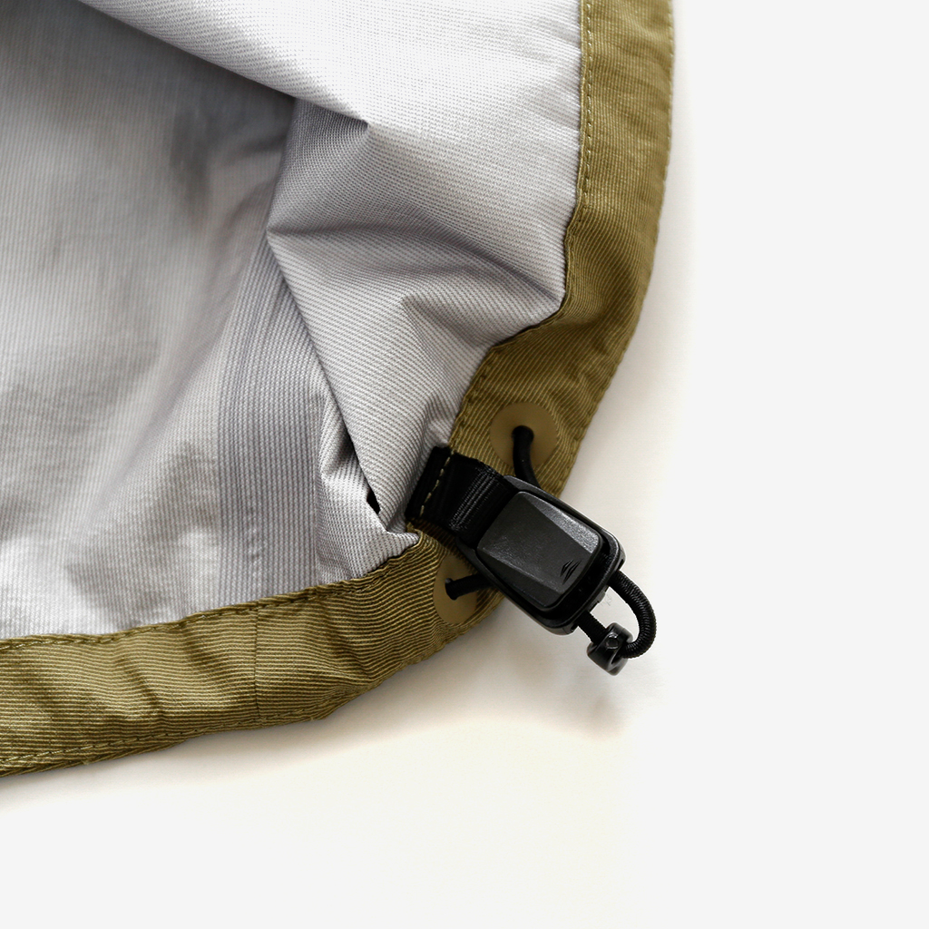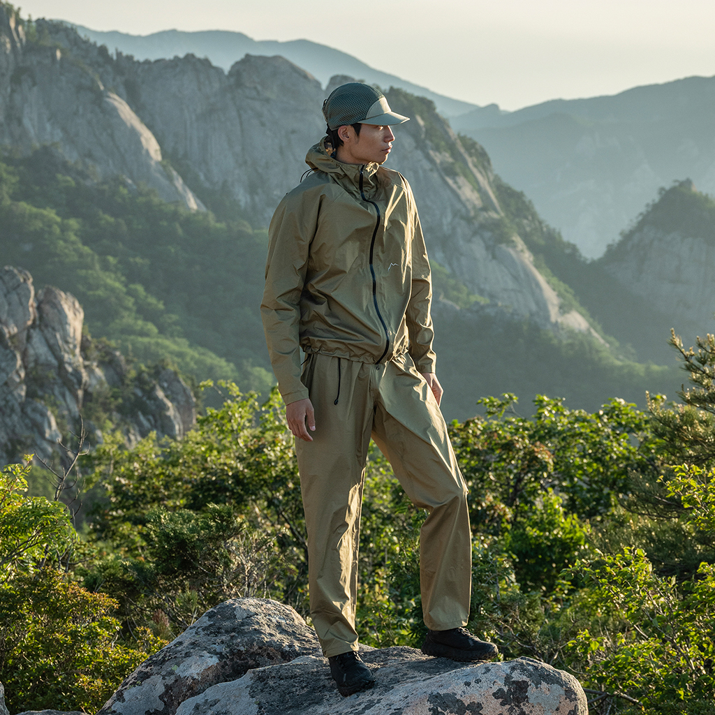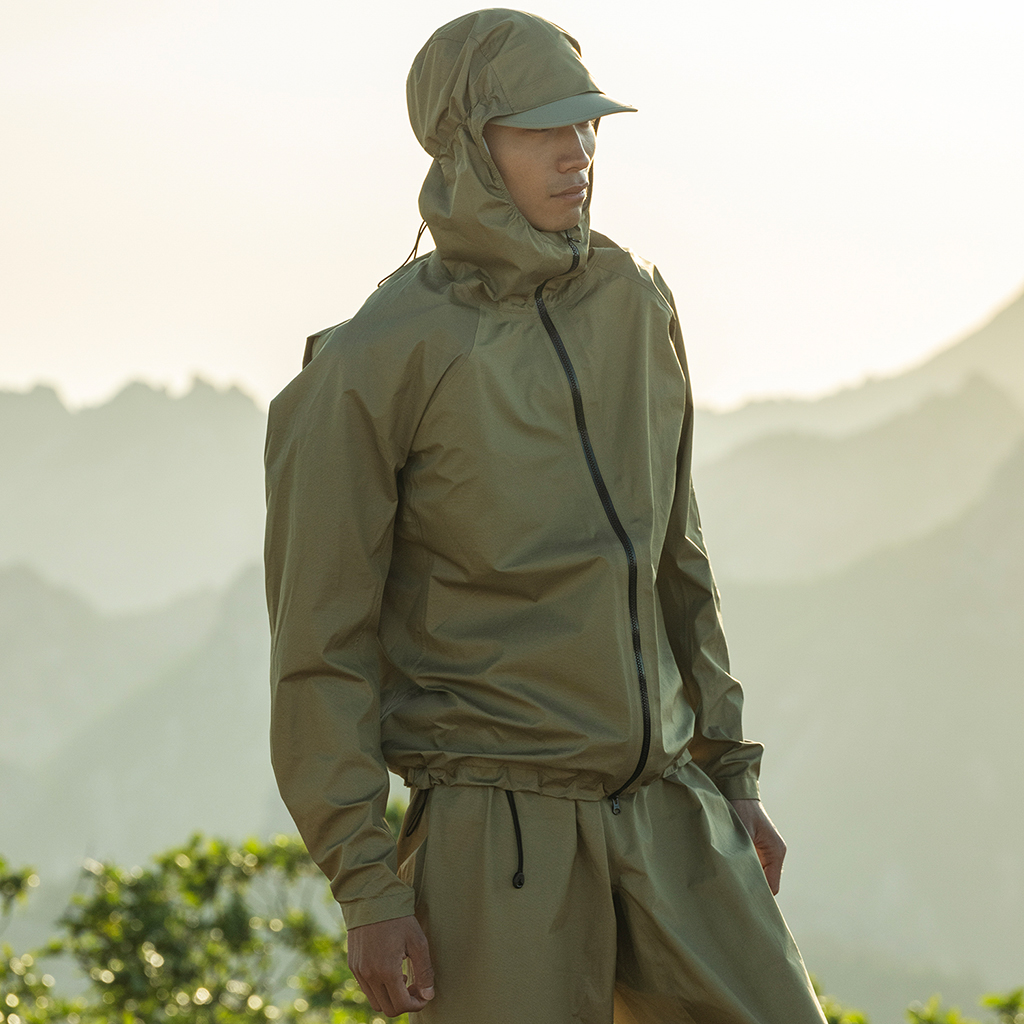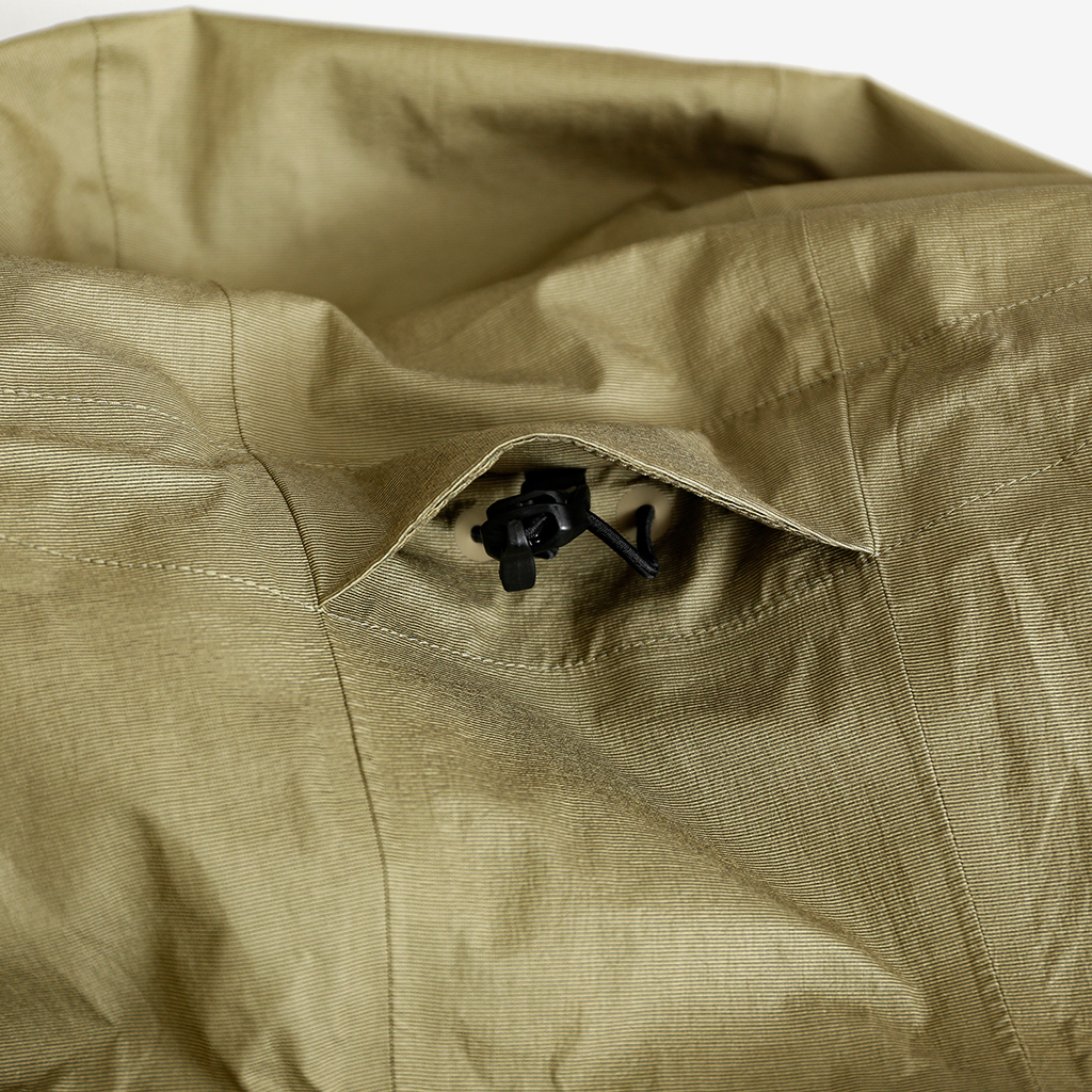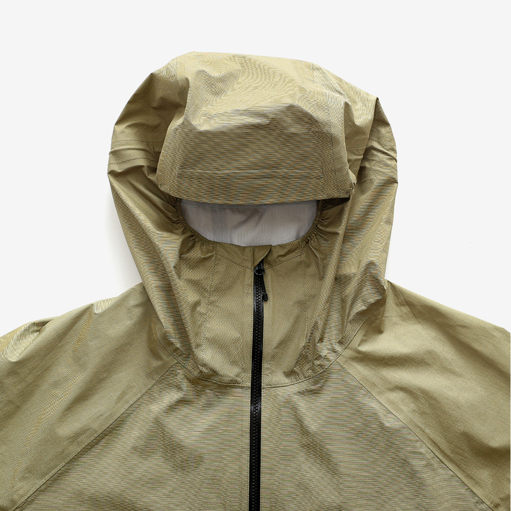 CAYL『Light Trail 3L Jacket』は、抜群の透湿性で快適に行動できる軽量レインジャケット。 CAYLが新たに開発したナノフィルムを用いた3レイヤー生地は、防水性や耐風性、耐久性はしっかり備えながら、65,000 g/m2/24hものハイレベルな透湿性を実現しています。 フロントはダブルジッパー、脇はベンチレーション構造になっていて、状況に応じてベンチレーションレベルを調整できます。 フードと裾はストリングコードでフィッティング調整が可能。 背中部分は少しゆとりを持たせたパターンになっていて、トレランパックなどコンパクトなものであれば上から羽織ることもできます。 高温多湿な日本の気候にもマッチした素材は、優れた透湿性により衣服内がドライな状態に保たれ、着心地はしなやかで軽く。まるでウインドシェルのように着れるレインジャケット。 そしてCAYLらしい使い勝手を追求しながらも、タウンユースにも馴染むデザイン性で、多彩なシーンで重宝します。 専用の収納ポーチも付属します。 背面。 脇下のベンチレーション。 専用の収納ポーチにコンパクトに収まります。 背中部分は少しゆとりを持たせたパターンになっていて、トレランパックなどコンパクトなものであれば上から羽織ることもできます。 モデル:184cm/Lサイズ