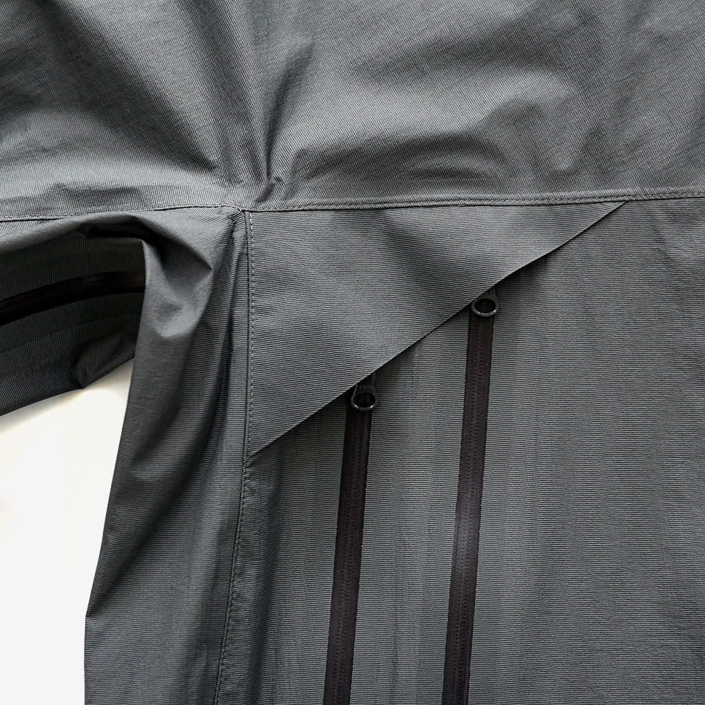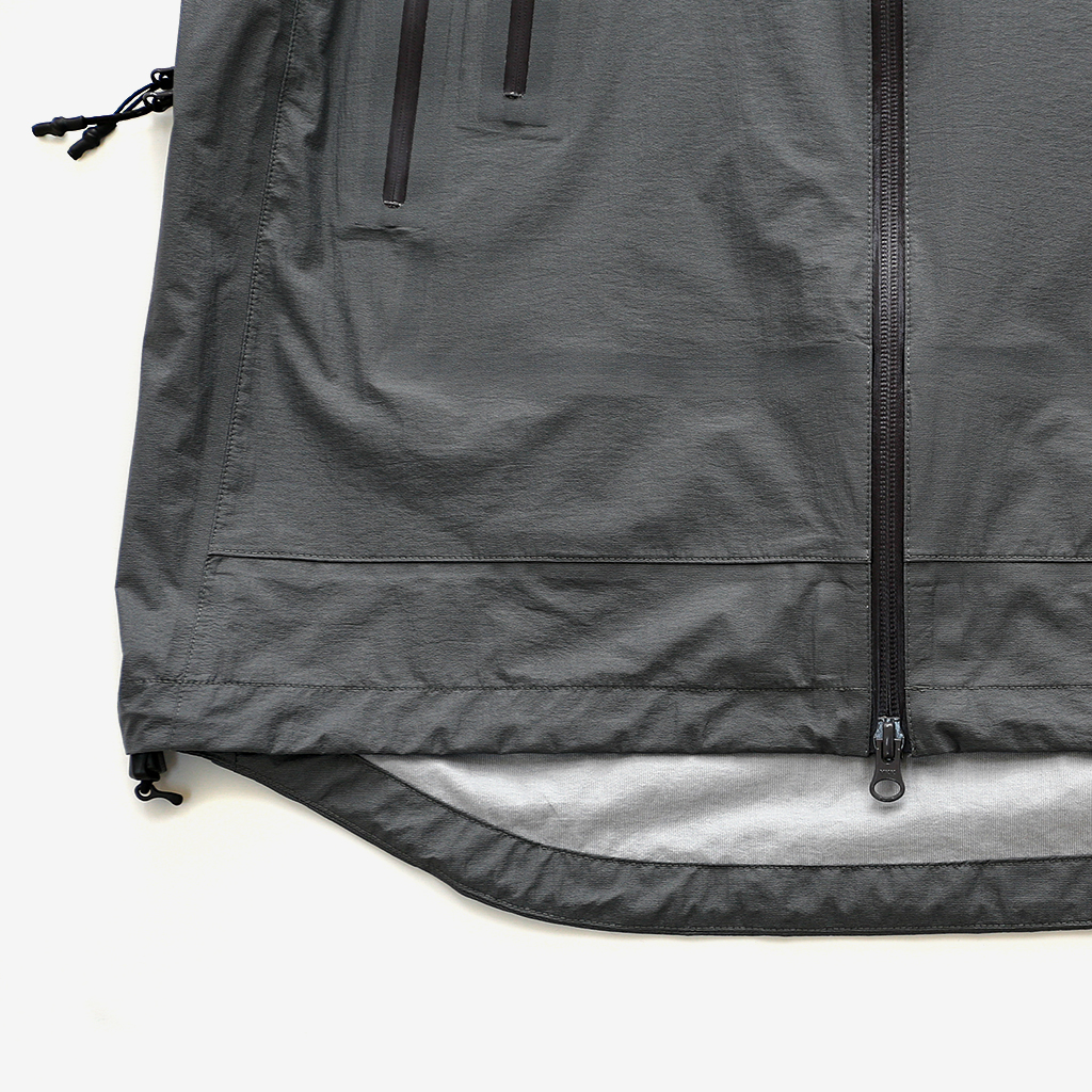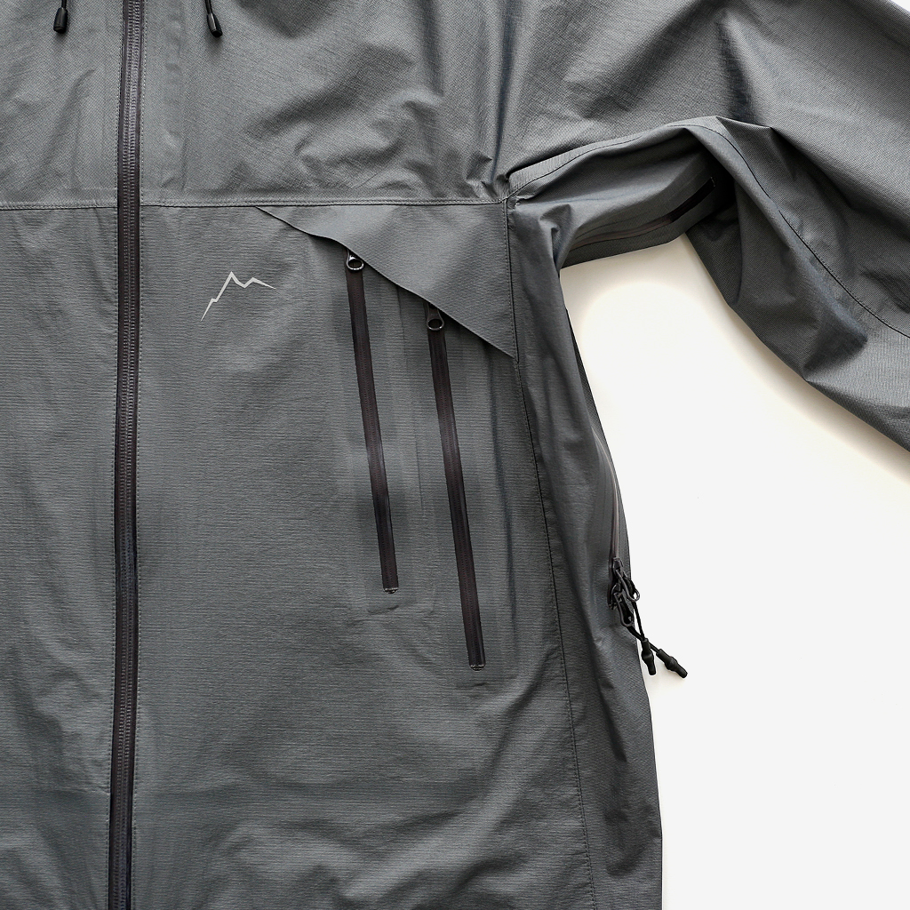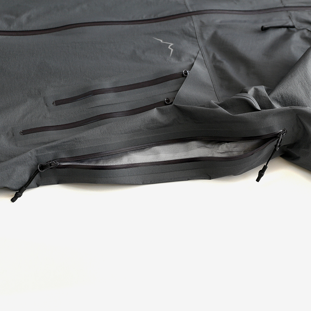 CAYL『Light 3L Double Zip Jacket』は、高レベルの防水性、透湿性、低結露性を実現した防水透湿素材である東レ『Dermizax(ダーミザクス)』を使用して作られた3レイヤーの軽量レインジャケット。 優れたストレッチ性で着心地もしなやかです。 フロントはダブルジッパー、脇はベンチレーションジッパーを備え、状況に応じてベンチレーションレベルを調整できます。 4つのポケット、フードと裾はストリングコードで調整もできて、使うシーンを選ばないまさにCAYLらしいマルチな仕様。 使い勝手抜群で、1年を通して活躍してくれます。 背面。 フードもドローコードで細かく調整できます。 ダブルポケット仕様で、整理しやすくなっています。 両脇はジッパーベンチレーションを備えます。 フロントもダブルジッパーで、下から開けて換気もできます。 裾もコードで絞れます。 袖はベルクロで調整。 モデル:179cm/Lサイズ