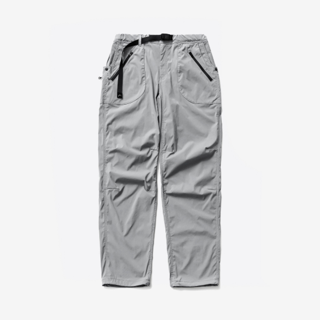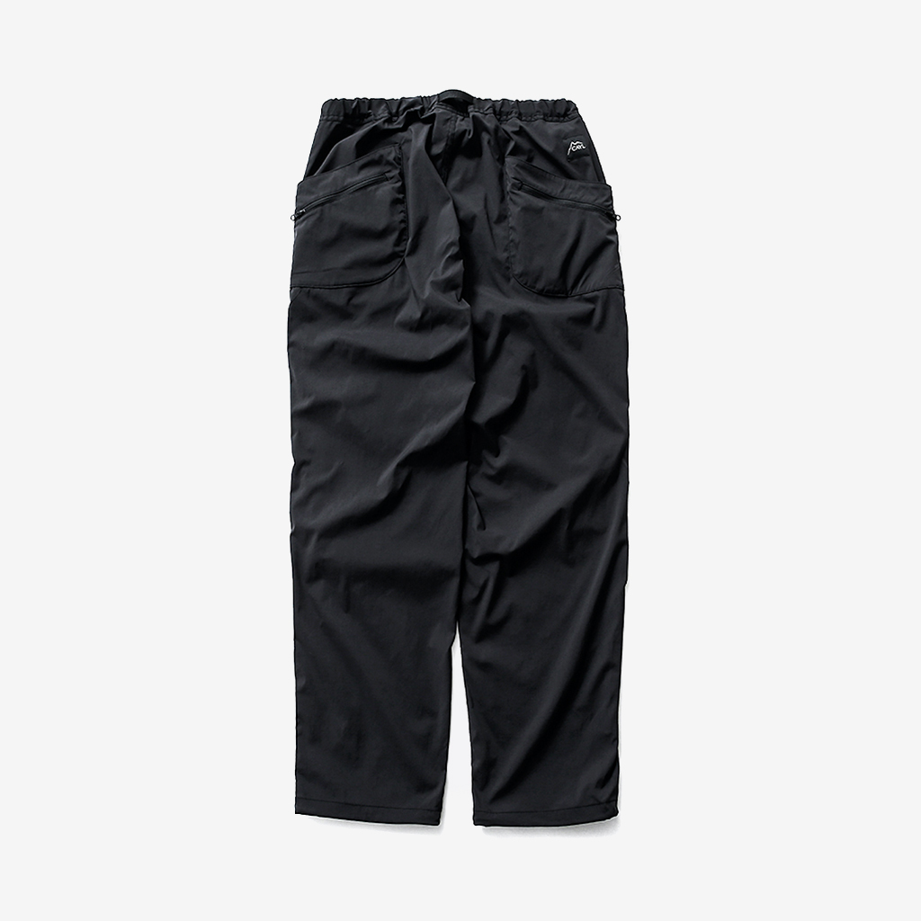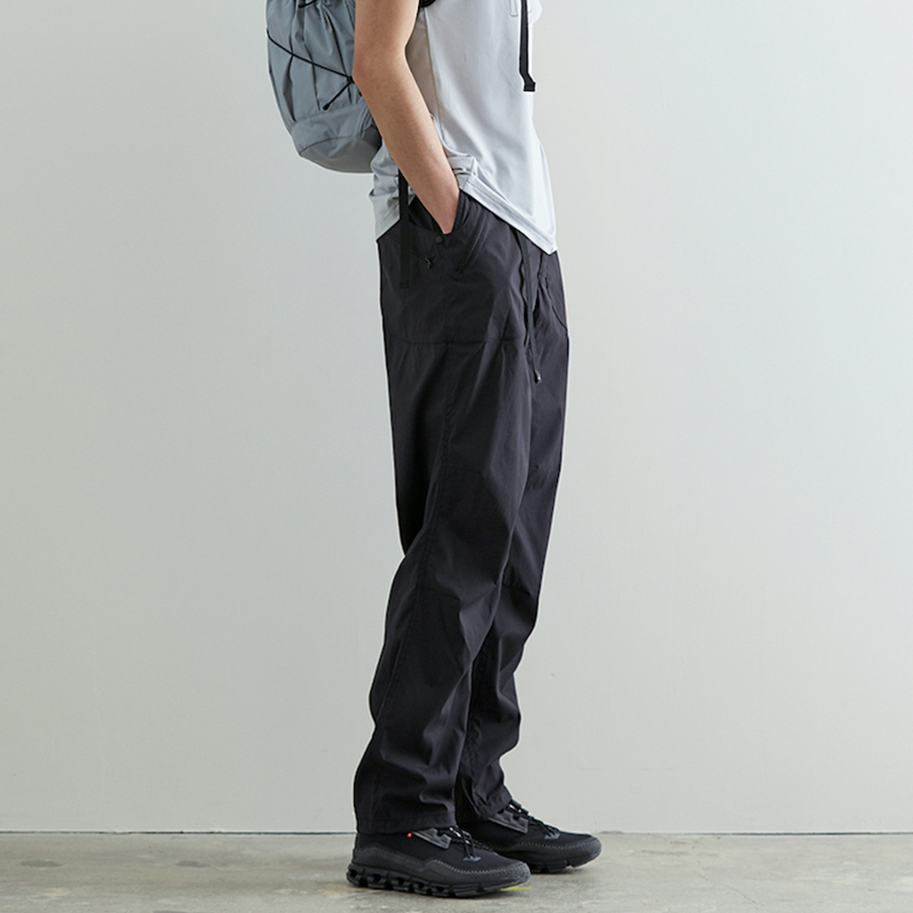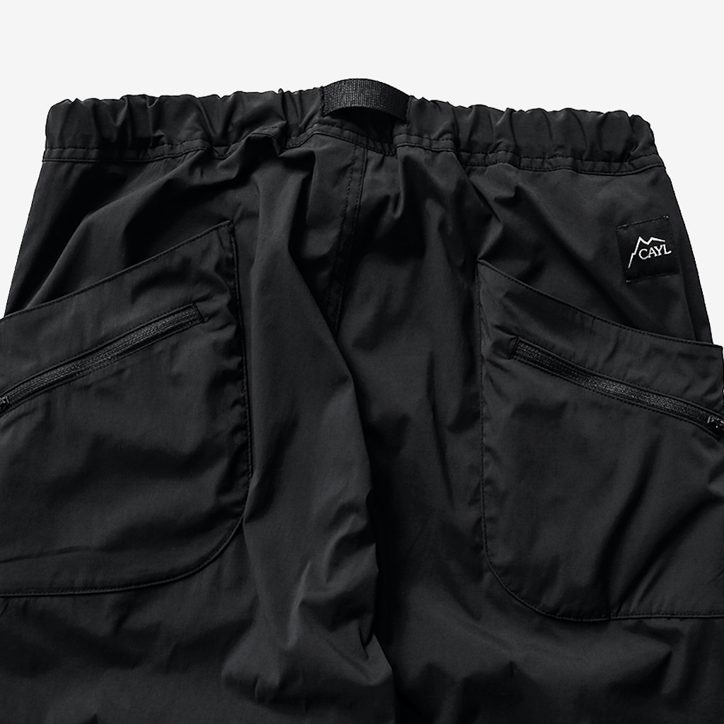CAYL『8 Pocket Hiking Pants』は、春から秋まで幅広いシーンで快適なロングパンツ。 ストレッチ性に加え、太ももと膝部分は立体裁断になっていて動きに干渉しにくく、ほどよくリラックス感のある快適な履き心地。岩場など大きく足を動かシチュエーションでもストレスフリー。 絶妙な生地厚のナイロンは、汗をかいても足に張り付きにくいサラッとしたしなやかな肌触りで、速乾性にも優れています。撥水コーティングのおかげで軽い雨でも安心です。 CAYLの特徴でもあるポケットデザインは、計8か所の収納スペース。 オーソドックスなハンドポケットに加え、グローブや手ぬぐいなどちょっとかさばるものも入れられる大容量のカーゴポケット、さらにカーゴポケットの前後には貴重品も安心して入れられるジッパーポケットを配置し、多彩な収納ニーズに対応。 使い勝手だけでなく、デザインのアクセントにもなっています。 ウエストはゴムとウェビングベルトで直感的に絞り具合を調整可能。腰上で留めてアクティブに動いたり、食事などリラックスしたい時は緩めたり。 裾もストリングコードで絞れるので、ランや自転車、シューズやサンダルなどによって、丈感やシルエットも変えられます。 ハイク、クライミング、ラン、自転車、ファッションなど多彩に楽しむCAYLらしい、マルチなロングパンツです。 背面。 膝周りは立体裁断されていて快適な履き心地。 多彩な収納ニーズに対応する特徴的なポケットデザイン。 裾もストリングコードで絞れるので、丈感やシルエットも変えられます。 モデル:184cm Lサイズ着用 ほどよくリラックス感があり、デイリーユースでもスタイリングしやすいCAYLらしいロングパンツです。