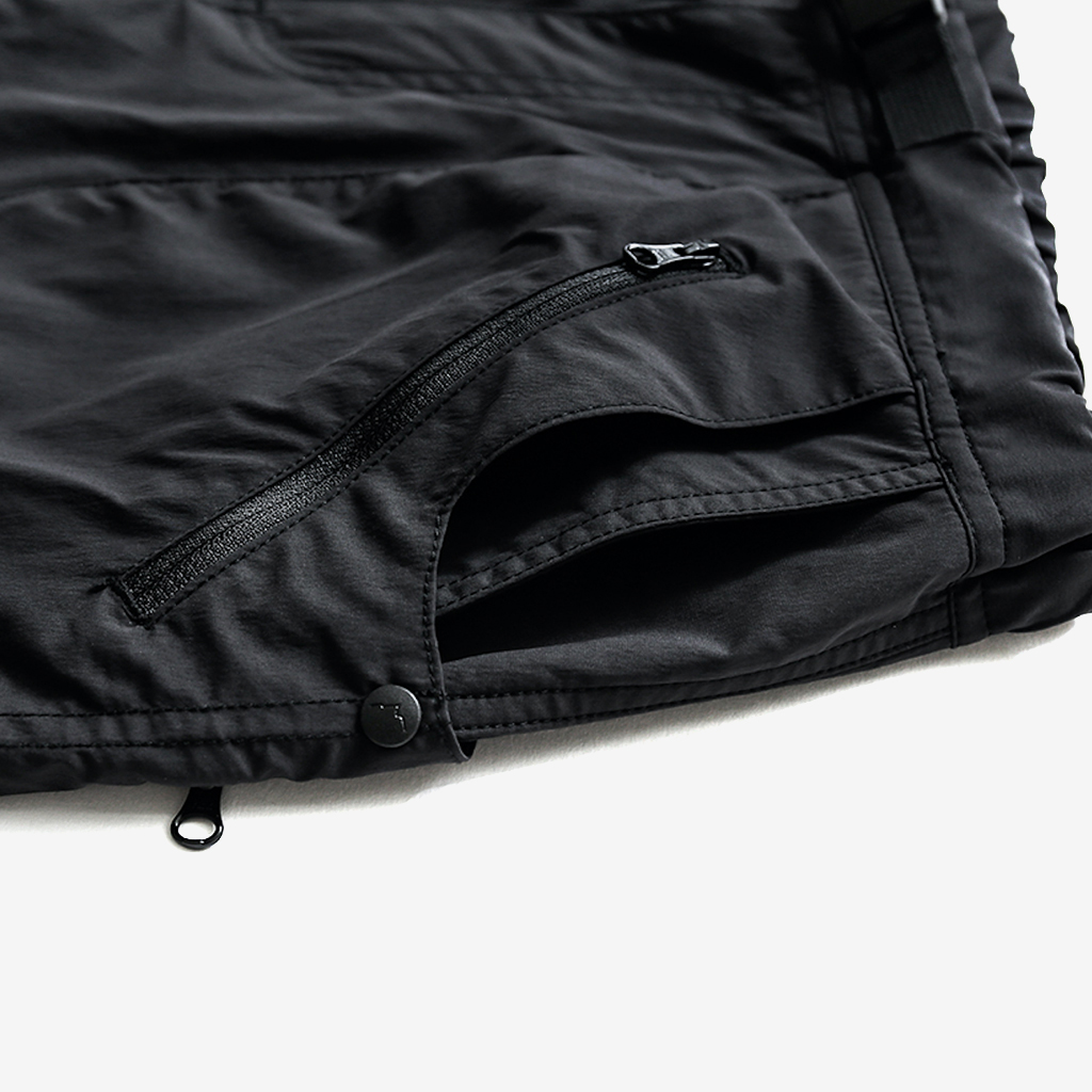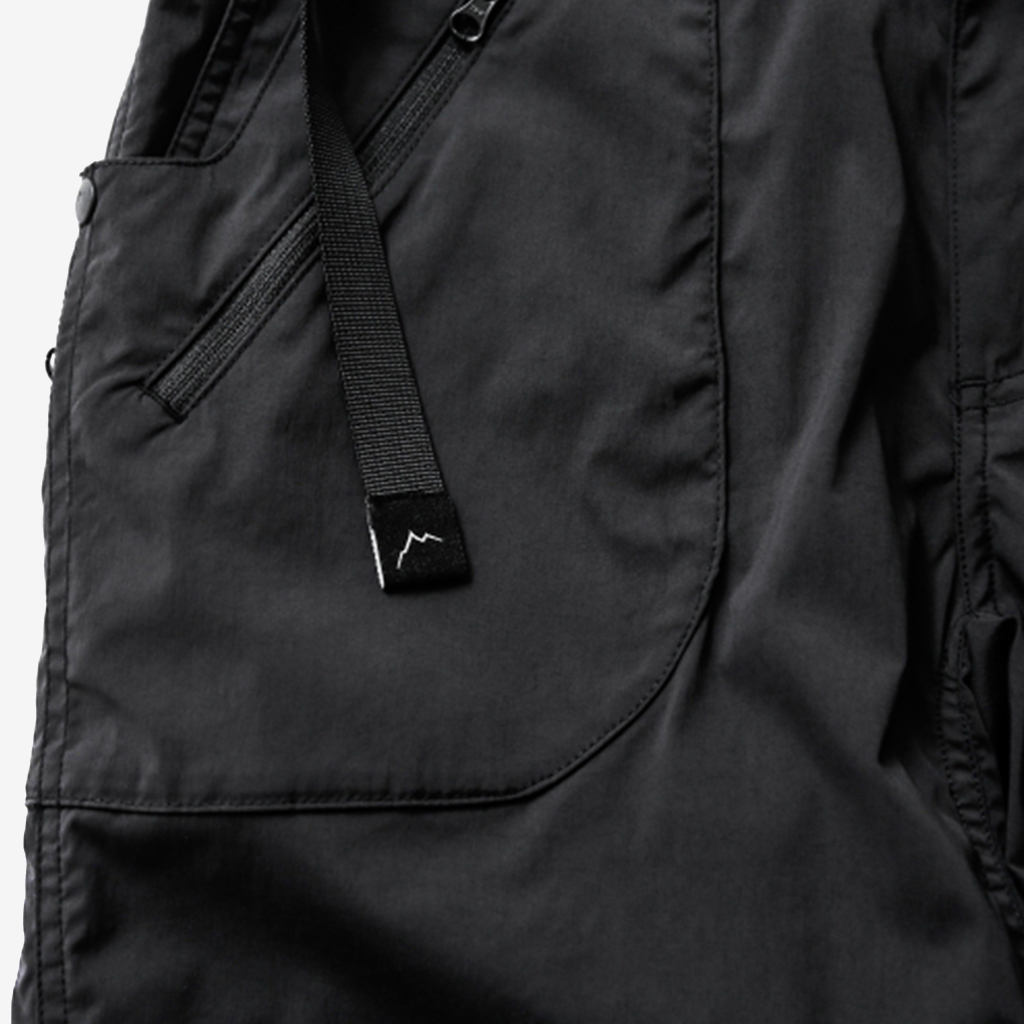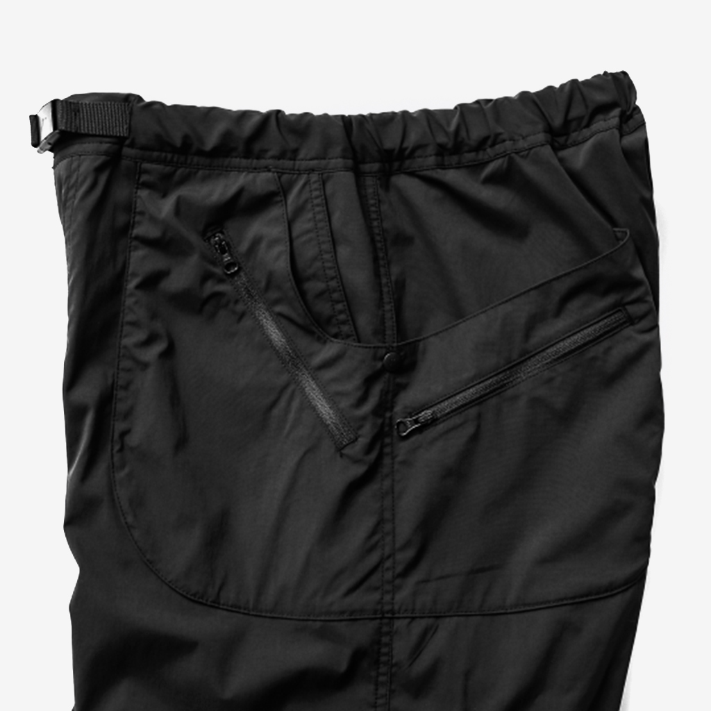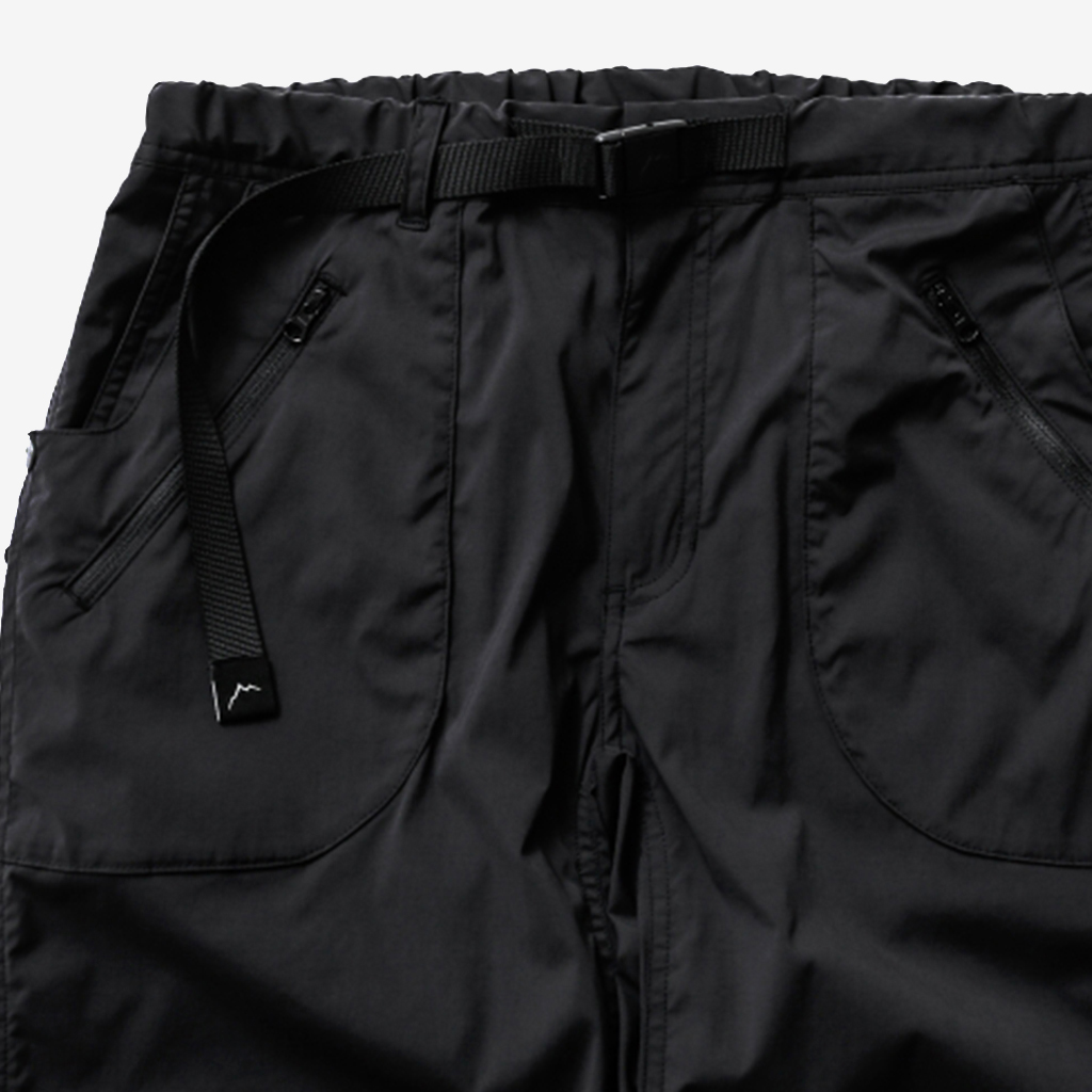 CAYL『8 Pocket Hiking Pants』は、春から秋まで幅広いシーンで快適なロングパンツ。 ストレッチ性に加え、太ももと膝部分は立体裁断になっていて動きに干渉しにくく、ほどよくリラックス感のある快適な履き心地。岩場など大きく足を動かシチュエーションでもストレスフリー。 絶妙な生地厚のナイロンは、汗をかいても足に張り付きにくいサラッとしたしなやかな肌触りで、速乾性にも優れています。撥水コーティングのおかげで軽い雨でも安心です。 CAYLの特徴でもあるポケットデザインは、計8か所の収納スペース。 オーソドックスなハンドポケットに加え、グローブや手ぬぐいなどちょっとかさばるものも入れられる大容量のカーゴポケット、さらにカーゴポケットの前後には貴重品も安心して入れられるジッパーポケットを配置し、多彩な収納ニーズに対応。 使い勝手だけでなく、デザインのアクセントにもなっています。 ウエストはゴムとウェビングベルトで直感的に絞り具合を調整可能。腰上で留めてアクティブに動いたり、食事などリラックスしたい時は緩めたり。 裾もストリングコードで絞れるので、ランや自転車、シューズやサンダルなどによって、丈感やシルエットも変えられます。 ハイク、クライミング、ラン、自転車、ファッションなど多彩に楽しむCAYLらしい、マルチなロングパンツです。 背面。 膝周りは立体裁断されていて快適な履き心地。 多彩な収納ニーズに対応する特徴的なポケットデザイン。 裾もストリングコードで絞れるので、丈感やシルエットも変えられます。 モデル:184cm Lサイズ着用 ほどよくリラックス感があり、デイリーユースでもスタイリングしやすいCAYLらしいロングパンツです。