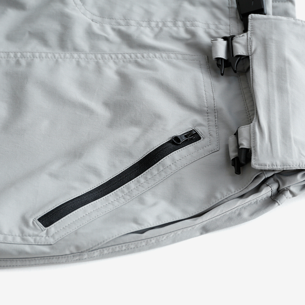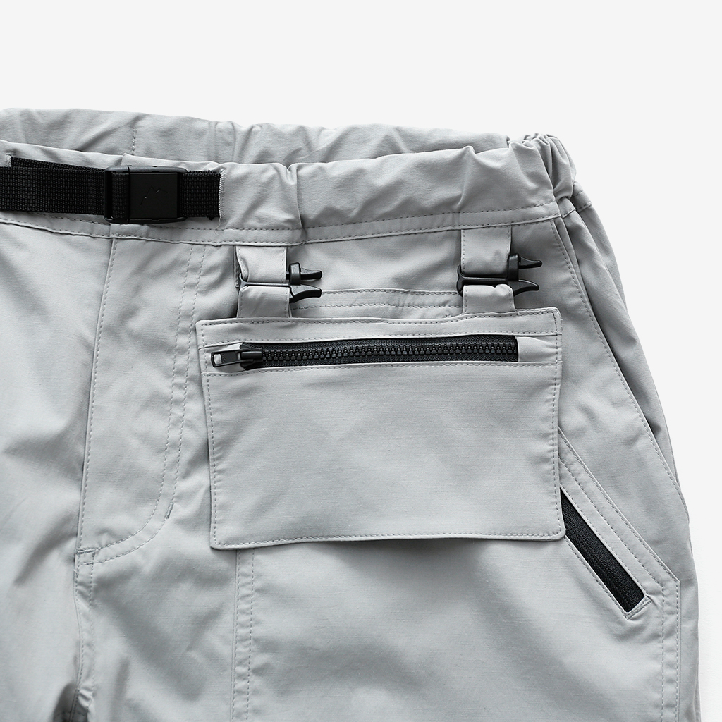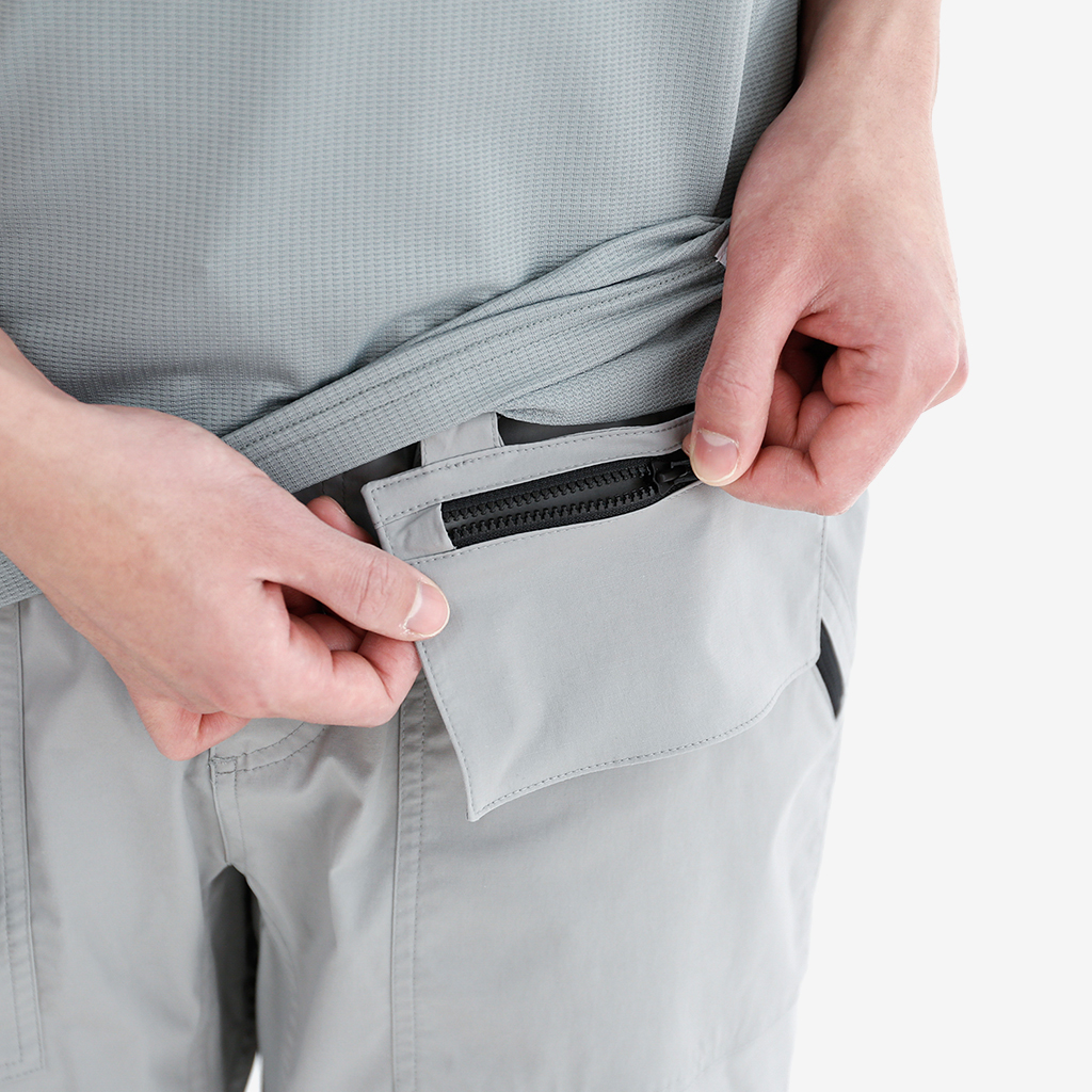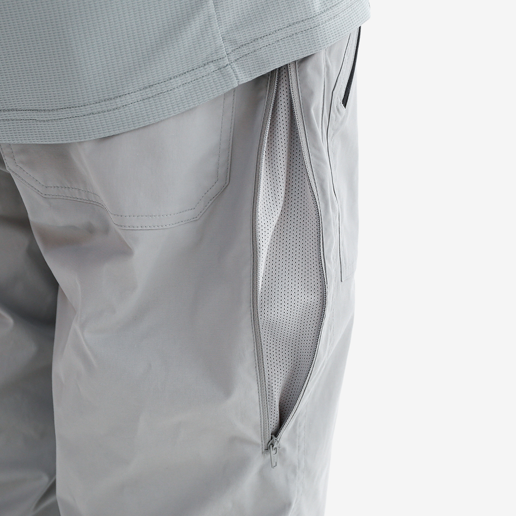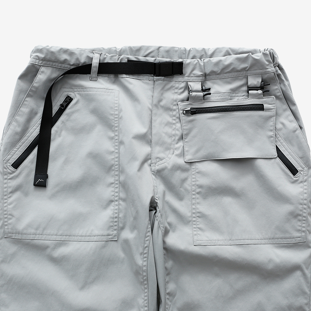 CAYL『Light Mountain Pants』は、ロングセラーモデルの『Mountain Pants』をより軽量にアップデートした新作パンツ。 CAYLのパンツシリーズの中では珍しく、少し細めのスッキリしたストレートシルエットで、年齢性別を問わず幅広いユーザーに支持されています。 ナイロン、コットン、ポリウレタンを組み合わせた生地は、タフで速乾性、ストレッチ性もあり、撥水加工も施されています。 合計7つのポケットを備え、1つはクリップパーツで取り外しもできます。フロントは二重ポケット構造で、鍵や財布などの貴重品を安心して収納できるジッパーポケットが付いています。 また、両脇にはベンチレーションジッパーがあり、細かな温度調整に対応します。 ウエストはゴムとウェビングベルトで直感的に絞り具合を調整可能。腰上で留めてアクティブに動いたり、食事などリラックスしたい時は緩めたり。 裾もストリングコードで絞れるので、シューズやサンダルなどによって、丈感やシルエットも変えられます。 街でも山でも、長いシーズンで使いやすい万能ロングパンツです。 背面。 両脇にはベンチレーションジッパーがあり、細かな温度調整に対応します。 裾はストリングコードで絞れるので、シューズやサンダルなどによって、丈感やシルエットも変えられます。 モデル:184cm/Lサイズ モデル:182cm / Lサイズ