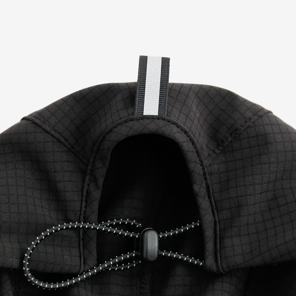 表面にはDWRコーティングが施され、フロントのロゴと、背面テープはリフレクター仕様。