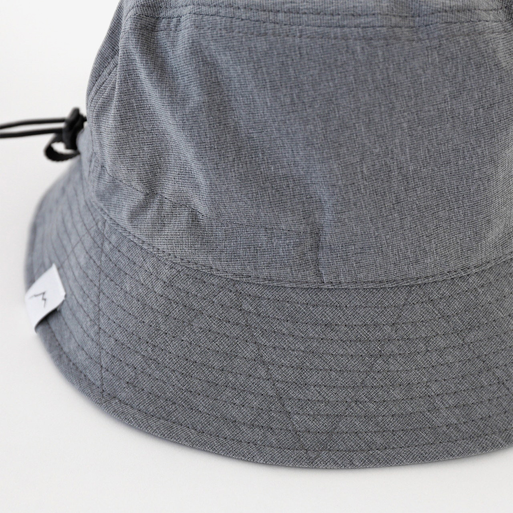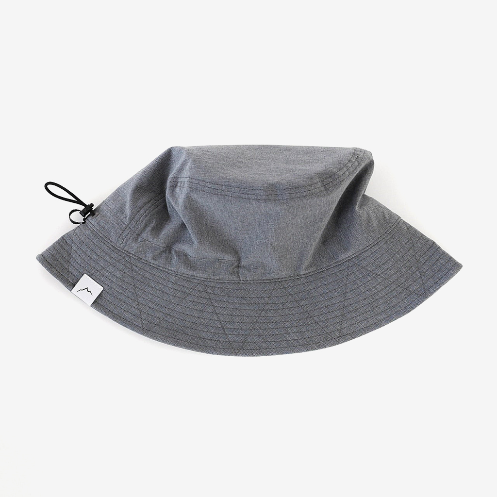 CAYL『Stretch Bucket Hat』は、ストレッチ性に富んだバケットハット。 表面には撥水コーティングが施され軽い雨でも安心です。汗止めバンドにはCOOLMAXを使用し、後ろのストリングコードにより手軽にサイズ調整できます。 ブリムの前、後ろそれぞれで長さを変えていて、ツバにはワイヤーが入っているので、シチュエーションや好みに応じて、形や被り方をアレンジできる、CAYLのラインナップの中でもとてもファンの多いバケットハットです。 機能的でありながら、品のある生地感とスタイリッシュなデザインはCAYLならでは。 同じ生地で作られた『Double Pocket Jacket』『Double Pocket Pants』と組み合わせたセットアップスタイルも。 カラー:Black カラー:Grey Melange ストリングコードにより手軽にサイズ調整できます。 同じ生地で作られた『Double Pocket Jacket』『Double Pocket Pants』と組み合わせたセットアップスタイルも。