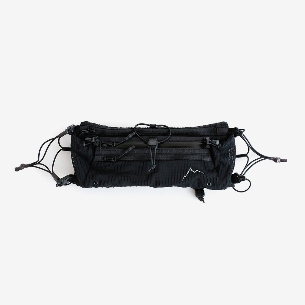 トレランを楽しむCAYLが提案する『GTD Belt』は、コンパクトながら多彩な収納スペースで、ユーザーの好みに合わせて使い分けることができるランニングベルト。 前後に収納スペースがあり、右側のバックルで簡単に着脱できます。 フロント側には4つの収納スペース(ジッパーポケット×3、オープンポケット×1)、バック側には2つの収納スペース(ジッパーポケット×1、オープンポケット×1)、さらにバック側にはウェアやポールを外付けできるストリングコードも備えます。 付属のストリングコードで、ゼッケンベルトとしても使えます。 単体での使用はもちろん、トレランパックと組み合わせての使用もオススメ。 GTDはGo The Distanceの略で、諦めず最後までやり遂げることを意味しています。 ※こちらの商品には、HydraPakにCAYLが別注した250mlのソフトフラスクがセットになっています。 ■フィッティング方法 1. 右側のバックルをはめる 2. 左右のストリングコードでサイズ調整する 3. フロントセンターにあるメインストリングを引っ張り、身体側に引き寄せる 4. フロントポケットの左右にある補助ストリングを外側に引っ張り、身体側に引き寄せる バック側。 ソフトフラスクの収納に適したフロント側のオープンポケット。 使用イメージ。 ゼッケン装着用ストリングコードが2本付属します。 ゼッケン装着イメージ。 ■フィッティング方法 1. 右側のバックルをはめる 2. 左右のストリングコードでサイズ調整する フロントセンターにあるメインストリングを引っ張り、身体側に引き寄せる トレランを楽しむCAYLが提案するコンパクトながら多彩な収納スペースで、ユーザーの好みに合わせて使い分けることができるランニングベルトです。