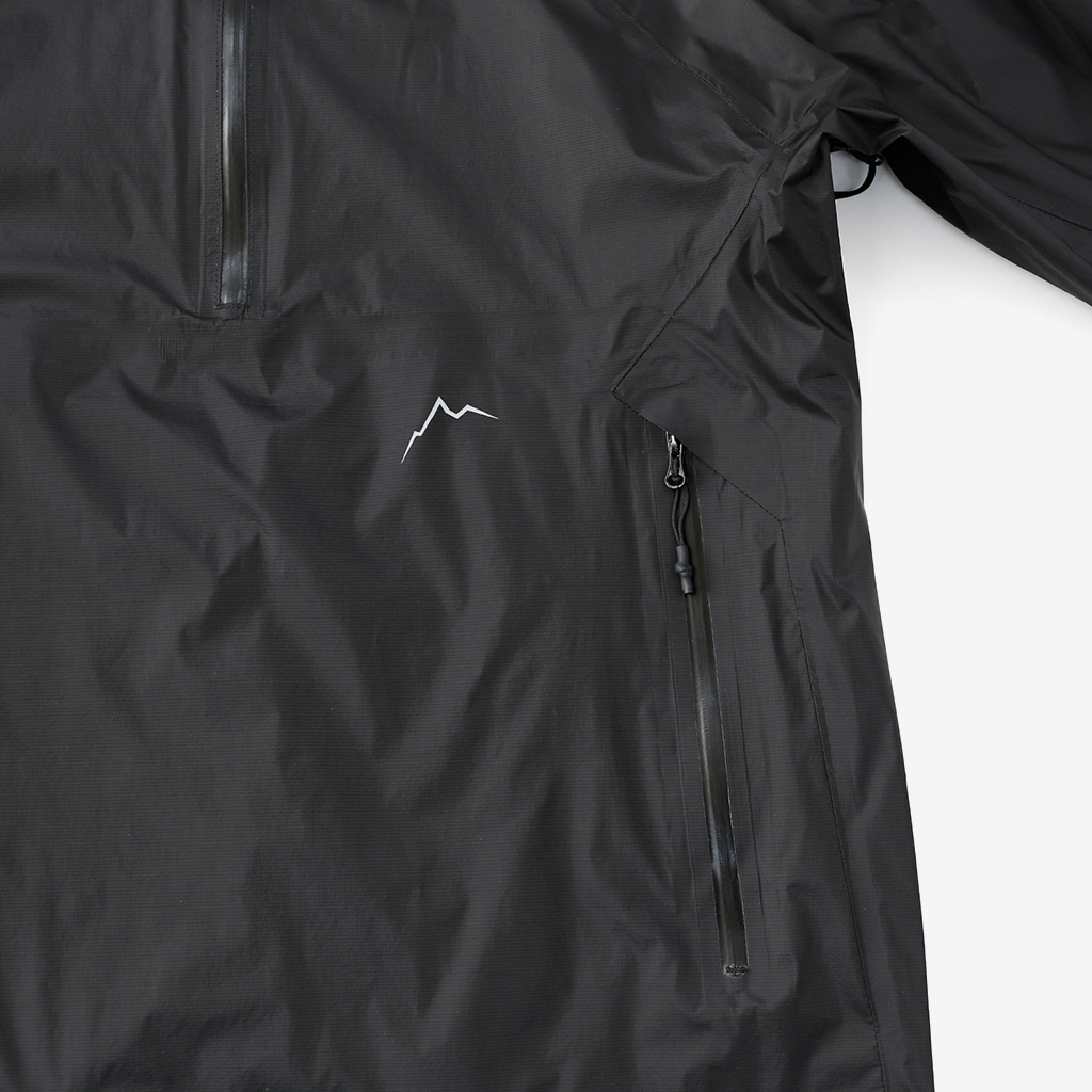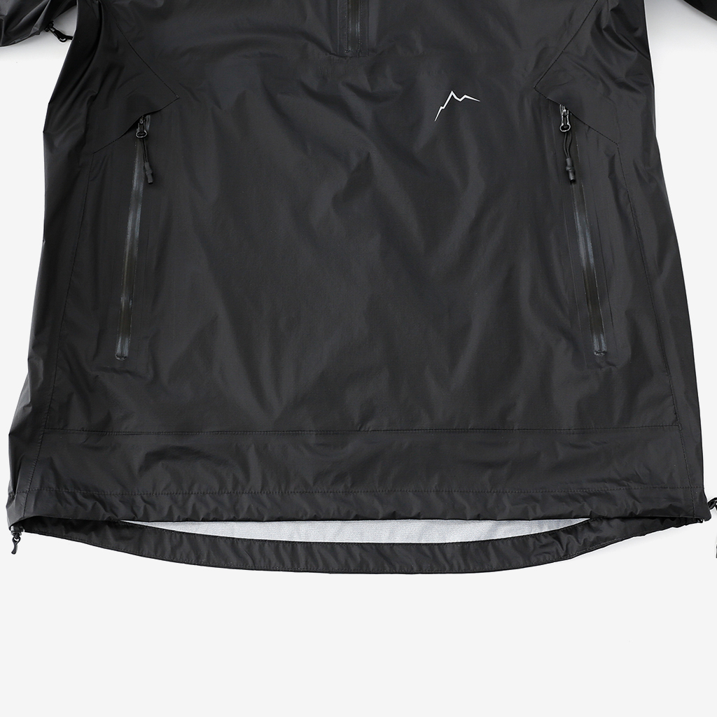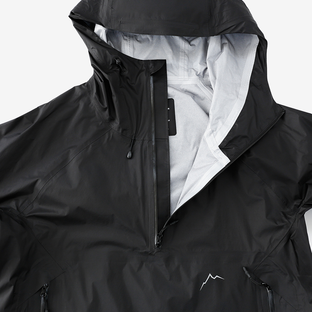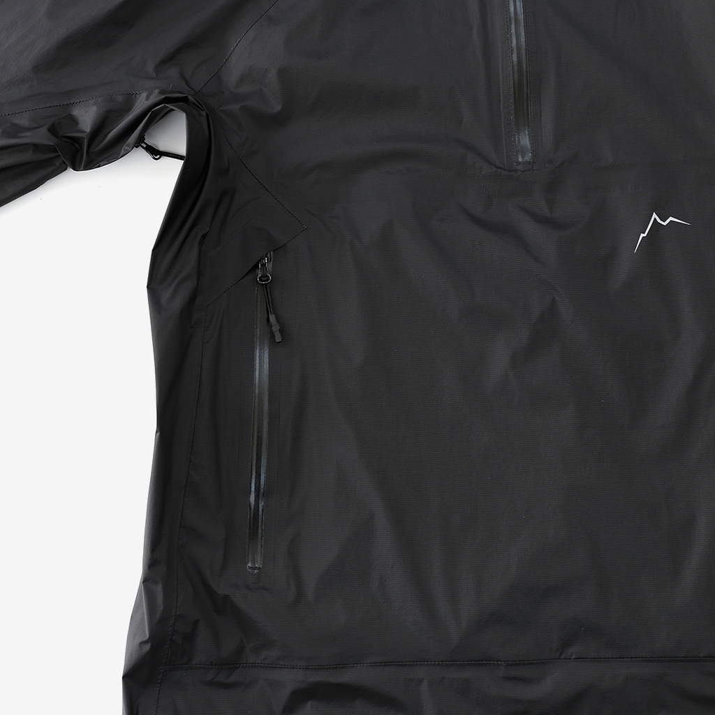 CAYL『Feather 3L Anorak』は、薄手の12Dナイロンと、高レベルの防水性、透湿性、低結露性を実現した防水透湿素材である東レ『Dermizax(ダーミザクス)』を使用して作られた3レイヤーの軽量レインジャケット。軽やかでウインドシェルのような着心地です。 両脇の下にはダブルジッパー式のベンチレーションがあり、行動中に素早く換気できます。また左脇側は下までオープンジッパーで大きく開けられるので、プルオーバーながら脱ぎ着はスムーズ。 フード部とウエスト部はストリングで絞れるようになっていて、手首はベルクロで調整できます。 フロントに配された大容量のカンガルーポケットがデザインのアクセントにもなっています。 収納時もコンパクトで、持ち運びも苦になりません。 NMGでは、Black、Khakiの2カラー展開。 フードはコードでしっかりフィッティング調整できます。 左脇側は下までオープンジッパーで大きく開けられるので、プルオーバーながら脱ぎ着は簡単。クイックに換気もできます。 右脇にもベンチレーション。 裾はコードで絞れ、シルエットや丈感も調整できます。 モデル:184cm/Lサイズ