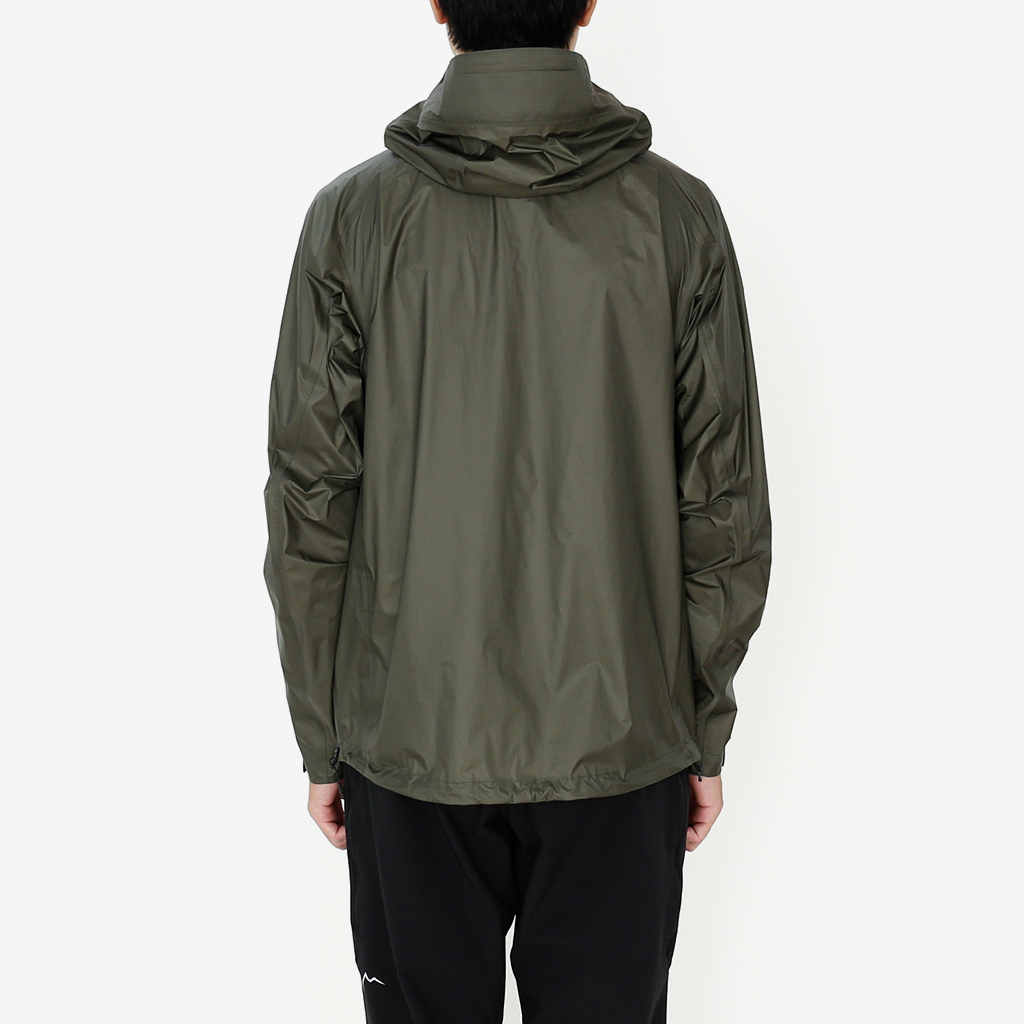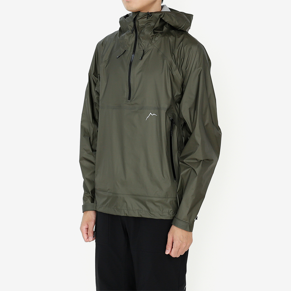 CAYL『Feather 3L Anorak』は、薄手の12Dナイロンと、高レベルの防水性、透湿性、低結露性を実現した防水透湿素材である東レ『Dermizax(ダーミザクス)』を使用して作られた3レイヤーの軽量レインジャケット。軽やかでウインドシェルのような着心地です。 両脇の下にはダブルジッパー式のベンチレーションがあり、行動中に素早く換気できます。また左脇側は下までオープンジッパーで大きく開けられるので、プルオーバーながら脱ぎ着はスムーズ。 フード部とウエスト部はストリングで絞れるようになっていて、手首はベルクロで調整できます。 フロントに配された大容量のカンガルーポケットがデザインのアクセントにもなっています。 収納時もコンパクトで、持ち運びも苦になりません。 NMGでは、Black、Khakiの2カラー展開。 フードはコードでしっかりフィッティング調整できます。 左脇側は下までオープンジッパーで大きく開けられるので、プルオーバーながら脱ぎ着は簡単。クイックに換気もできます。 右脇にもベンチレーション。 裾はコードで絞れ、シルエットや丈感も調整できます。 モデル:184cm/Lサイズ