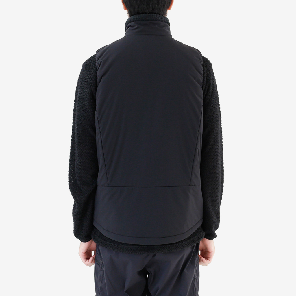 CAYL『Nylon Insulation Vest』は、インサレーションにPrimaloft Gold Activeを使った保温着としても、秋冬の行動着としても重宝するベスト。 Primaloft Gold Activeは、アクティブに動くシーンに適した素材で、蒸れを逃がして快適な状態を保ってくれます。 高い保温性を持ちながらも軽く、濡れても保温性が落ちにくいのも助かります。 洗濯も簡単なので、デイリーユースとしても気軽に扱えます。 シェルにはナイロンを用い、着心地のしなやかさと、ほど良い防風性、撥水性をプラス。 襟の内側のPolartec Alpha Direct 120をおかげで、着た瞬間から首元は温かく。 ウエスト部はドローコードで絞ればさらに保温力が上がり、フロントはダブルジッパーなので素早く換気もできます。 胸ポケット2か所、ハンドウォーマーポケット2か所と使い勝手も申し分なく、アウターでもインナーでも幅広いシーンで活躍します。 Black、Beigeの2カラー展開。 4か所のポケットはすべてジッパータイプ。 フロントはダブルジッパーで換気もスムーズ。 裾はコードで絞れ、シルエットや丈感も調整できます。 モデル:184cm/Lサイズ