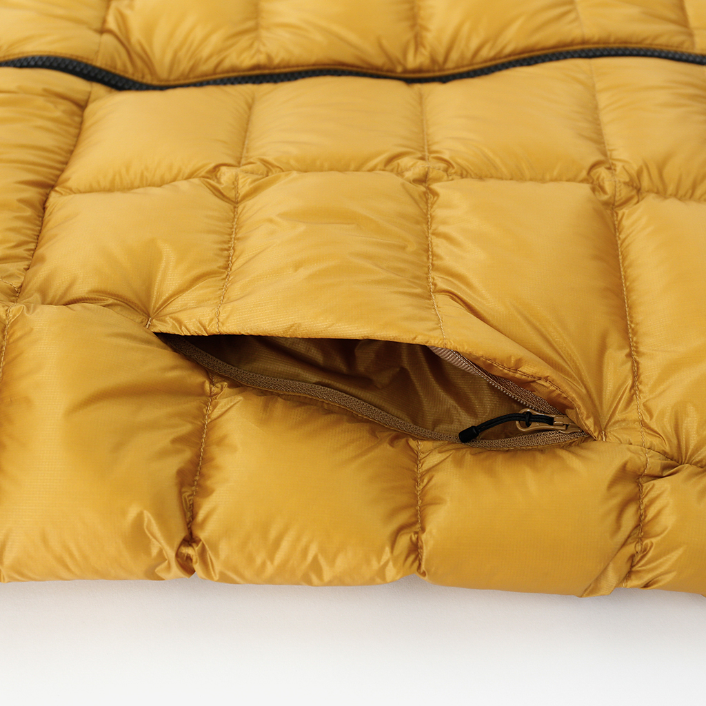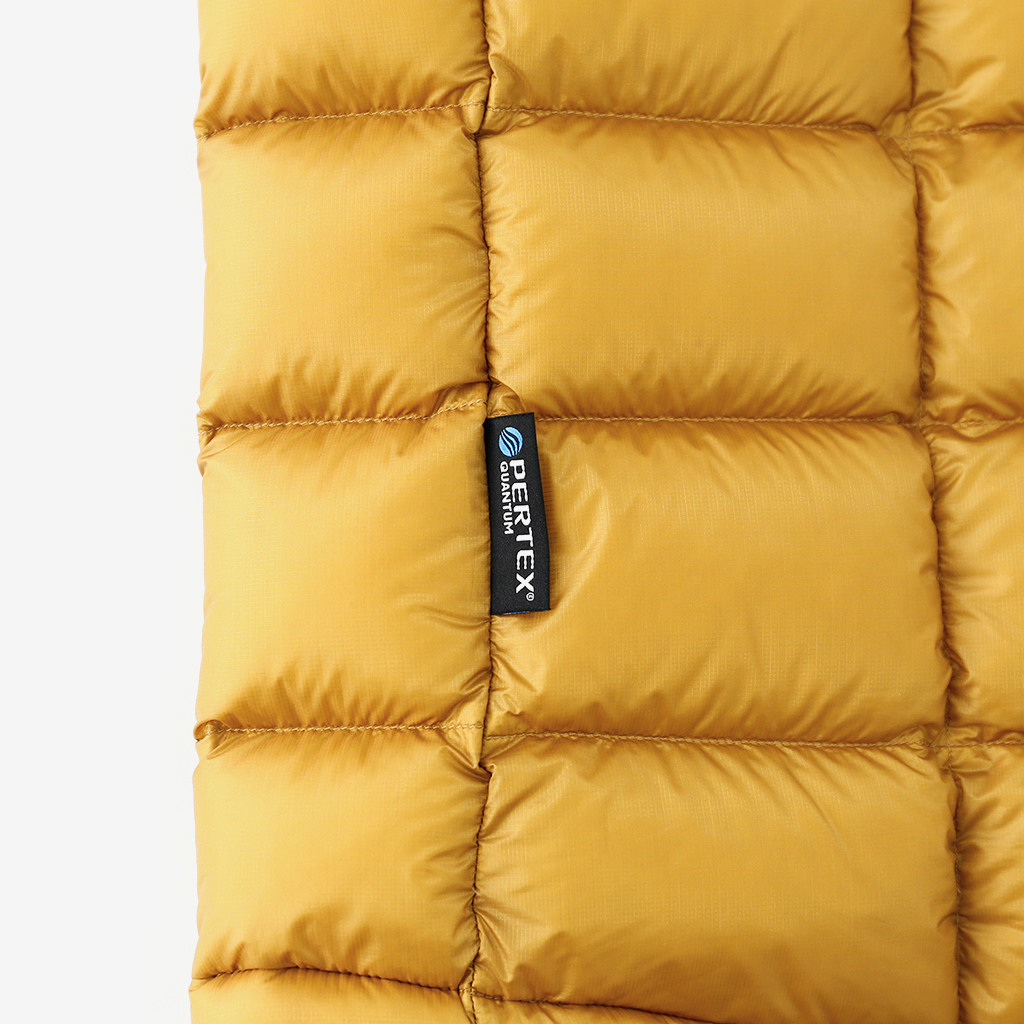 シェルにはダウンジャケットに適したPertex Quantumを採用。Pertex Quantumは、軽量ながら引裂強度、縫い目強度にとても優れ、極細糸を高密度に織り上げているので中のダウンが抜け出しにくくなっています。(Downproof)