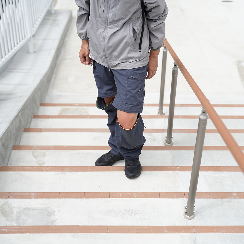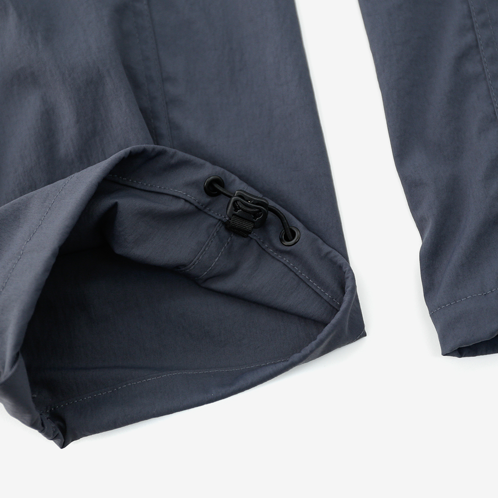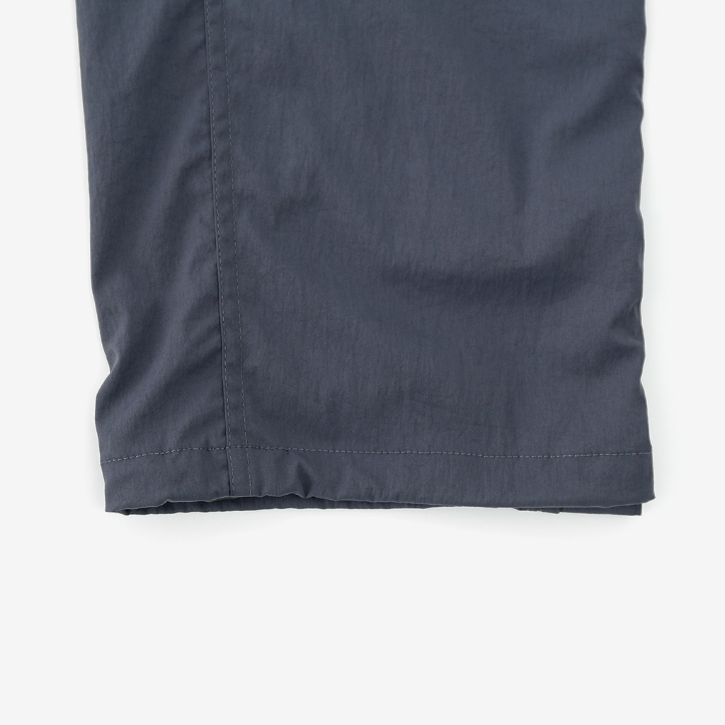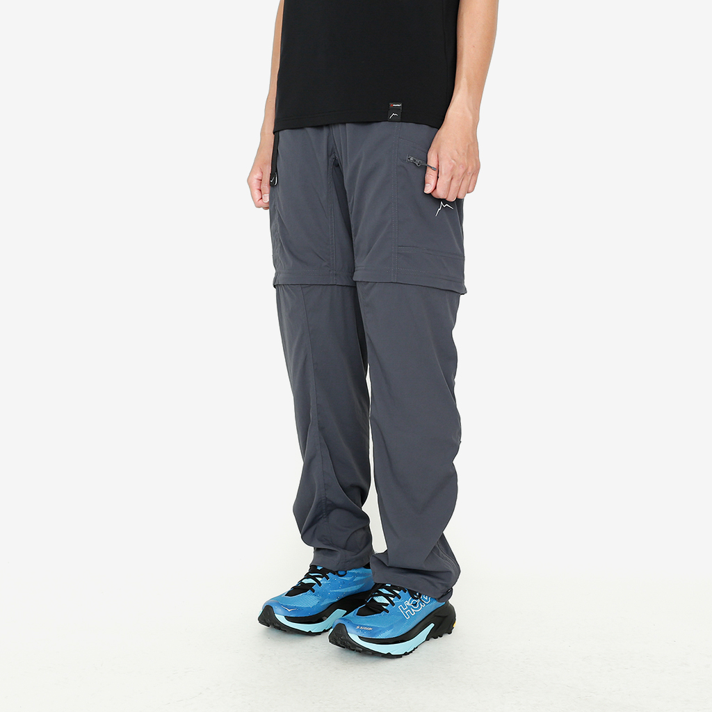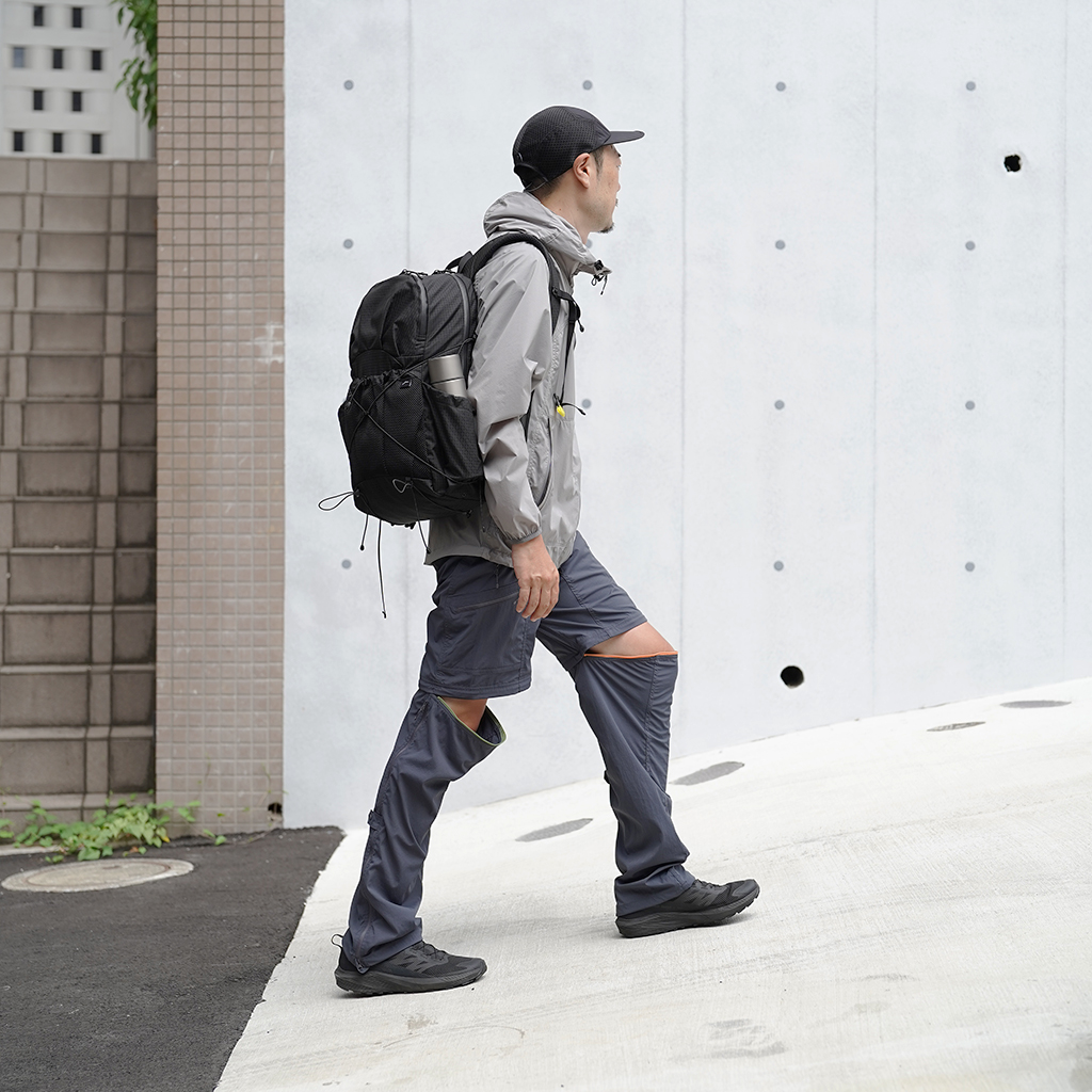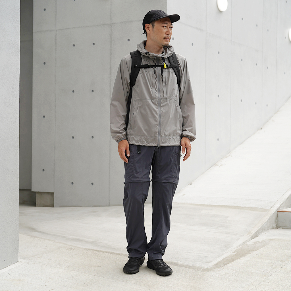 CAYL『Cargo 2way Pants 2』は、ストレッチ性、速乾性に優れるナイロンを採用した2wayで履けるハイキングパンツ。 コンバーチブルジッパーで切り離せば、ショートパンツとしても使えます。 また、サイドジッパーと組み合わせて、多彩なベンチレーションが可能で、ロングパンツのまま換気をしてオーバーヒートを防いだり、さまざまなシルエット、スタイリングも楽しめます。 サイドジッパーを開放してもはだけないよう、膝の外側付近にスナップボタンも備えています。 絶妙な生地厚のナイロンは、汗をかいても足に張り付きにくいサラッとしたしなやかな肌触りで、速乾性にも優れています。撥水コーティングのおかげで軽い雨でも安心です。 ウエストはゴムとウェビングベルトで直感的に絞り具合を調整可能。腰上で留めてアクティブに動いたり、食事などリラックスしたい時は緩めたり。 裾もストリングコードで絞れるので、ランや自転車、シューズやサンダルなどによって、丈感やシルエットも変えられます。 コンバーチブルジッパーは左右でカラーが異なり、デザインのアクセントだけでなく、ショートパンツからロングパンツにする際に左右がわかるようになっているところも気が利いています。 ハイク、クライミング、ラン、自転車、ファッションなど多彩に楽しむCAYLらしい、マルチなロングパンツです。 ※生地を挟まないようジッパーはゆっくりと動かしてください。 背面。 切り離した時に左右を間違えないよう、異なるジッパーカラーを採用しています。 裾はストリングコードで絞れるので、シューズやサンダルなどによって、丈感やシルエットも変えられます。 モデル:184cm/Lサイズ ショートパンツとしてはもちろん、ロングパンツのままでも多彩なベンチレーションが可能で、換気をしてオーバーヒートを防いだり、さまざまなシルエット、スタイリングも楽しめます。 モデル:182cm / Lサイズ ジップを開ければすぐに涼しくなります。 日焼けや擦り傷から守りつつ、必要な時だけサッと換気できるロングパンツとしても。 自分なりに使いこなすのも楽しい多機能パンツ。